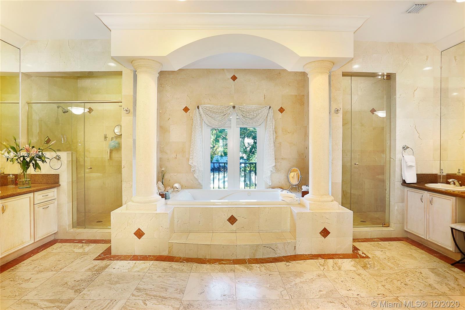 Mediterranean Elegance. build on an Oversized lot. Great curb appeal. Elevated residence. with the big plus of Two cars enclosed garage. located an a quiet street with fast access to the main road, Harbor drive. Foyer with Double height ceilings, Formal dining. adjacent to Kitchen with large Family room. Library. Formal reception area,French doors opening to Pool and pleasant courtyard area. Staff quarters. Grand stair takes you to Second floor were Master Bedroom and additional three bedrooms are located , all bedrooms are en suite. Large master suite with office library area, and two large wak in closets .Master bathroom offers down]ble sink, tub and shower. The house is very bright and cheerful . and looks very elegant. Built by same developers that built Grand Bay Estates