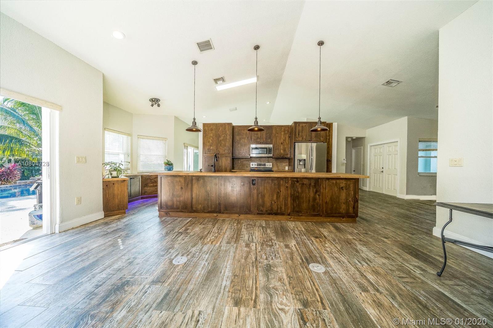 This open, spacious home is on an oversized corner lot, with 4 bedrooms and 2.5 bathrooms. It features a newly renovated spa-like master bathroom, custom open kitchen and refinished gorgeous pool. It’s the perfect home and backyard for hosting family and friends. Storm proof windows and doors were installed last year that are ensured to keep the home safe during a hurricane without the need to put up shutters.
