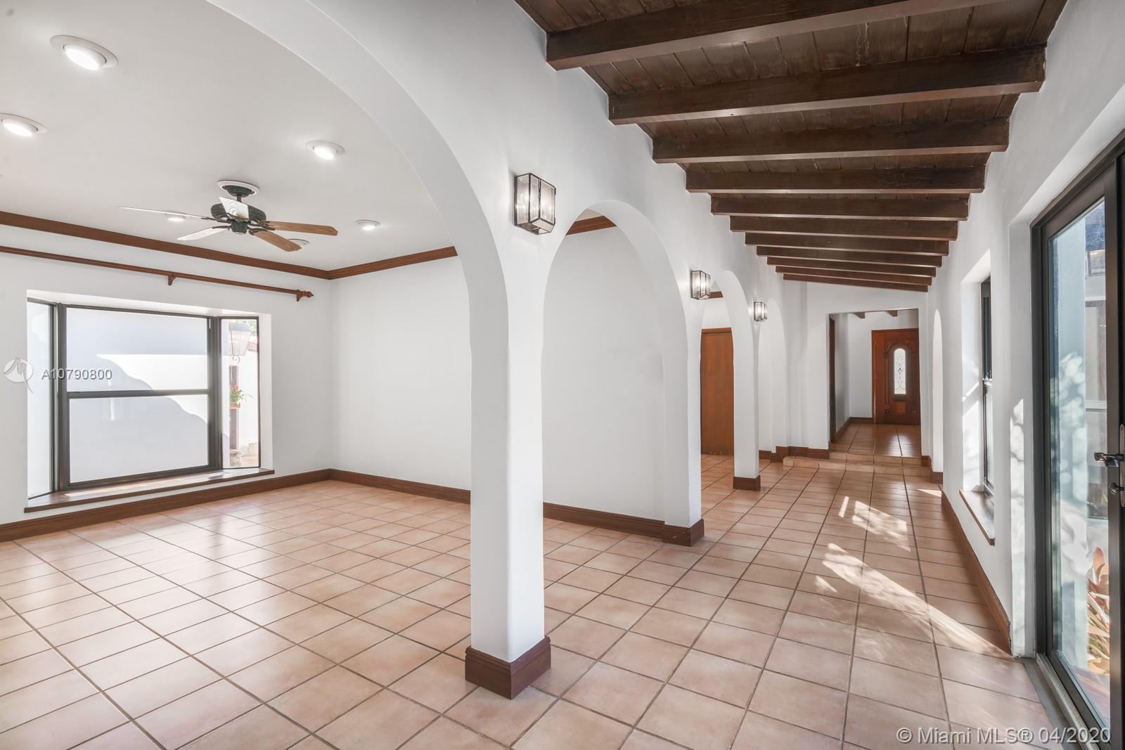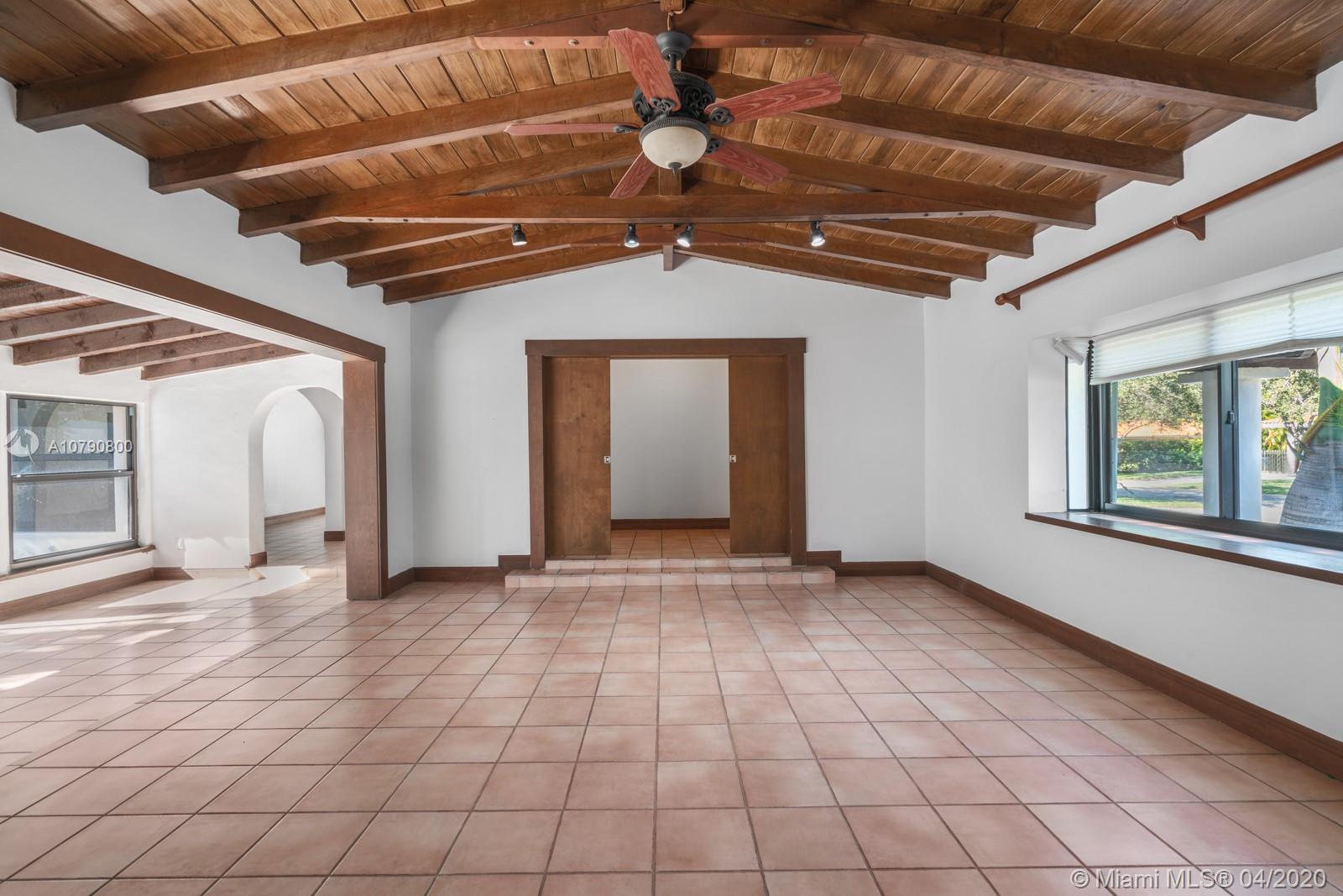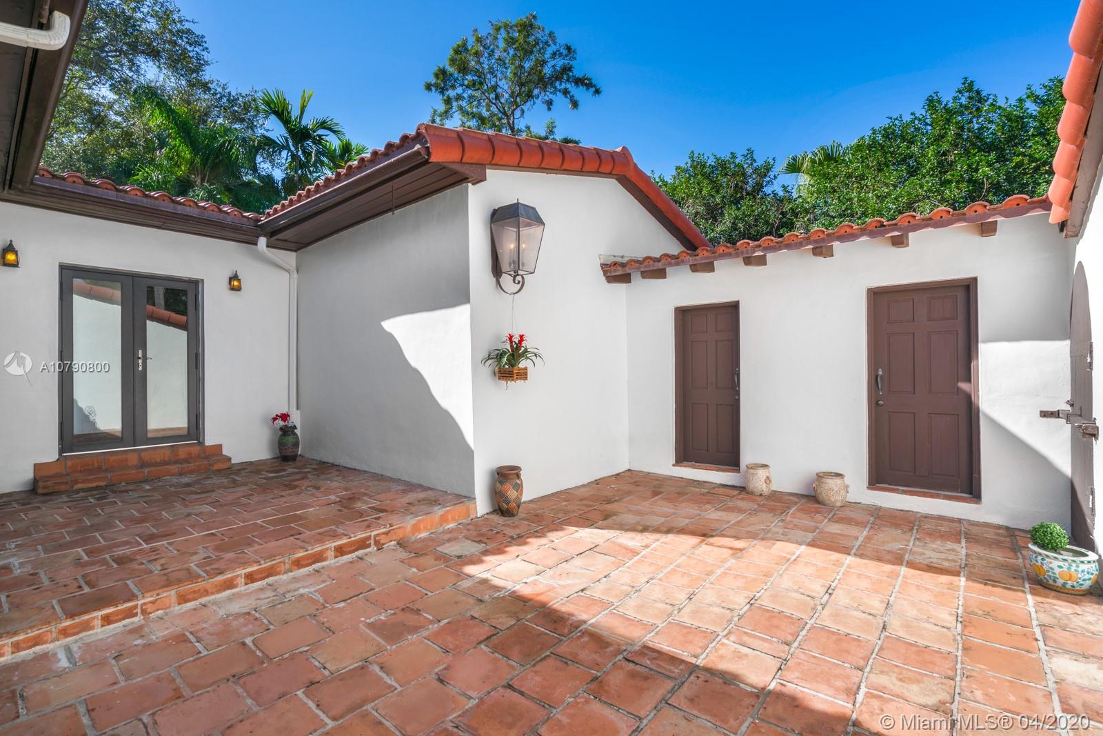 Embrace this wonderful opportunity to be in George Merrick's beautiful Riviera district of Coral Gables on a 15,000 SF lot. Charming bohemian villa with exposed beams and 2 car garage includes 4,419 total sf of open spaces with 4BR/4BA, and impact windows and doors throughout. Indoor hosting blends seamlessly into outdoor spaces with a Mexican clay-tiled central courtyard and backyard awning-covered patio with fans overlooking the lagoon-style pool surrounded by natural stones and tropical landscaping. Large kitchen with SubZero, Thermidor, and GE appliances leads into the formal dining room. Double pocket doors in foyer lead to the formal living room with wood-burning fireplace adjacent to a private guest room on a split-plan with independent access to the pool.