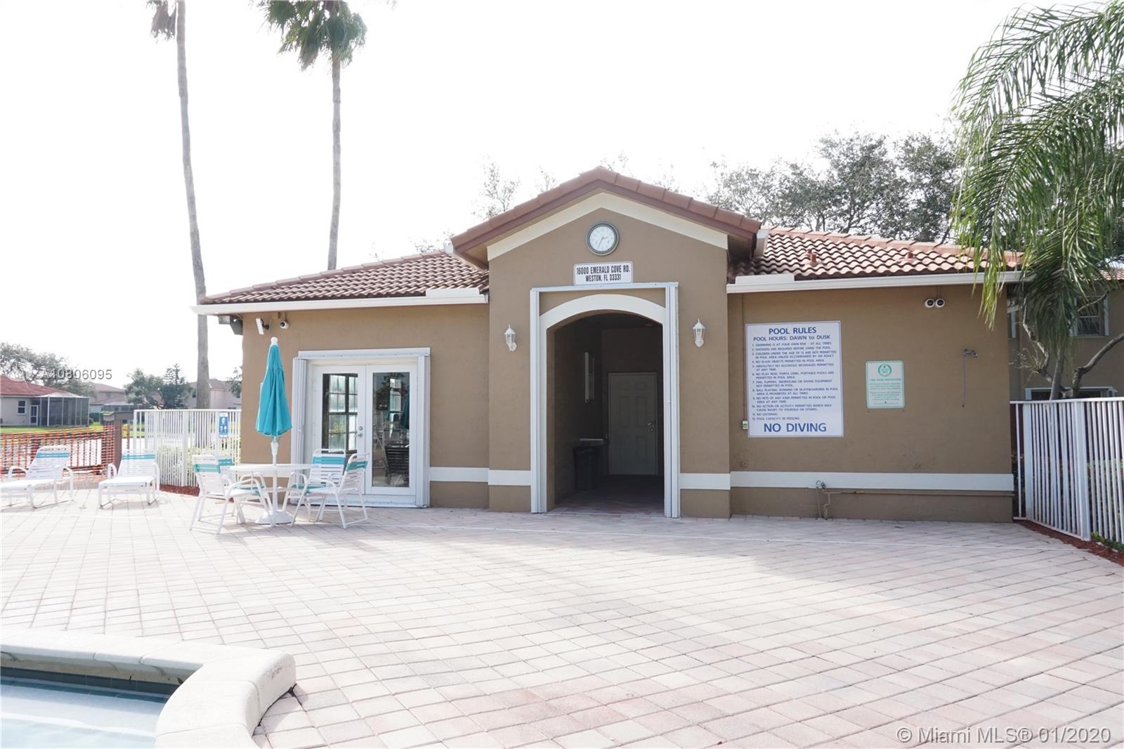 Location and Style at its best, 3 bedrooms, 2.5 bathrooms, located in the sought-after Emerald Courts in Weston, Florida. This property's extraordinary architectural design offers comfort and privacy throughout. The property boasts a spacious great room area, versatile bonus room, tiled first floor, and a half bathroom. Three bedrooms, two bathrooms, and laminated wood floors on the second floor. Aesthetic kitchen with wood cabinets granite countertops, and stainless steel appliances. Beautiful blinds, crown molding, recess lighting, Hurricane Impact Windows, Storage room. Emerald Courts is a gated community that includes a gym, pool, and kids' playground, Great Schools, Easy access to shopping centers, restaurants, and expressways.