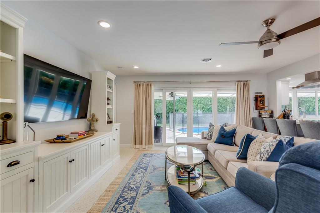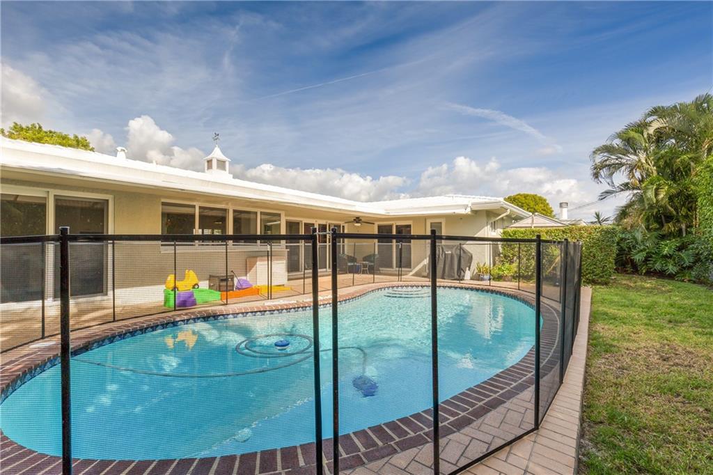 Modern, bright & stylish. Split bedroom pool home's interior renovated top to bottom. Impact windows & doors, smooth ceilings w/hi hat lighting, floor to ceiling plantation shutters on living area windows, restored terazzo floors in main living areas & master bedroom has roll down black out solar shades. Kitchen has Carerra style quartz counters incl. breakfast bar, stainless vent hood, cast iron farmhouse sink, all white cabinetry, top of the line appliances (incl microwave drawer), pop up outlets, wood like tile in kitchen, built in desk area. Nice laundry rm, shaker style interior doors, all Kohler plumbing fixtures, sinks. Exterior has new solid clay brick circular driveway, tankless H2O heater, fenced in yard, generator outlet. Great neighborhood, great location!