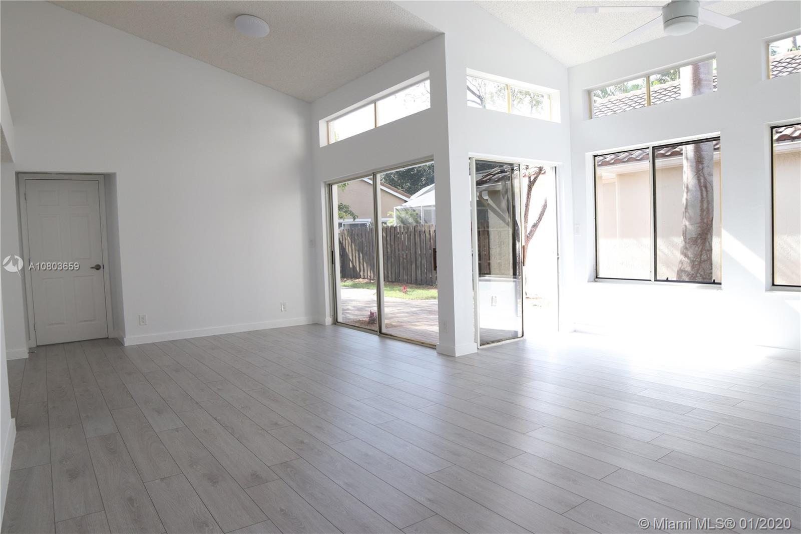 All you are looking for is in this house! BEAUTIFUL, FULL RENOVATED, COMFORTABLE, GOOD LOCATION! It is nestled in the heart of Plantation, recently renovated with WATERPROOF LUXURY VINYL FLOORS through all the property, UPDATED KITCHEN, 4 BRAND NEW STAINLESS STEEL APPLIANCES, NEW LIGHTENING FIXTURES, VAULTED ceilings, fans w/ REMOTE CONTROL system, WALKING CLOSET, UPDATED BATHROOMS, LAUNDRY ROOM w/ BRAND NEW FULL SIZE WASHER and DRYER, FRESHLY PAINTED, GARAGE SPACE FOR 2 CARS, NICE FENCED PATIO, QUIET GATED COMMUNITY AT SUNSET COVE w/ beautiful POOL and grounds. Close to major highways, shopping center, Sawgrass Mills Mall and schools.