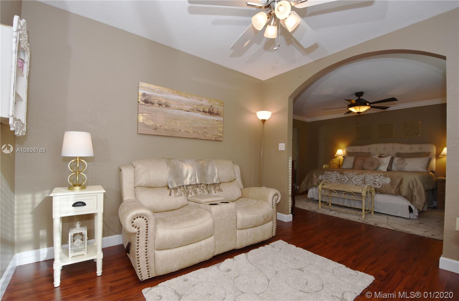 Beautiful Lakefront Pool Home in the Guard-Gated Community of Pembroke Isles features Crown Molding, Ceramic and Wood Floors, Granite Counters, Stainless Appliances, Nest Thermostat, Backup Generator Plug, Solar Heat Control Window Tints, Hot Water Heater replaced, AC System replaced to include UV Sanitizing Light, Ring Video Doorbell, resurfaced Diamond Brite Pool, Motion Sensing Backyard Lighting. Resort Style Neighborhood with Several Amenities. Master Bedroom features sitting room that can be converted back to 4th Bedroom. Gorgeous Serene Lake views, Large Backyard with Patio and Pool for Entertaining. Washer/Dryer and all Curtains do not convey.