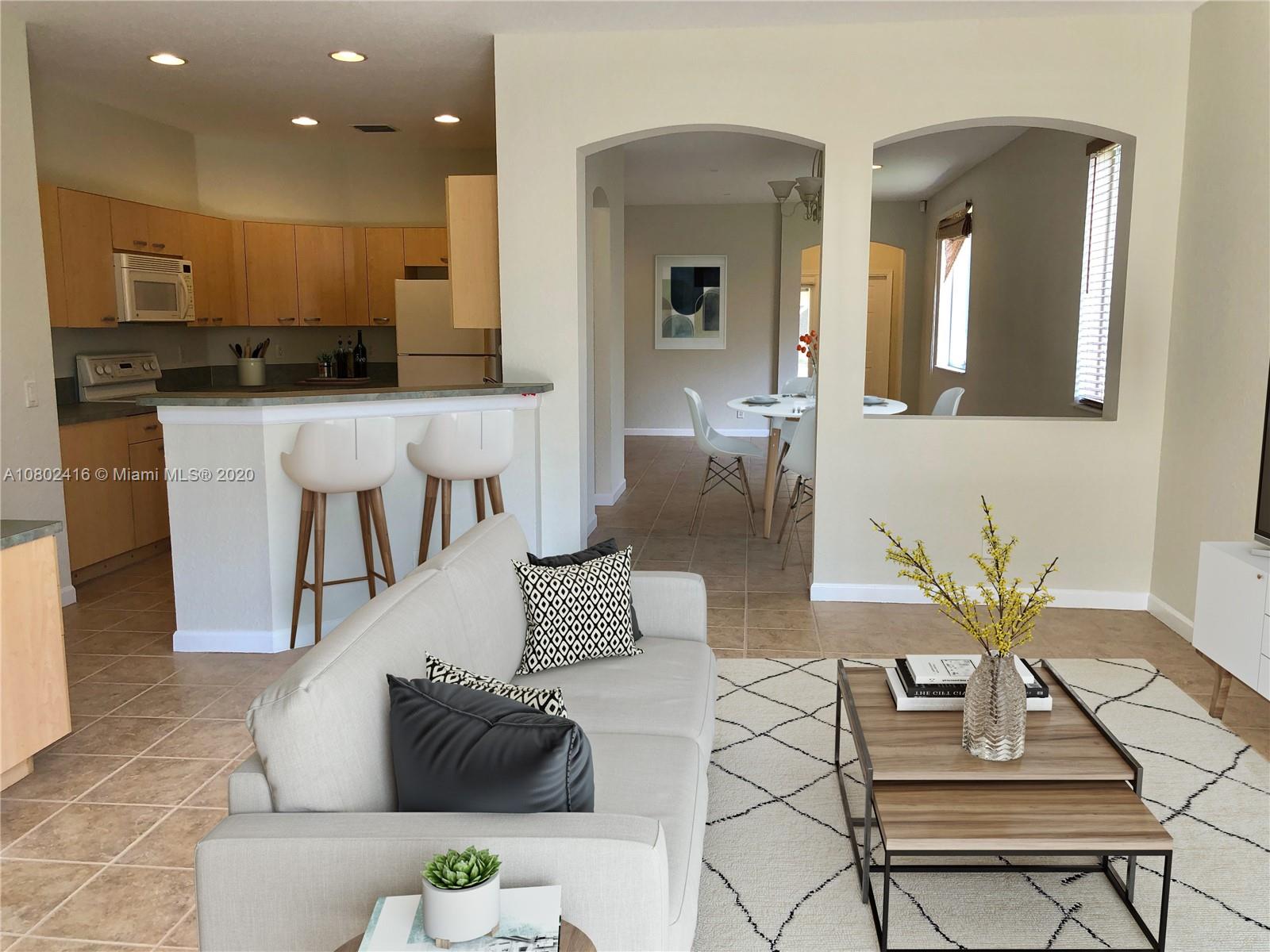 Versatile Foxtail Elite floor plan in the gated community of Savanna at Weston. Spacious master bedroom with slider to patio. Private master bath suite with roman tub, shower and dual sinks. This floorplan features a laundry room near the two secondary bedrooms. Enjoy a formal living and dining room plus a family room. Walking distance to the community pool, complete with heated lap pool, miniature golf, kid water park, playground and so much more. Spacious kitchen with plenty of cabinets. Neutral tile floors and wood like floors in all bedrooms.