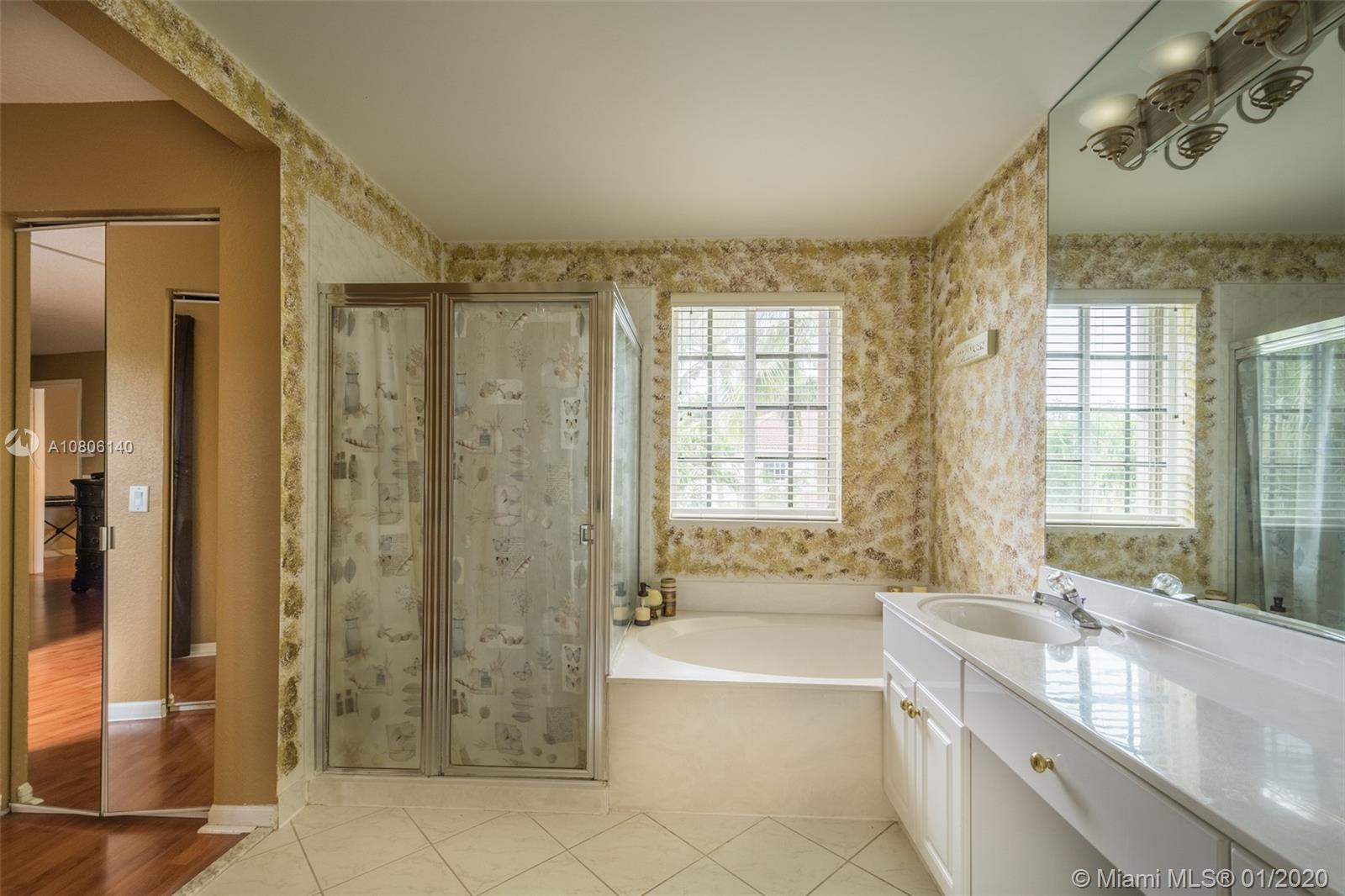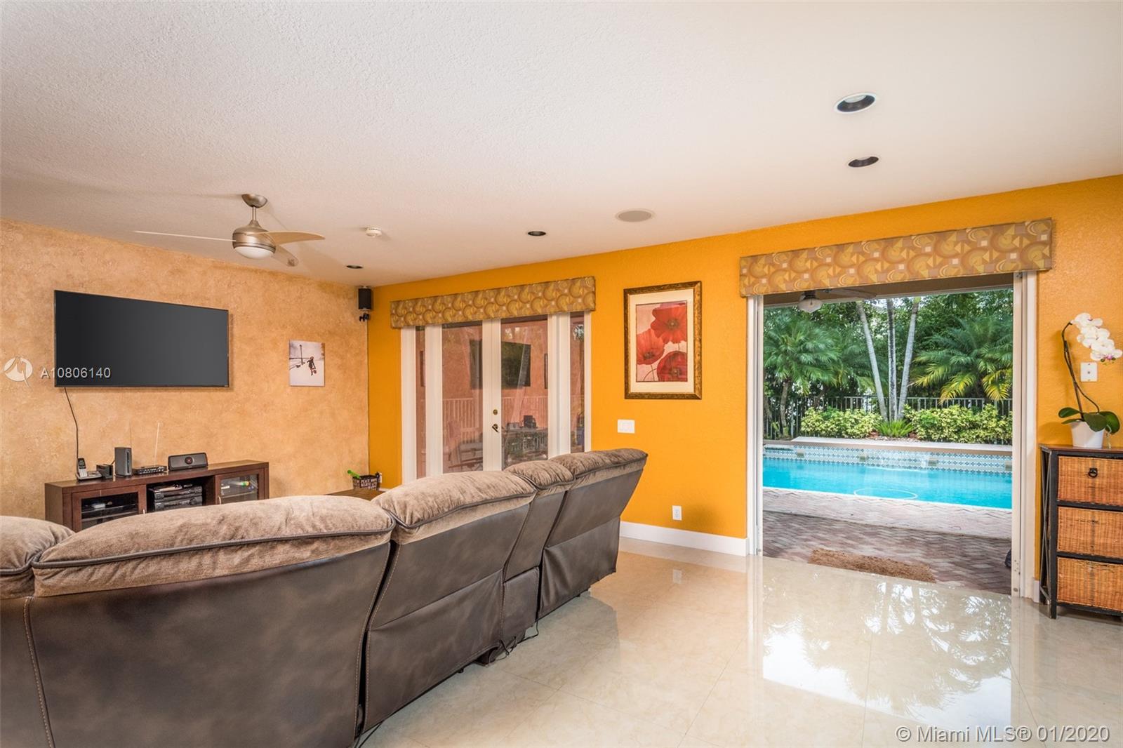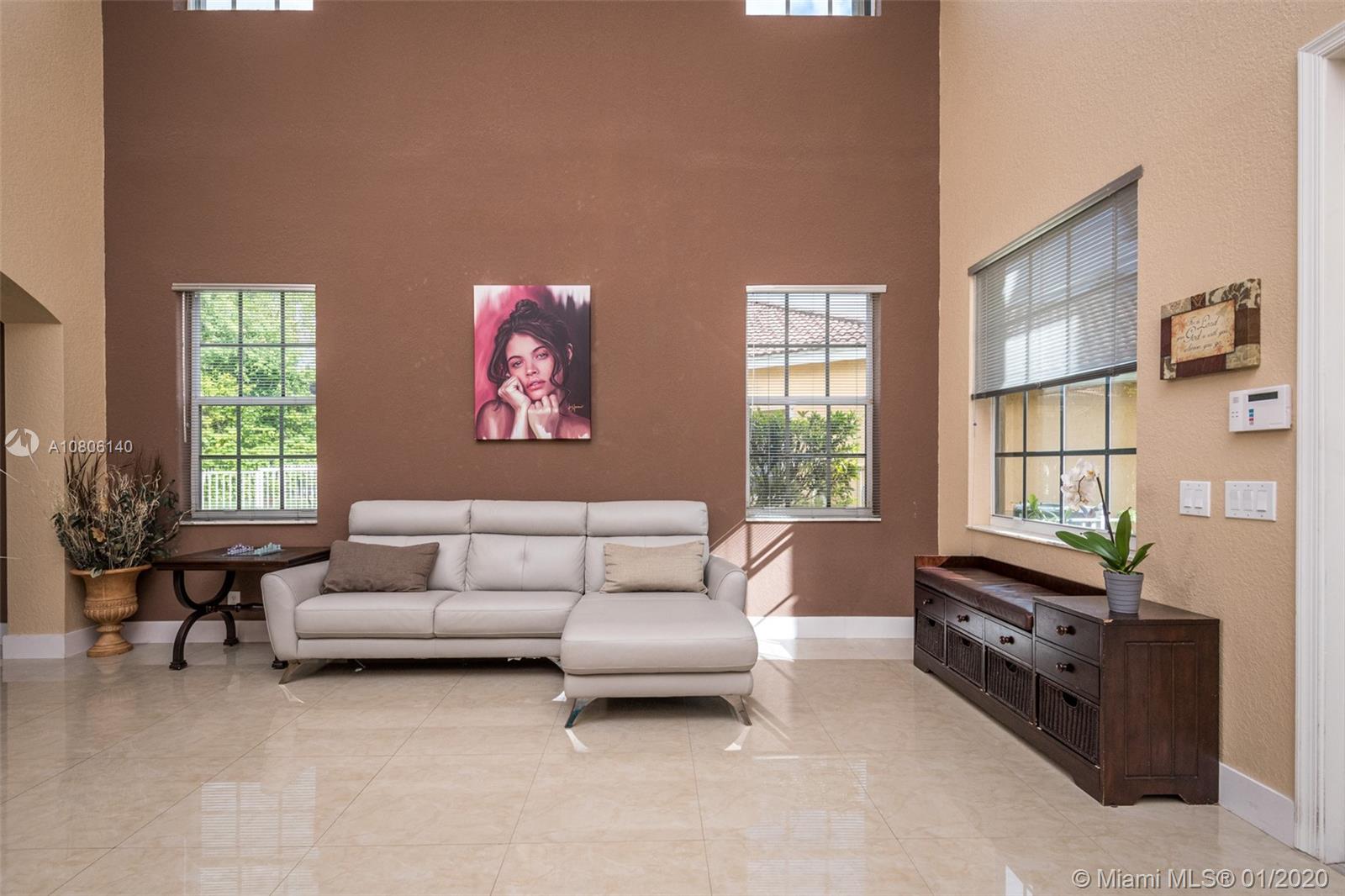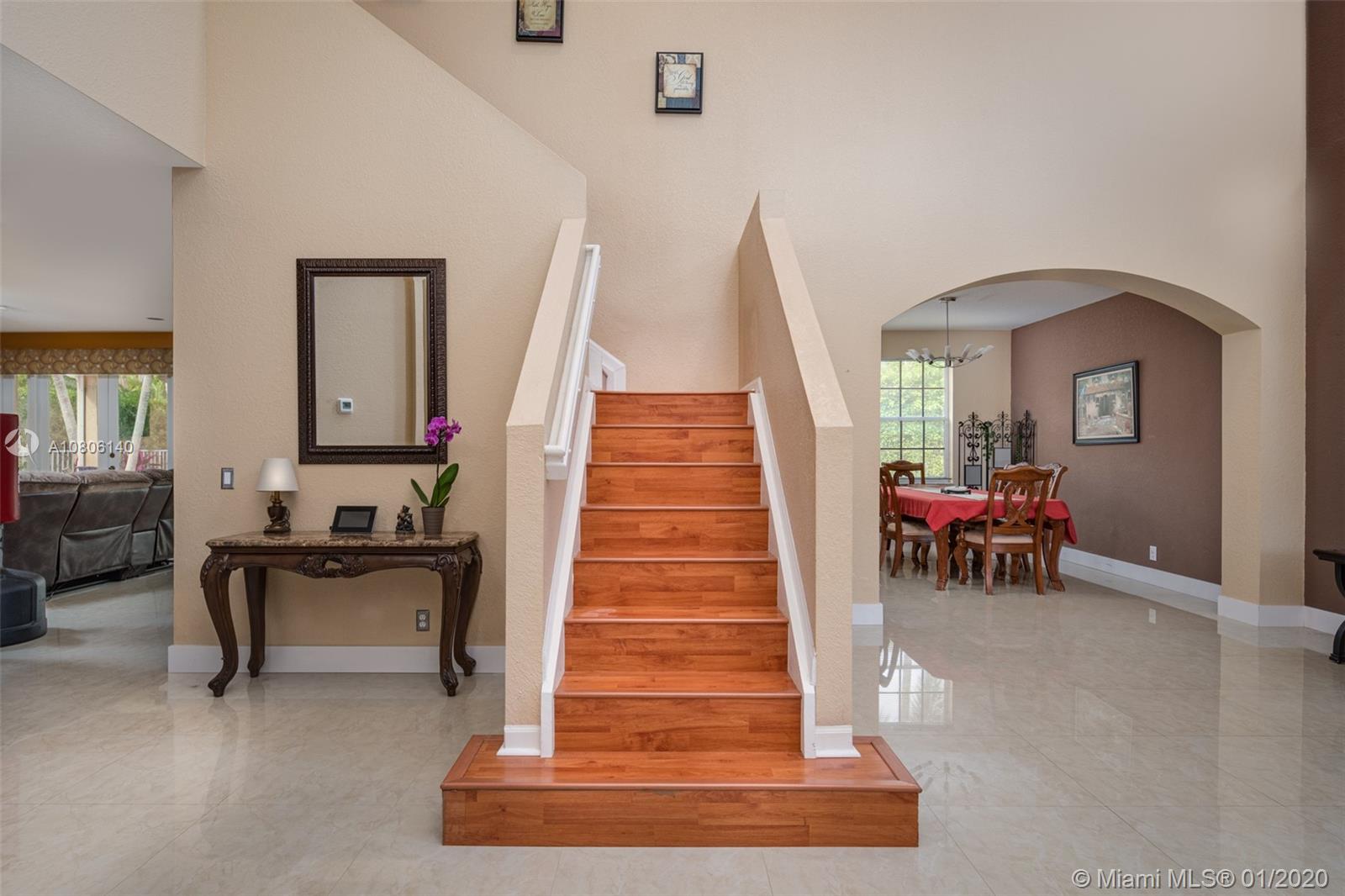 Tucked on a quiet cul de sac in The Ridges at Weston. Brand New Roof (plus gutters) 2019 * Brand New 24x24 white porcelain tile floors in living areas (2019) New White kitchen with stainless steel appliances center island and countertops. Spacious six bedrooms plus den and four full bath. Full bed and bath first level. French door to screened paver patio and pool with fully fenced yard with privacy landscaping. Paver driveway, accordion protection 2nd level. New Washer/Dryer. Newer A/C, hurricane proof garage door. Outdoor speakers. Ridges amenities include a Community Pool, clubhouse, basketball court, a soccer field, playground, 24 hour security and more.