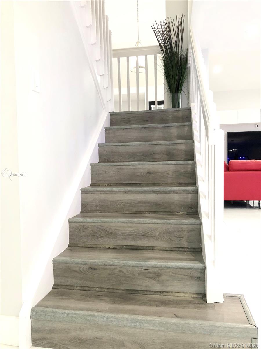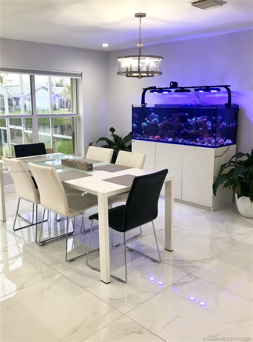 Beautiful 2 story in the heart of west Pembroke Pines. Originally a 4/2.5 with fourth bedroom being used as a loft or second family room upstairs, great for kids or an office. Elegant porcelain flooring on main floor and luxury wood vinyl on the second level. Granite countertops with white shaker cabinets and SS appliances. Large yard with screened in patio. Bbq area with bistro lighting and gorgeous lake views. Community association includes cable, internet, security, gate, front lawn and amenities.