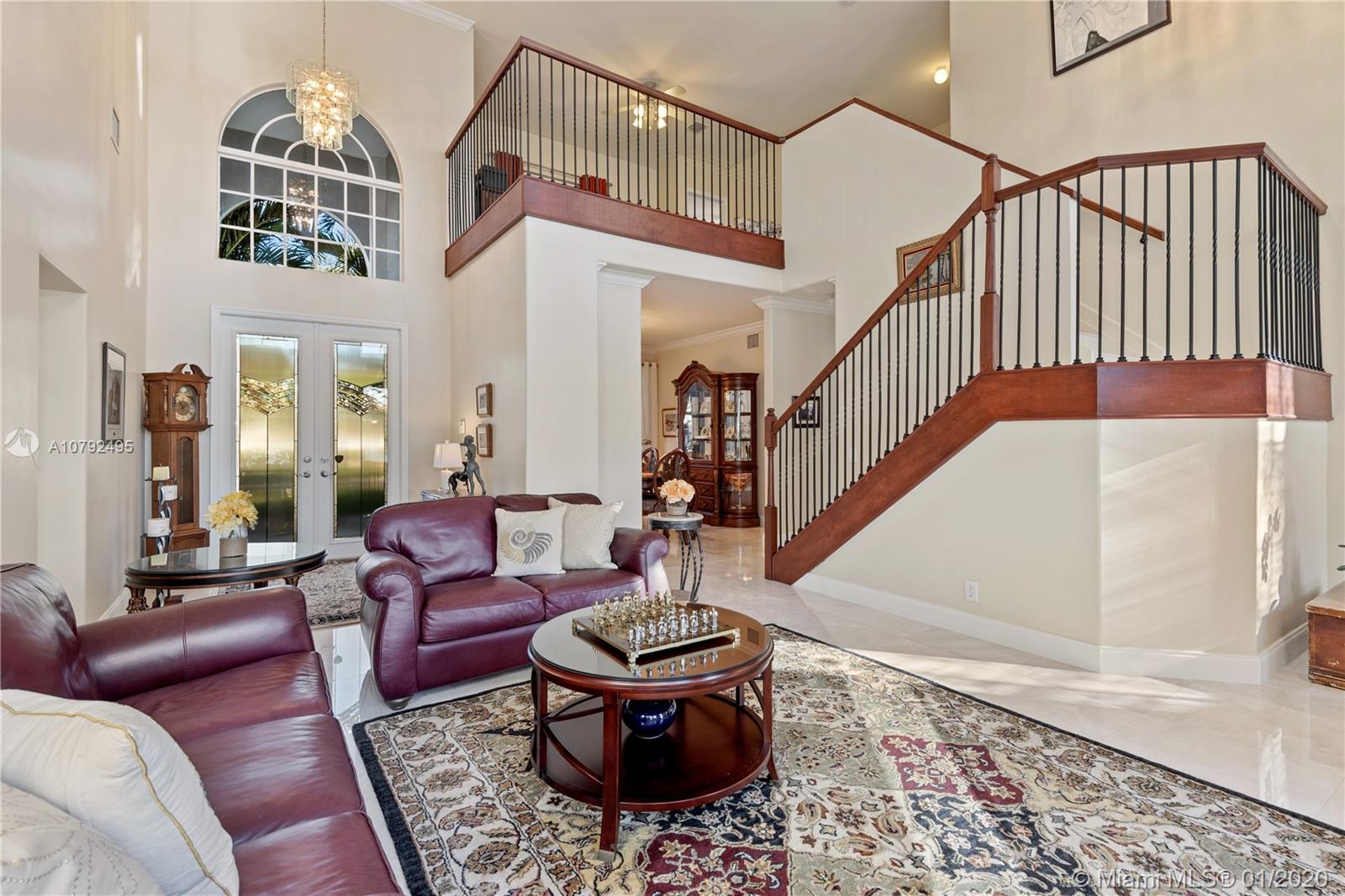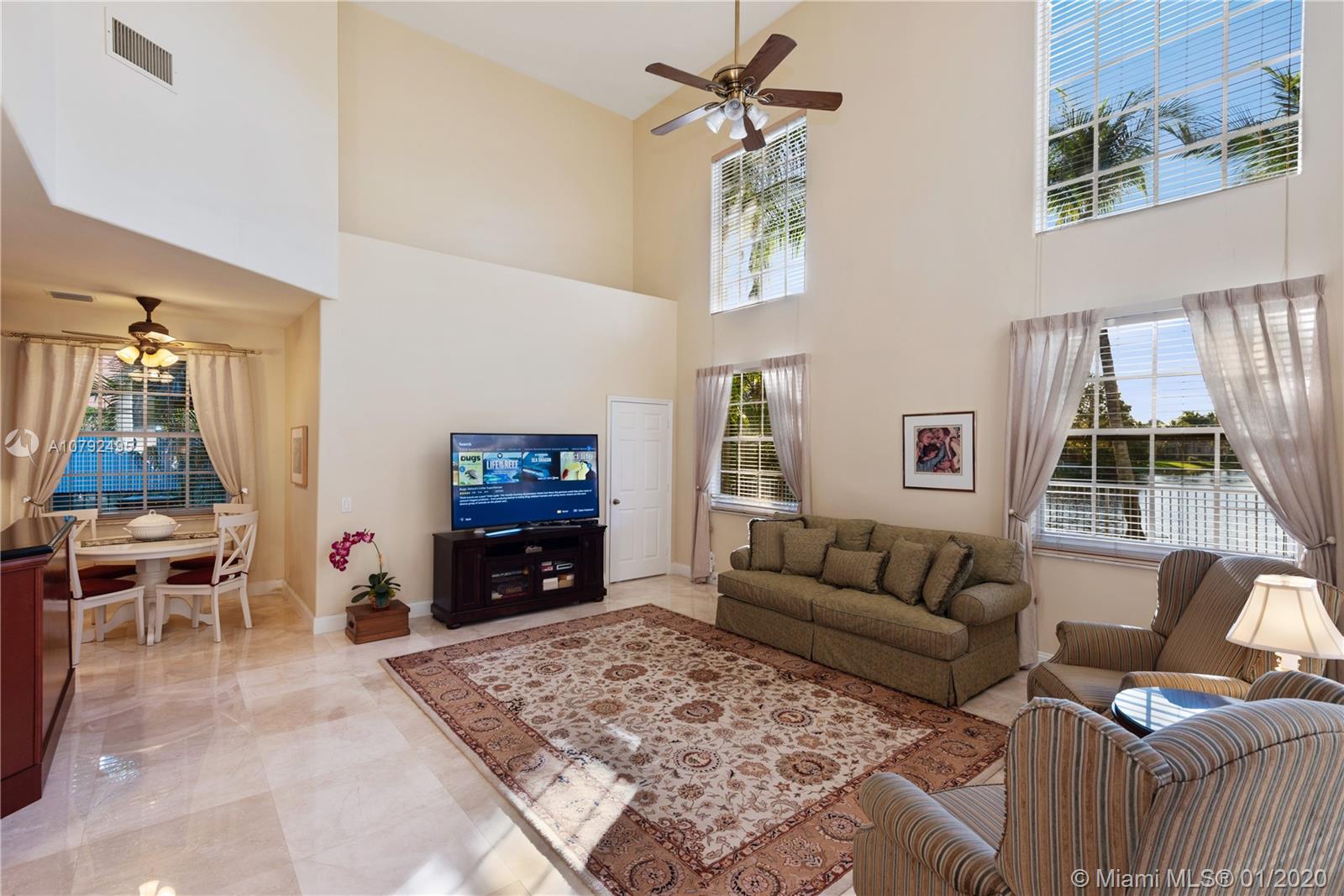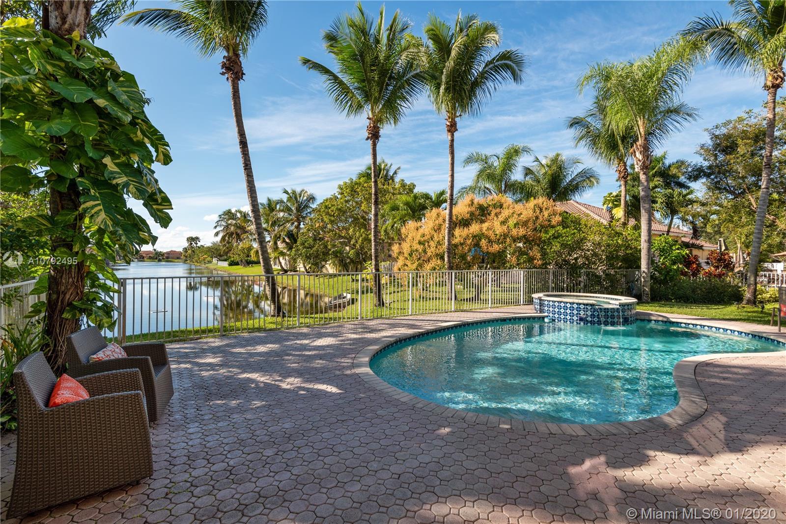 Pristine two story 4/4 pool+spa home, 2 car garage, welcomes you to a grand foyer & livingroom area with soaring ceilings. Adjacent is the formal dining and oversized master suite. Great natural light throughout includes a million $ endless sunset view. Recent make-over with upscale finishes. Elegant marble flooring gives an opulent touch. Opened gourmet kitchen offers an eating area and a family room overlooking the water view and pool area. Newer bathrooms as well. The 2nd floor is where you’ll find 3 bdrms and a mezzanine area large enough for a full livingroom, has been dressed with wood flooring. Private outdoor area is lushly landscaped. Sparkling pool has just been resurfaced. This home is 3,600 sq ft on a lot close to 11k sq ft. Furniture for sale. Excellent location close to I-75.