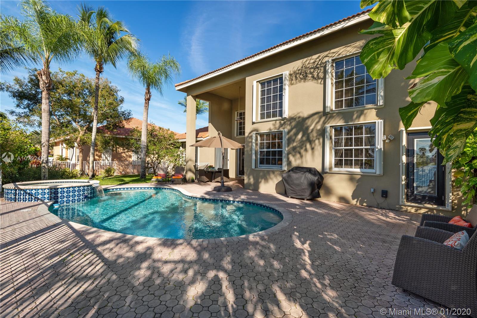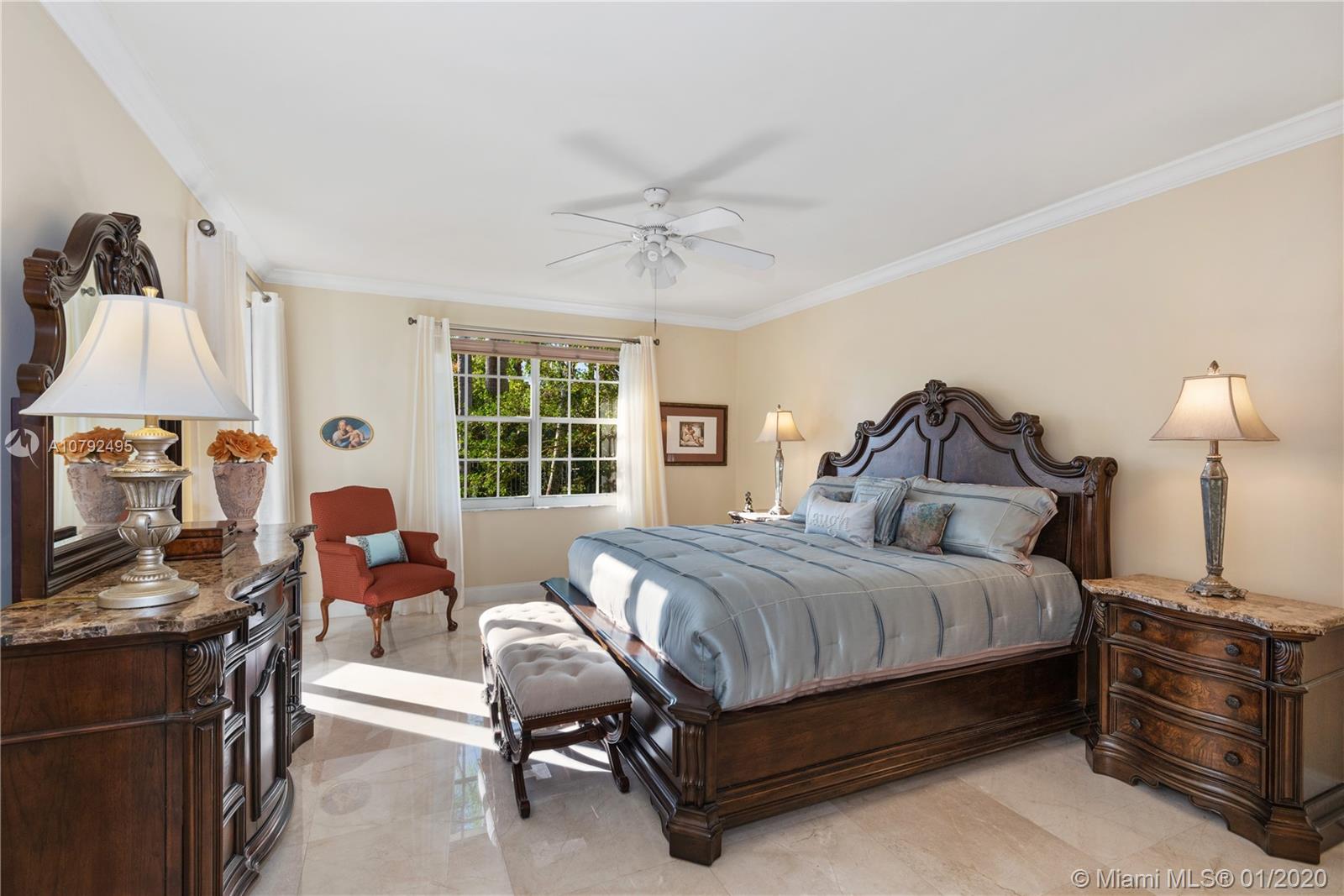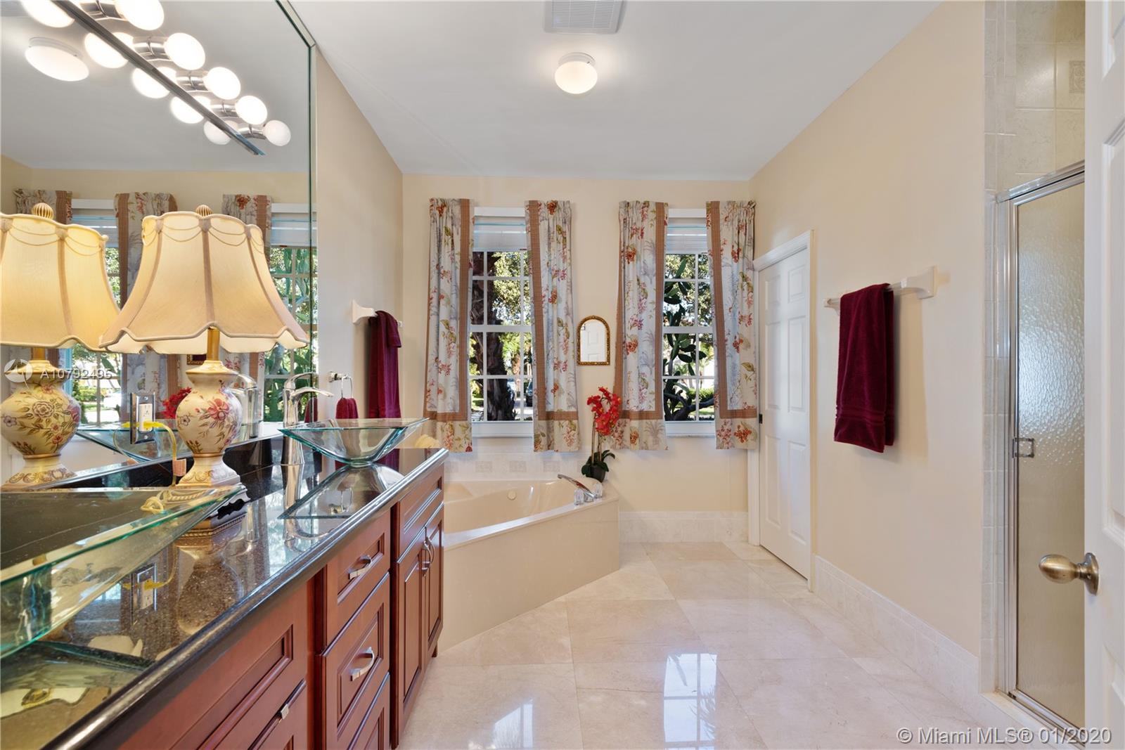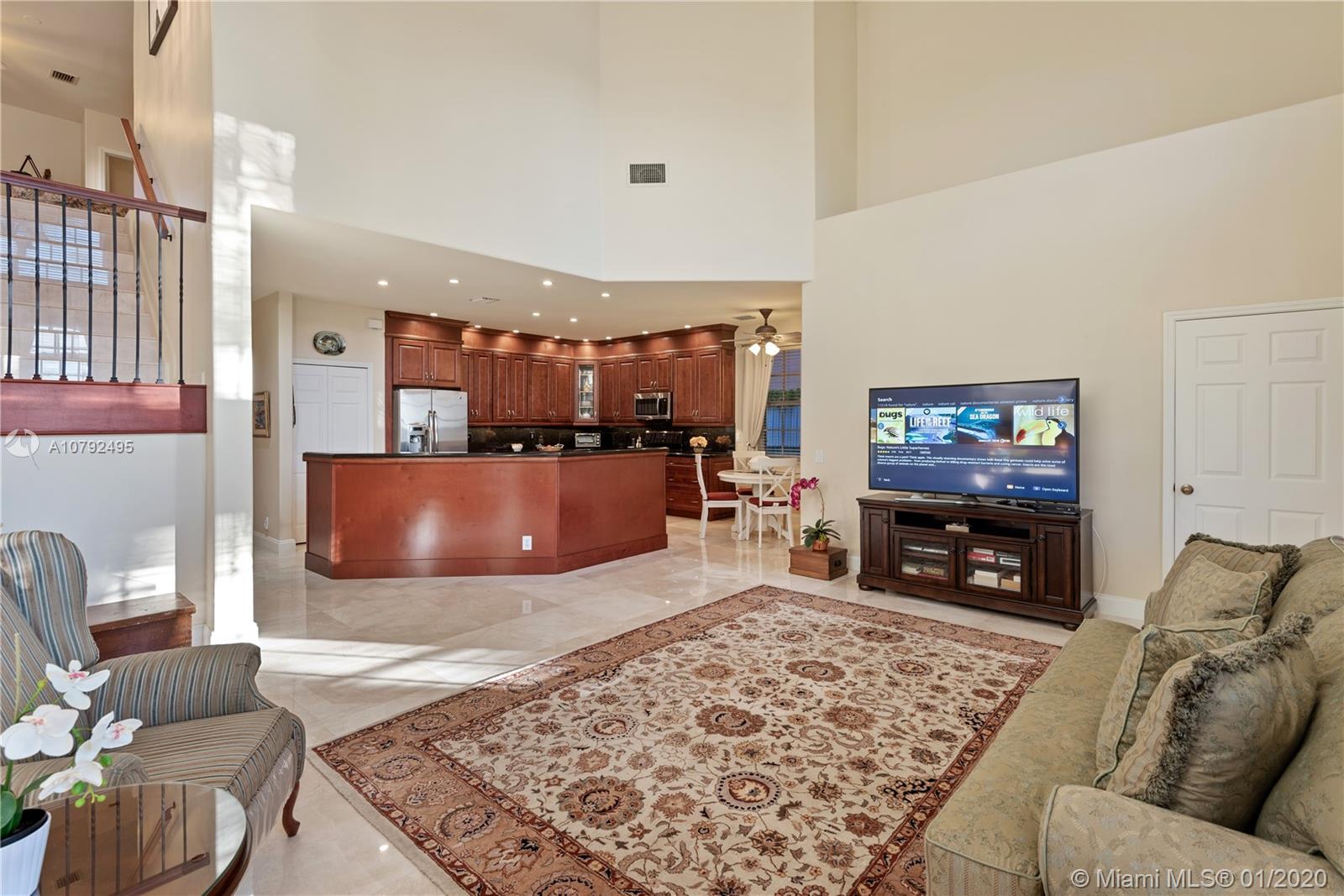 Pristine two story 4/4 pool+spa home, 2 car garage, welcomes you to a grand foyer & livingroom area with soaring ceilings. Adjacent is the formal dining and oversized master suite. Great natural light throughout includes a million $ endless sunset view. Recent make-over with upscale finishes. Elegant marble flooring gives an opulent touch. Opened gourmet kitchen offers an eating area and a family room overlooking the water view and pool area. Newer bathrooms as well. The 2nd floor is where you’ll find 3 bdrms and a mezzanine area large enough for a full livingroom, has been dressed with wood flooring. Private outdoor area is lushly landscaped. Sparkling pool has just been resurfaced. This home is 3,600 sq ft on a lot close to 11k sq ft. Furniture for sale. Excellent location close to I-75.