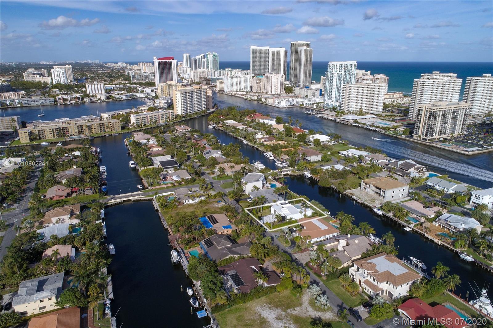 Ultra-modern single story architectural masterpiece in prestigious Golden Isles community. Meticulous no expense spared construction featuring impact windows, reinforced concrete roof, 500 Sq. Ft. rooftop terrace, large beach area pool with raised spa. 85' modern concrete dock with lights, dual power and water. The interior features 4 bedrooms and 3 bathrooms where 2 are primary bedrooms with en suite bathrooms, fully smart Control4 home with LED lighting, interior and exterior sound system and televisions, electric blinds and security systems all controlled from your phone or iPad. Just 1 block to the intercoastal and no fixed bridges to the ocean. Virtual Showing: https://vimeo.com/445824884