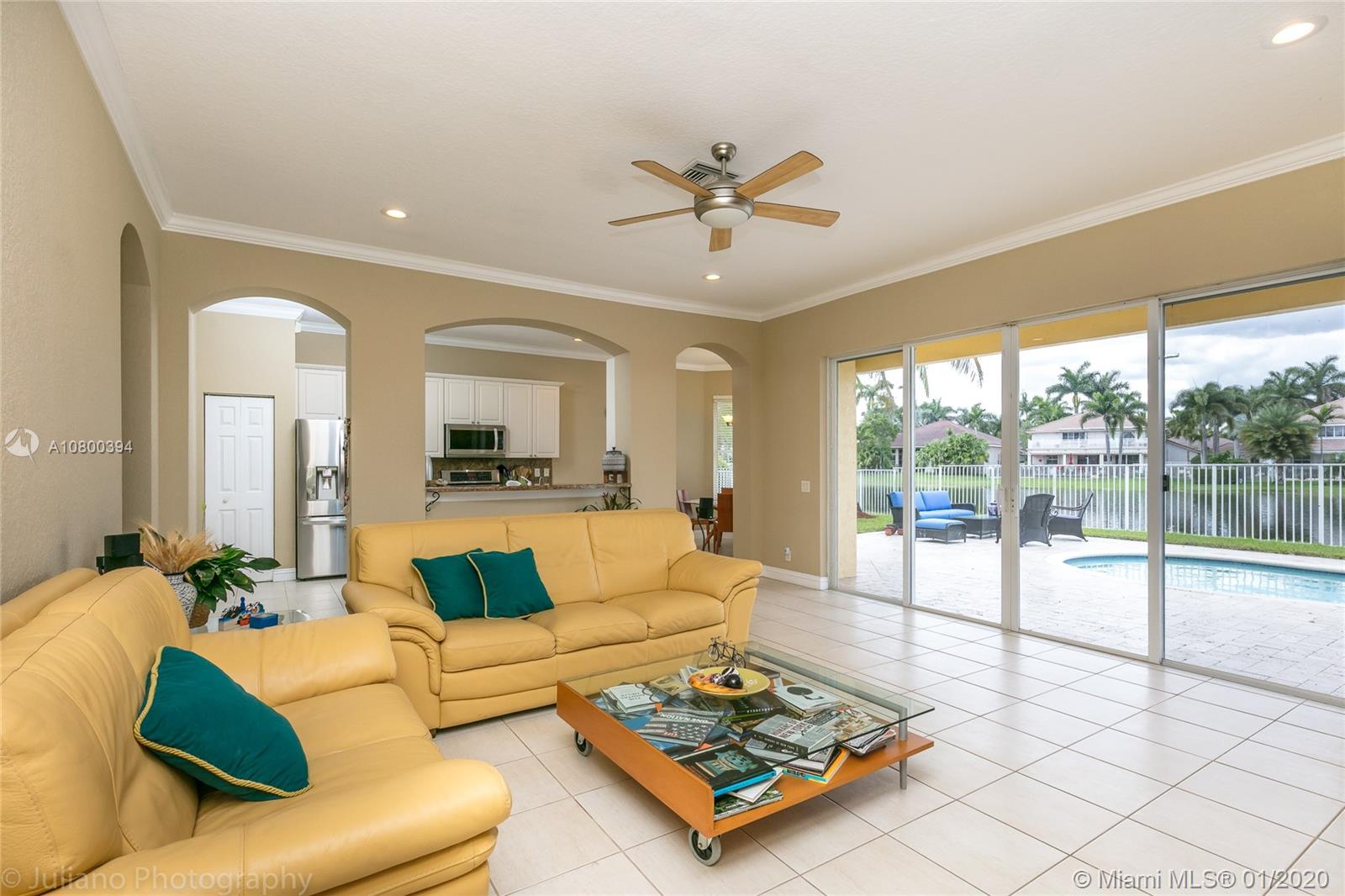 Come home to Weston Hills Country Club; great house with a breathtaking lake view and a relaxing pool (fully fenced); 7 bedrooms, 4 full baths, and a spacious den/play area/office/second family room! One bedroom and full bath located in the first floor, Master and 5 more rooms in second floor. All flooring is tile and bamboo, no carpets! Master bedroom has two walk-in closets, and all other second floor bedrooms have walk-in closets! First floor includes the formal living/dining areas, family room overlooking pool and lake, and a beautiful white kitchen with breakfast area, granite counter-tops and SS appliances. Over-sized lot and 3 car garage, plus a large driveway with space for six additional cars! BCPA indicates 6 BR but there are 7 with windows and closets, all original construction.