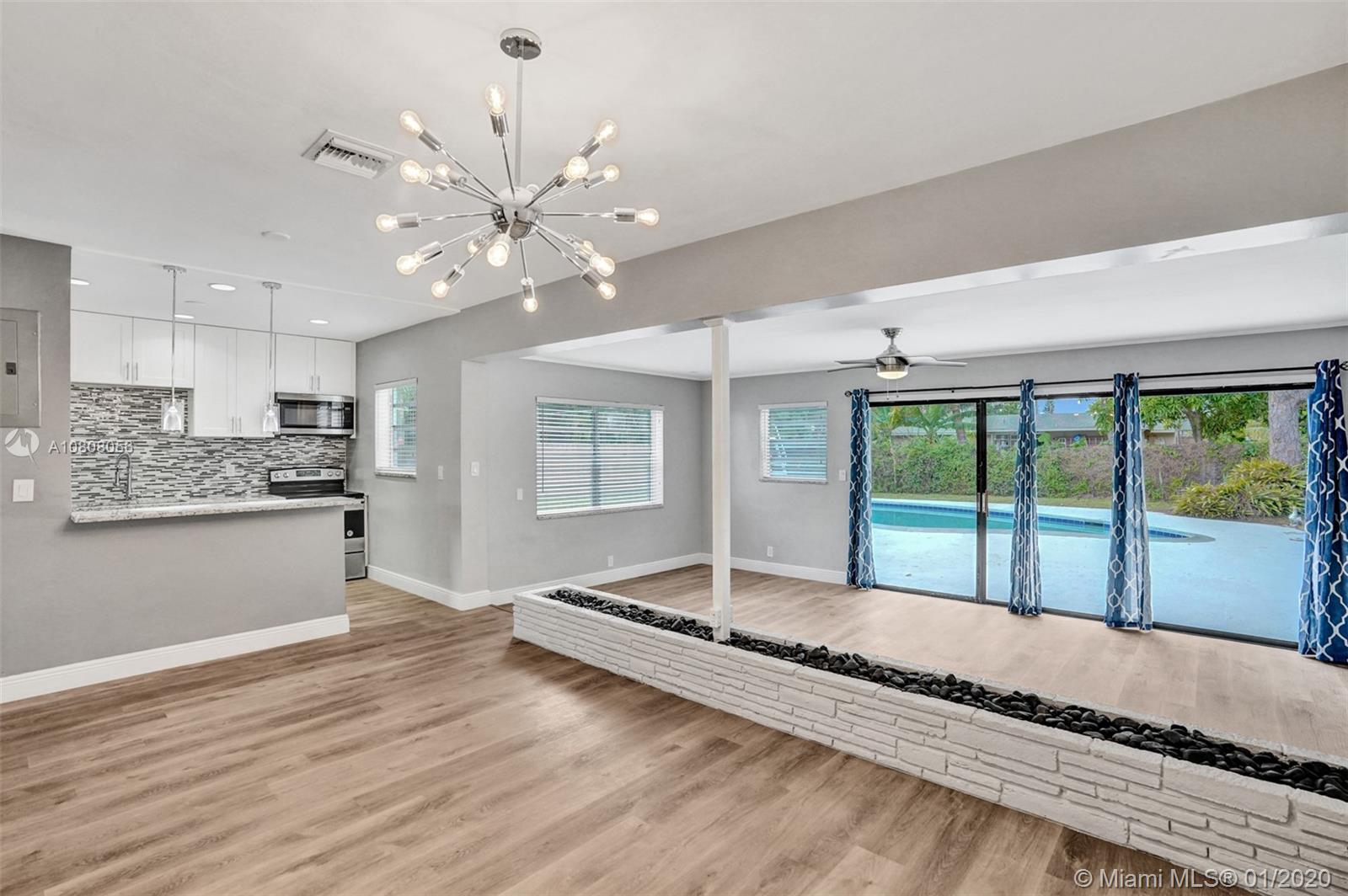 Beautifully Remodeled 3/2 + Large Family Room+ POOL + Garage. Located in heart of Fort Lauderdale. Over $75K in upgrades. NEW kitchen: Soft-close wood cabinets, granite counter-tops, NEW stainless steel appliances, glass back-splash. Open concept floor-plan, high ceilings. Brand New Central Air System, Newer Solar water heater, Completely upgraded bathrooms with modern finishes. High-end fixtures throughout. Waterproof laminate floors. Beautiful faux wood blinds. New Diamond Brite Pool. New electric panels. Freshly painted inside & out. Sits on a private oversized lot, perfect backyard for entertaining. Huge Shed for storage…NO HOA!!! Current TAXES are LOW easy to qualify. Centrally located close to shopping, I-95, Turnpike, Airport, Hard Rock Casino, Sawgrass Mills Mall & Beaches...