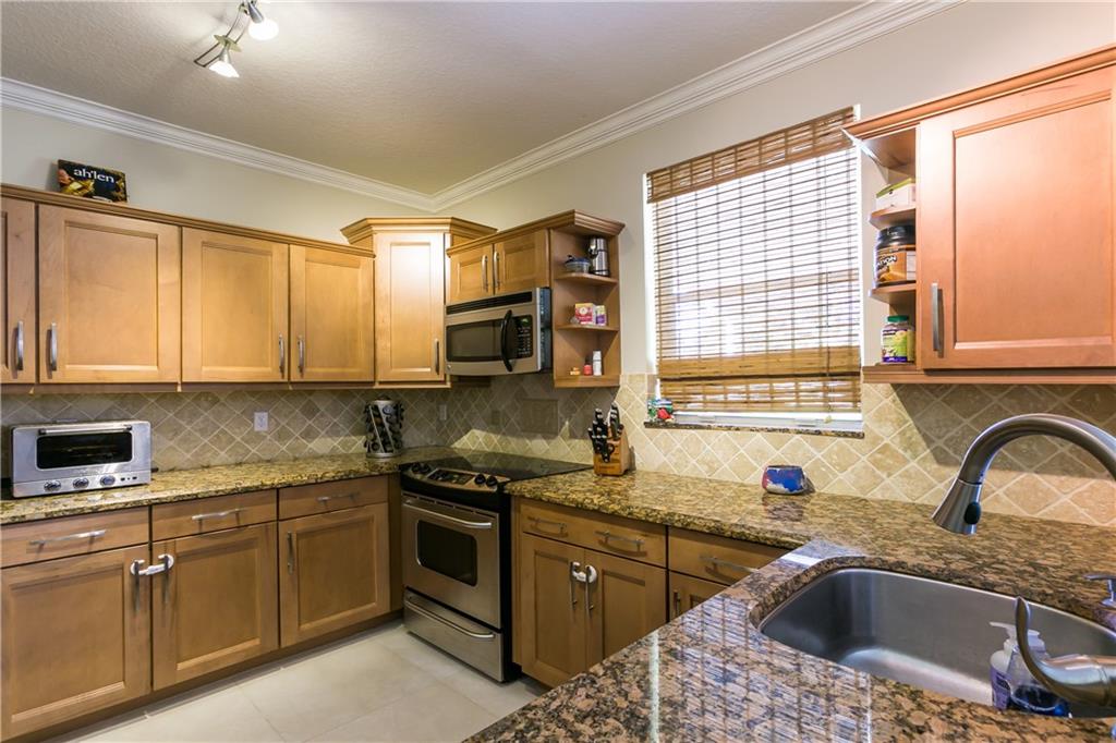 3rd longest lot in the entire community! Yard for days, 3,200+ sf back yard! Great for families/pet lovers! Impeccable 3 bedroom 2.5 bathroom w/ renovations throughout. 24" tile on ground floor flowing into large granite & stainless kitchen. Expansive dining area great for entertaining, seats 10+. Bright and airy /w arch windows in living room. Crown moulding & 4" baseboards. Rich wood look tile upstairs done in 2018. Wide Master Bedroom w/ great closet & sitting area. Able to install additional closets if desired. Master bathroom has granite top double vanity. Frameless shower redone in 2018 w/ ultra-clear glass & tub replaced w/ new deep long tub. Patio area opened up w/ new tile. New: electrical panel 2010, Condenser 2019, Evap Coil 2018, Garage Door 2018. Water heater 2018!