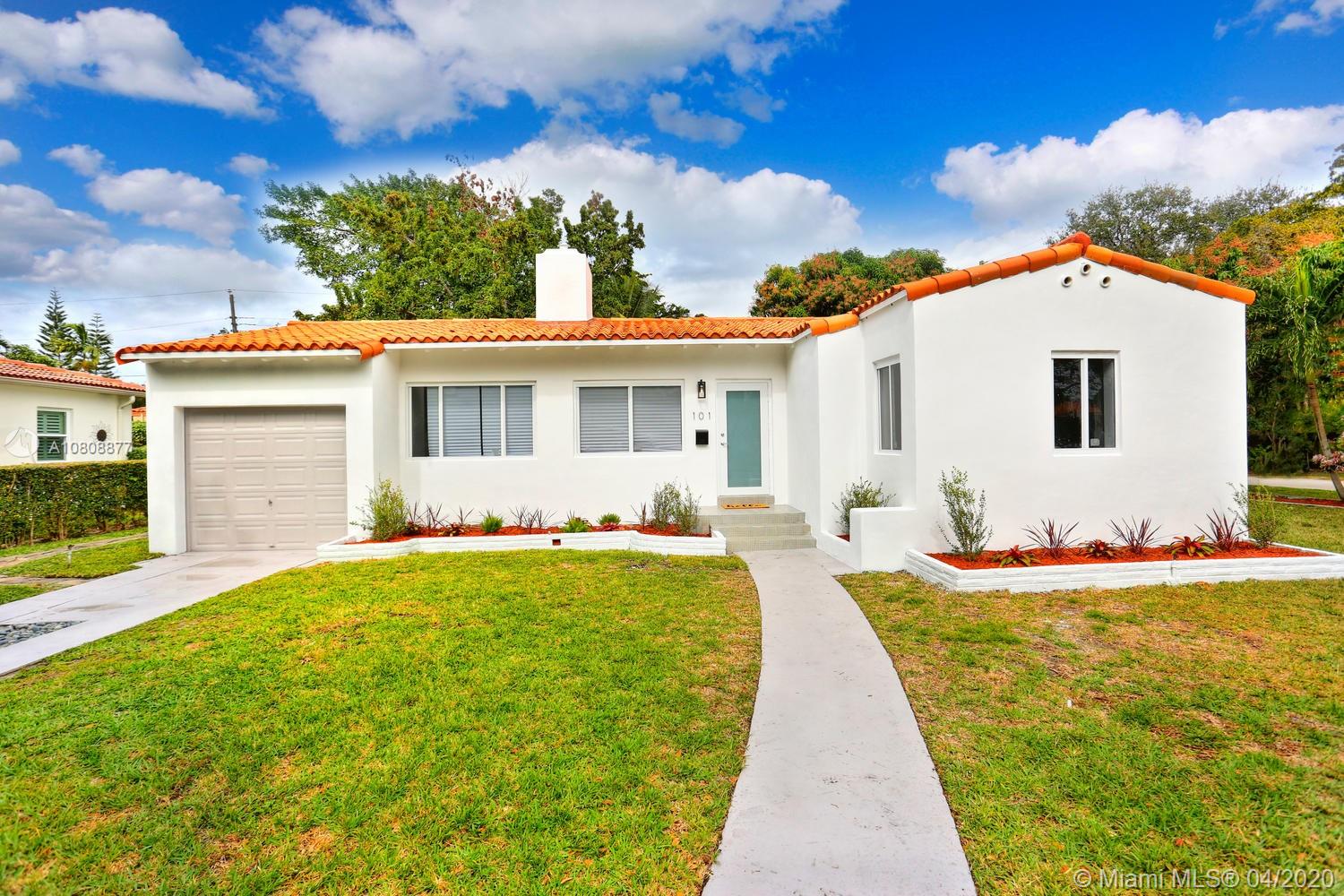 Lovely home in a coveted Miami Shores neighborhood. Recent total renovation. Light-filled living spaces (formal living/dining + family room) feature original newly finished hardwood floors & fireplace. New kitchen with classic white wood cabinetry, quartz countertops & stainless steel appliances. The house features 3 Bedrooms, 2 Bathrooms, Living/Dining Area, Breakfast Area, Family Room, Multiple French Doors, Impact doors & windows throughout, and Garage spaces for 3 Cars. Enjoy year-round outdoor living in the large garden with ample room to add a pool. Minutes to downtown, MIA, the Beaches and to major highways for easy access throughout South Florida.