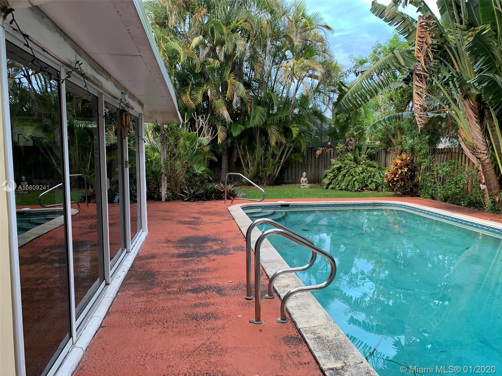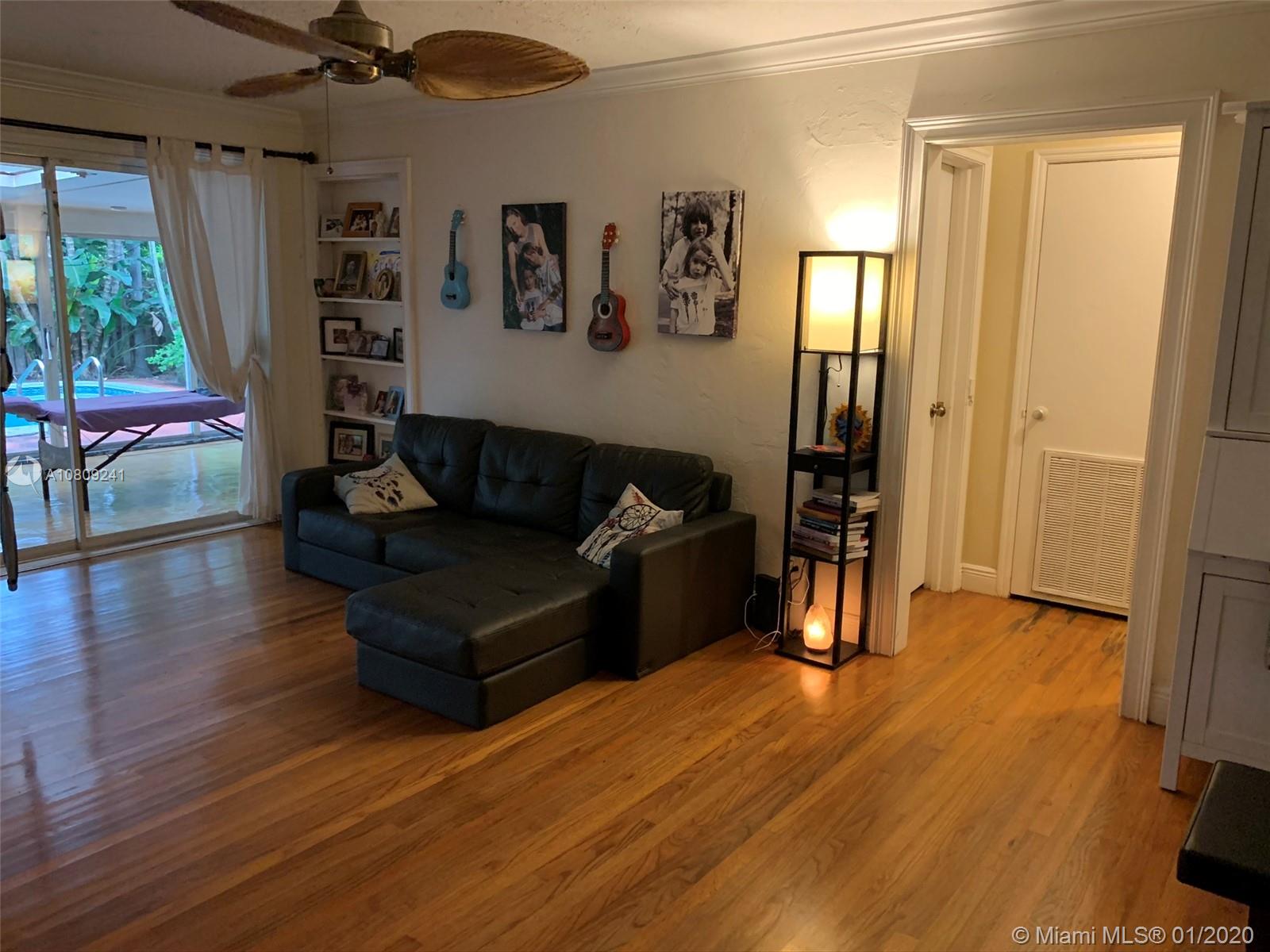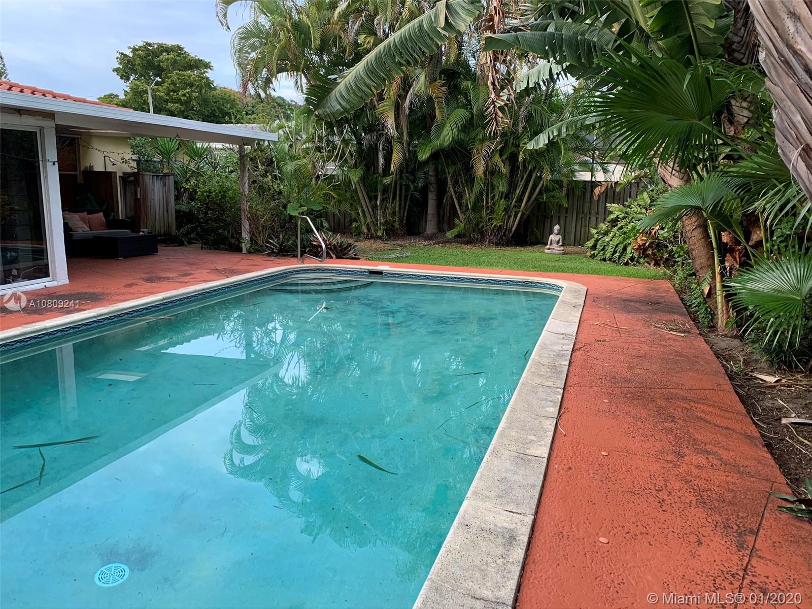 Well built and Maintained 3B/2Fb/2Hb home with pool, just minutes from good schools, sandy Hollywood beach,and large park close by.This home is perfect for a family or investor. Tile roof 6 yrs.old & patio aluminum roof new. Kitchen is updated with new cabinets, counter tops along with stainless steel appliances. Beautiful wood flooring throughout the house. There is a good flow to the house that includes a spacious great room, also a third room for many uses. Enjoy the front porch or private back patio with outdoor shower and lush landscape. Close to Hollywood downtown, I-95 and good neighborhood. Great Location.