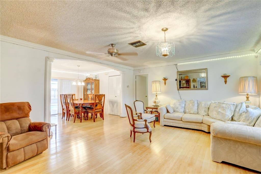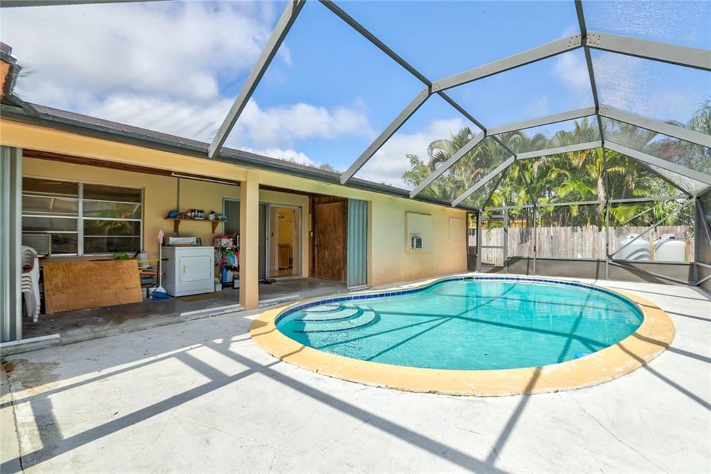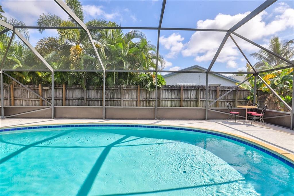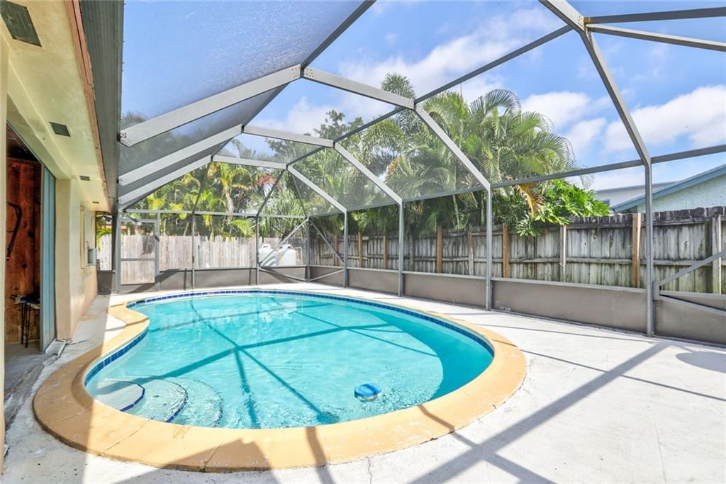 Fabulous location in desirable Palm Aire Village. Spacious home with 4 large bedrooms, 3 full bathrooms and pool with high screened enclosure. Flowing floor plan with updated flooring throughout. Hurricane windows in most of the home with a few hurricane shutters for the back windows. Huge family room and dining area lead out to pool deck. Home is equipped with a generator and two large built in propane tanks. You'll never have to worry about losing power again. There are two storage rooms in the back yard plus extra grass around the screened in pool for walking pets.