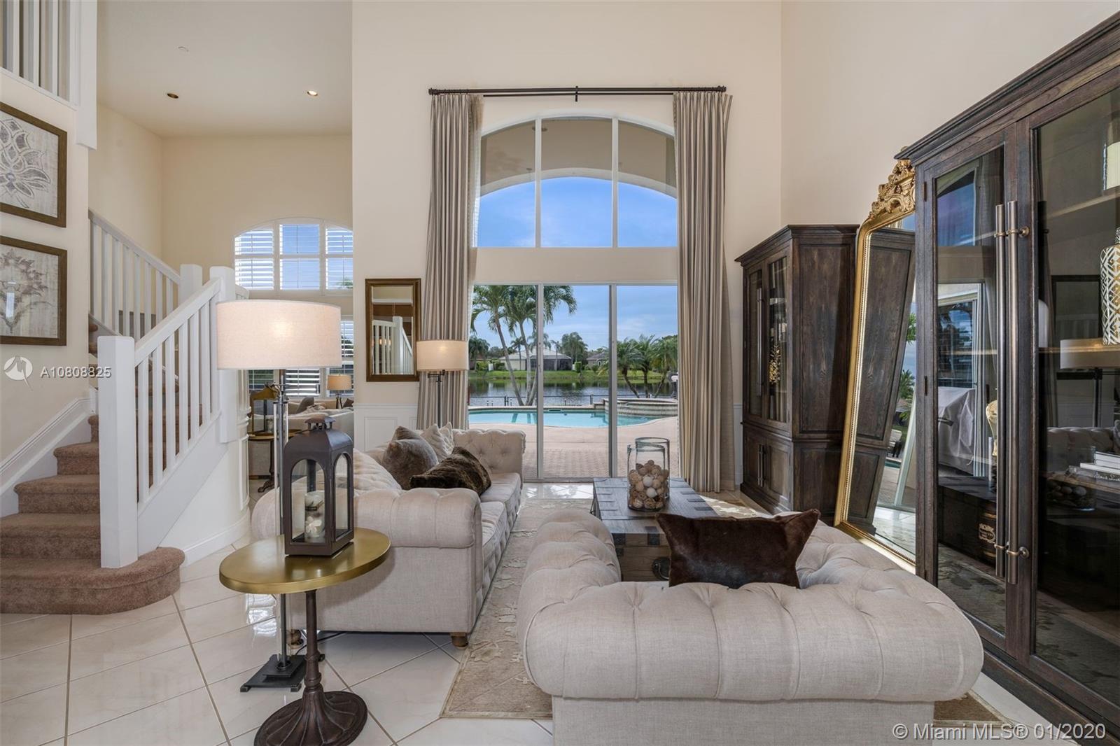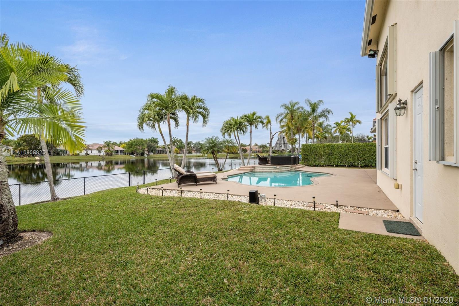Please note that the 1st floor DEN could easily be converted to the builder’s 5th bedroom option in this tremendous, bright and airy POOL & LAKE home. This extremely well-kept, clean home features a laundry list of desirables that include but are not limited to an oversized 1st floor Master suite with AN ADDITIONAL 11x10 sitting room, an ADDITIONAL open LOFT, custom HUNTER DOUGLAS PLANTATION SHUTTERS, dark wood flooring in the oversized bedrooms, 20' soaring ceilings, recessed lighting, 3 A/C units, HEATED pool with diamond-brite, upgraded cabana bath, ACCORDION SHUTTERS, covered patio, and on & on. And here is something you can’t fully experience until you visit the house; the Sunsets- oh, those Sunsets.
