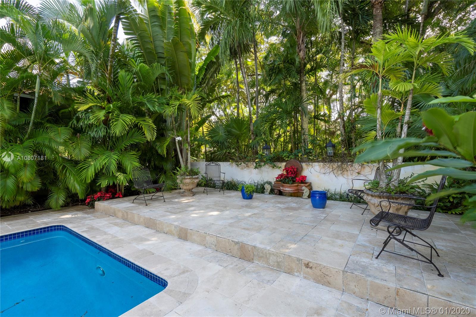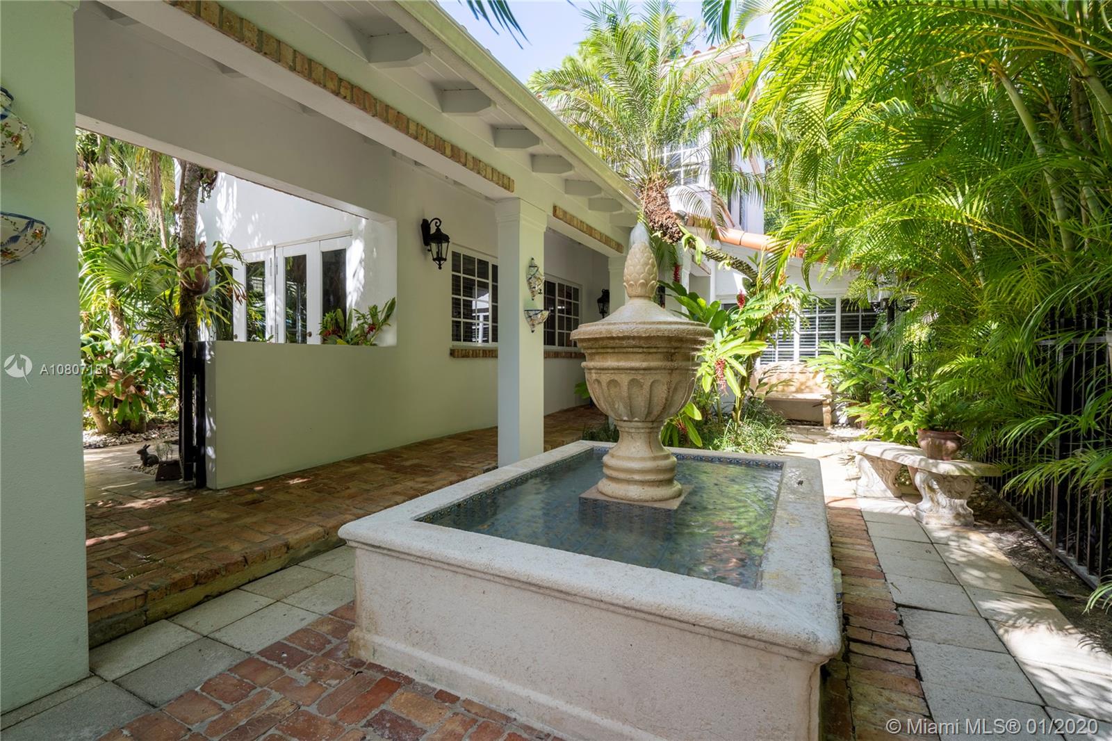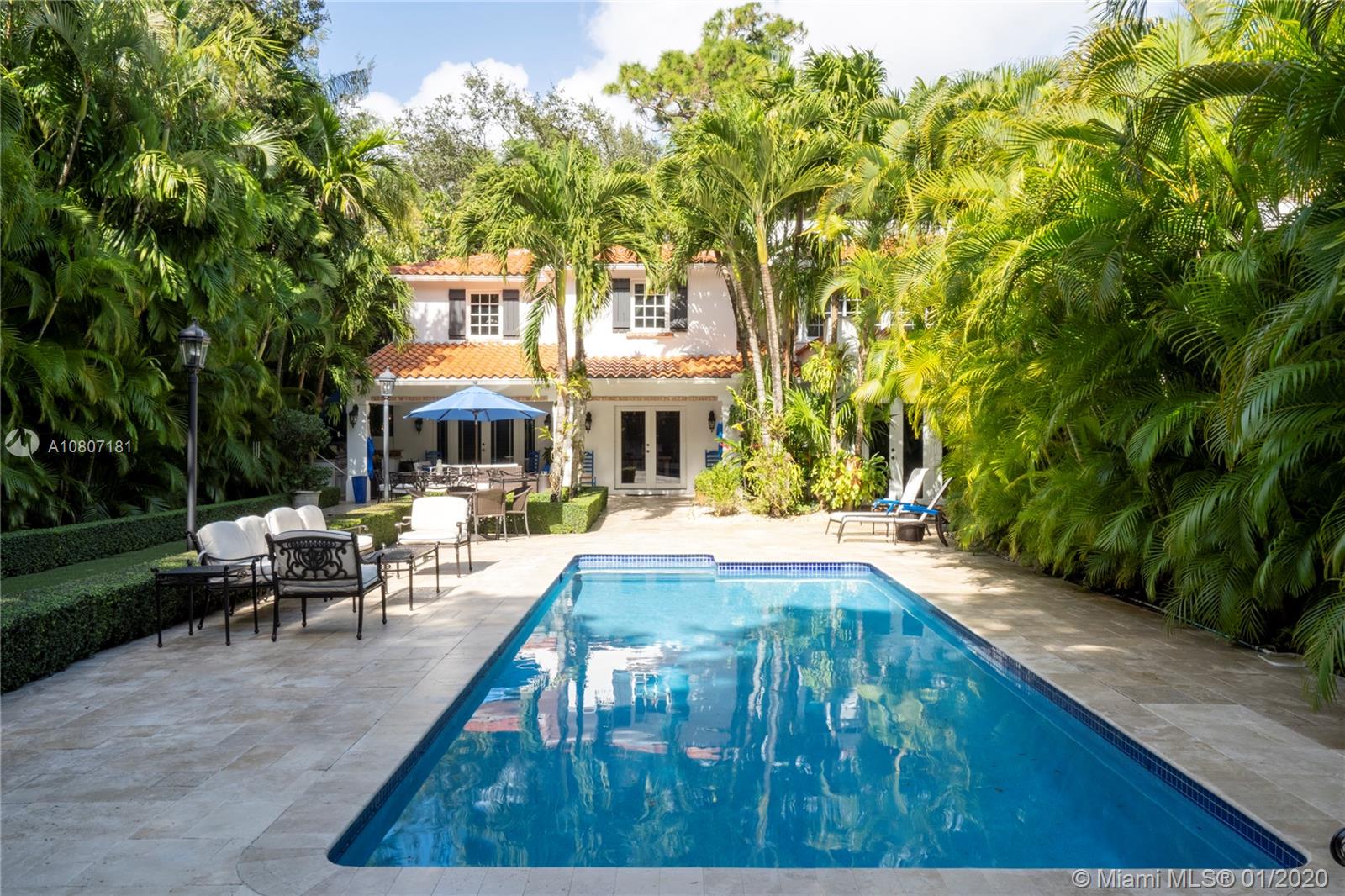 New Listing near the Coral Gables Library and the Coral Gables Youth Center. This 1920s carriage house has been significantly expanded and updated. It sits on a deep, lushly landscaped and private lot (139' x 75' = 10425 sq. ft). Entrance to the house has a brick patio with a beautiful fountain. Formal living room, dining room and sun room on the east side of the house; kitchen, informal dining room/ family room, and family/library on the opposite side. The family/library can easily be converted into a 4th bedroom with existing full bathroom. Three bedrooms and two bathrooms upstairs, with an office off the master bedroom. Lots of closets and storage. Beautiful pool/patio with plenty of privacy. Charm is everywhere!!