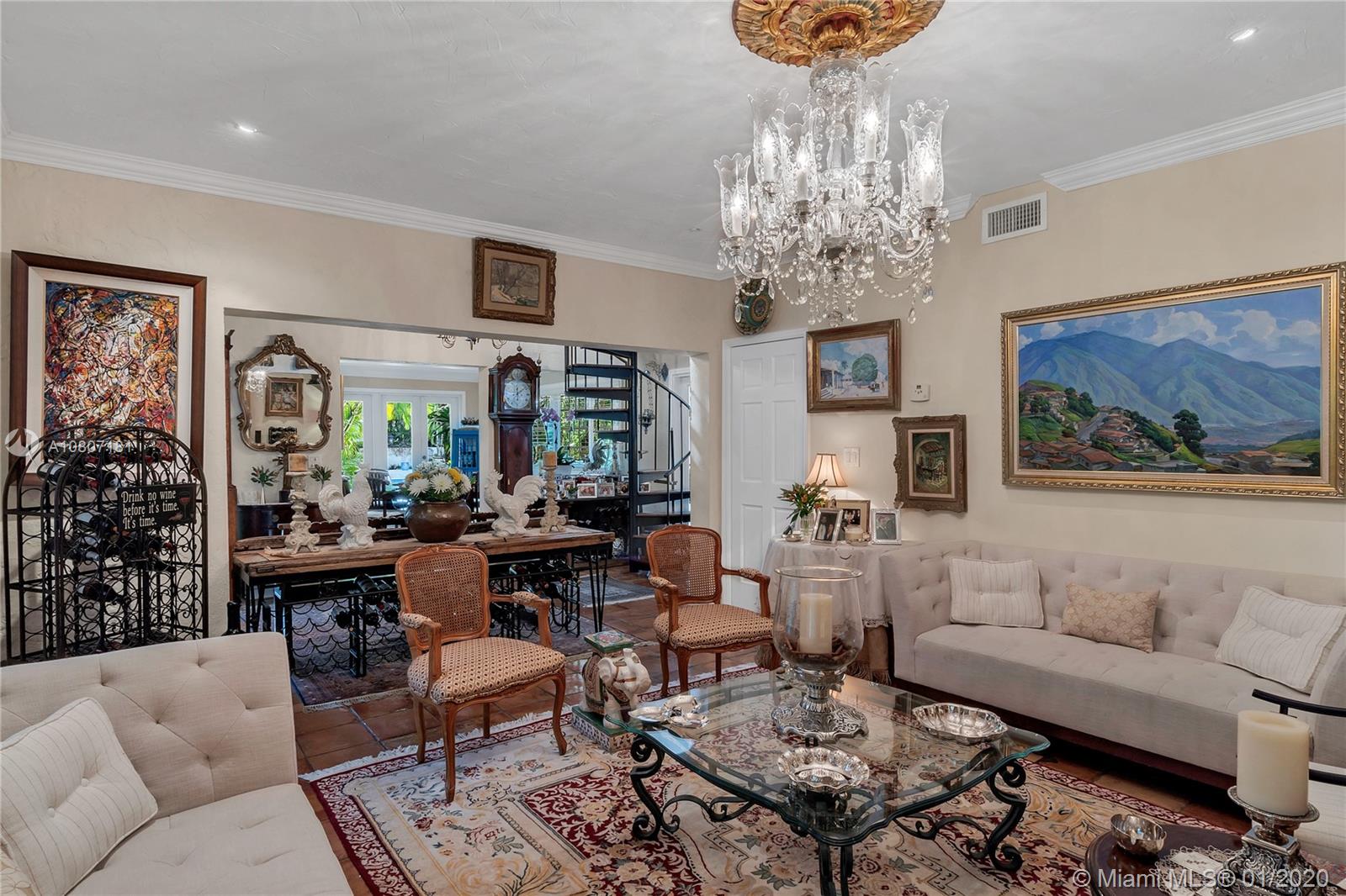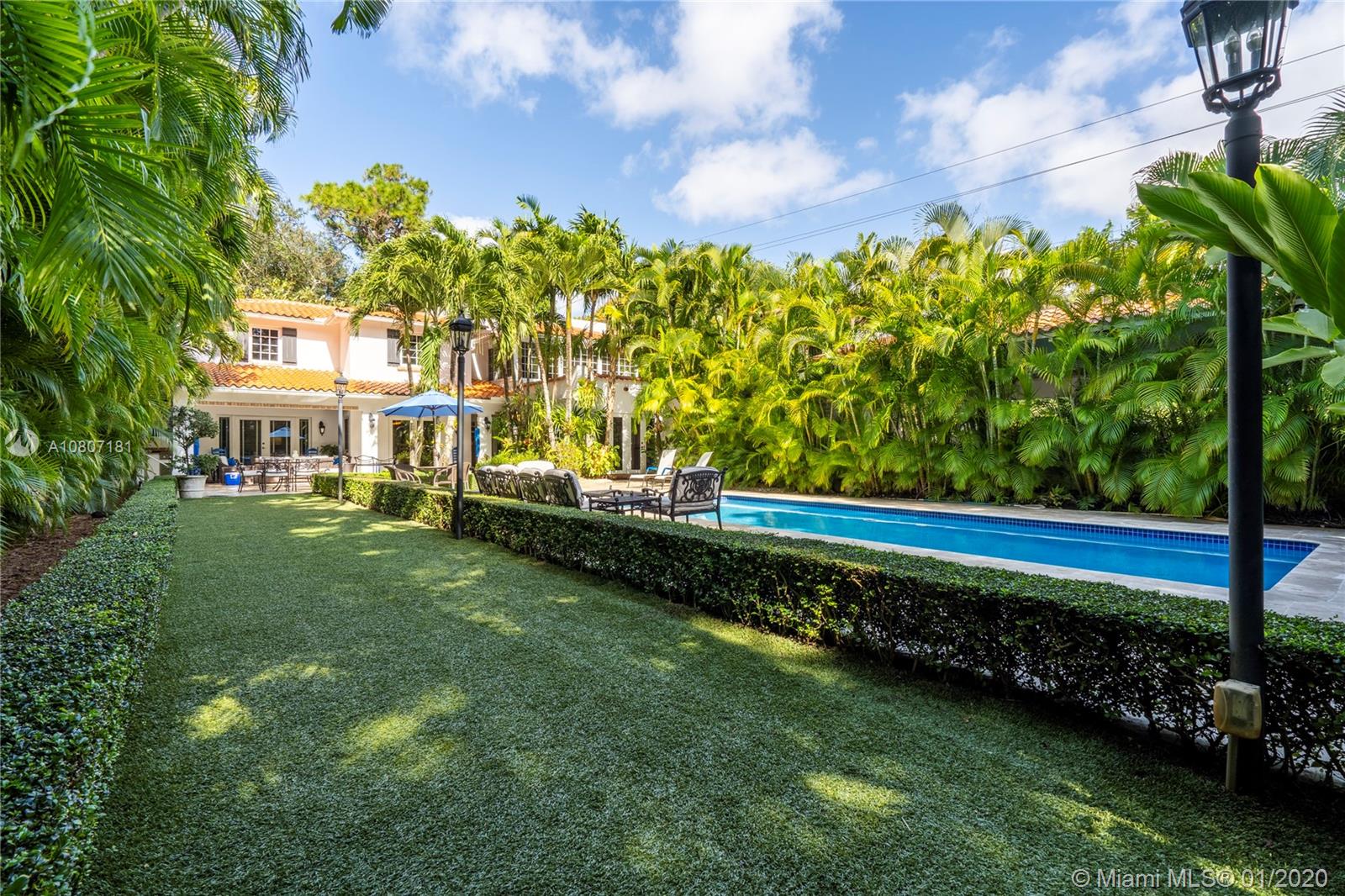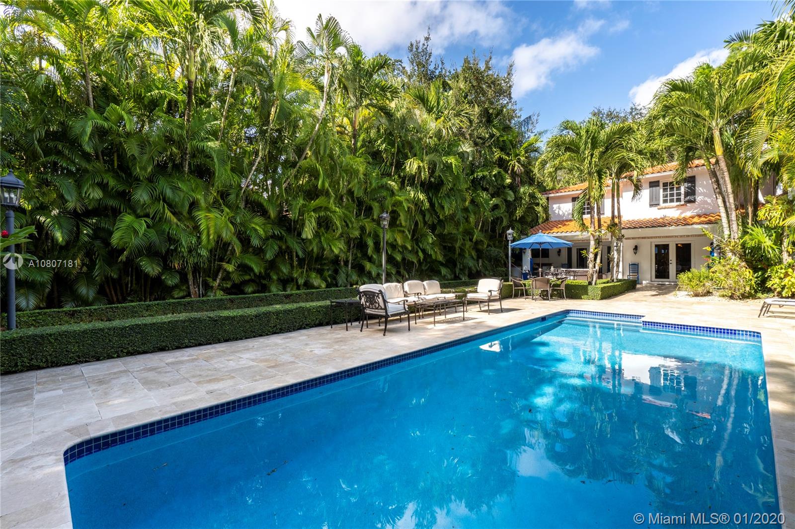 New Listing near the Coral Gables Library and the Coral Gables Youth Center. This 1920s carriage house has been significantly expanded and updated. It sits on a deep, lushly landscaped and private lot (139' x 75' = 10425 sq. ft). Entrance to the house has a brick patio with a beautiful fountain. Formal living room, dining room and sun room on the east side of the house; kitchen, informal dining room/ family room, and family/library on the opposite side. The family/library can easily be converted into a 4th bedroom with existing full bathroom. Three bedrooms and two bathrooms upstairs, with an office off the master bedroom. Lots of closets and storage. Beautiful pool/patio with plenty of privacy. Charm is everywhere!!