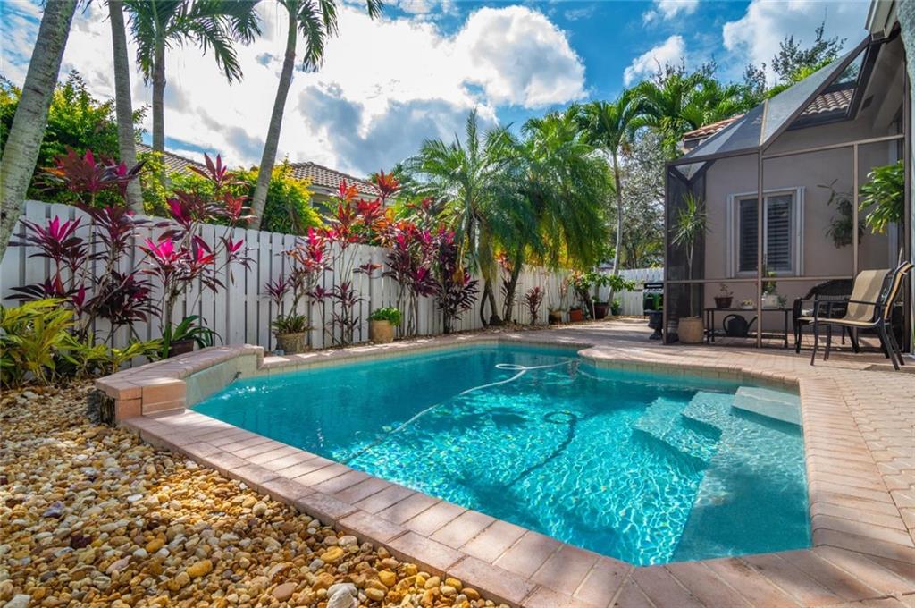 BACK ON THE MARKET DUE TO BUYER FAMILY EMERGENCY: Nestled in the heart of Weston's prestigious community of The Islands, this gorgeous 3/2.5 corner home features volume ceilings, Plantation shutters, a formal dining room, an open floor plan, & updated ADT. The remodeled, eat-in kitchen includes 42" Kraftmade cabinets w/pull-outs, newer SS appliances, granite counters & backsplash & recessed lighting. The updated baths include a Master w/custom stone decor, jacuzzi tub, seamless shower & double vanity. Flooring is of high quality wood laminate in the bedrooms, & marble tile in the baths. Newer hot water heater, A/C, upgraded paver drive/sidewalk, Accordion shutters; new pool salt water system! Entertaining family & friends comes easy in the complete privacy of this fenced, backyard oasis!