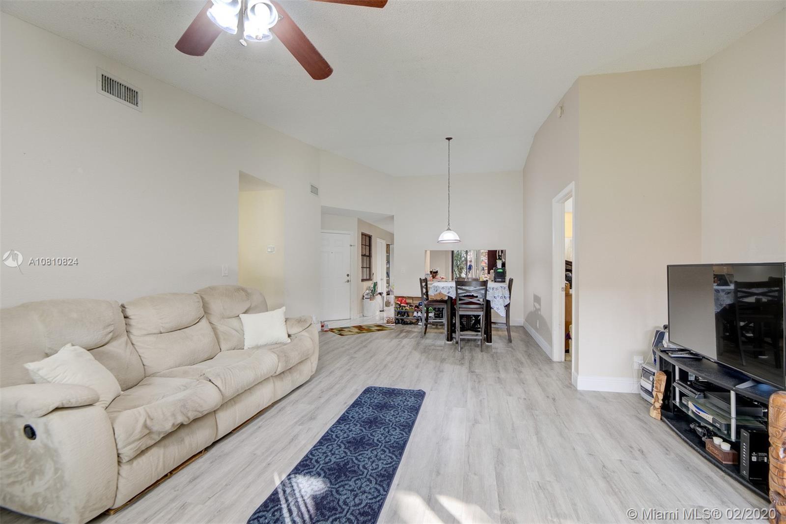 Gorgeous gated community 3/2 with garage fully converted from original builder that is air conditioned, this makes it a true 4 bedroom. All hard waterproof gray laminate floors,Baseboards, and lake in the backyard. Community pool and playground. Granite kitchen and bathrooms. New stainless steel appliances, tank less hot water heater, central water softener/filter, Cathedral ceilings, patio for grilling, open floor plan with screened porch with lake view. New waterproof plank flooring. Gated community with playground, pool. Great location within minutes of Saw Grass mall, restaurants and shopping. Low Hoa Fees