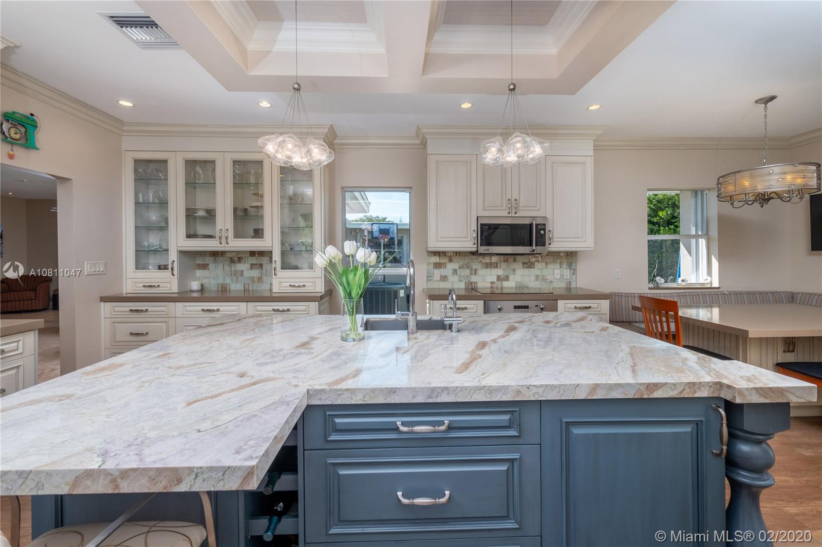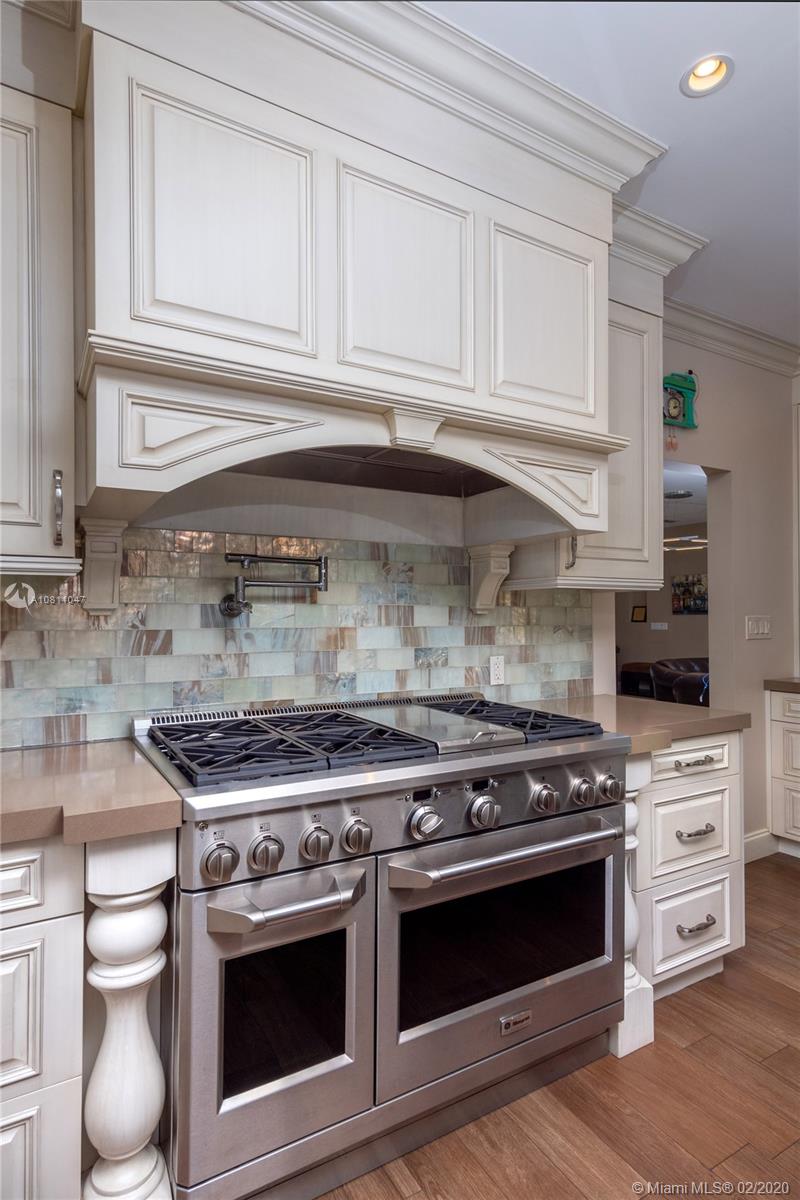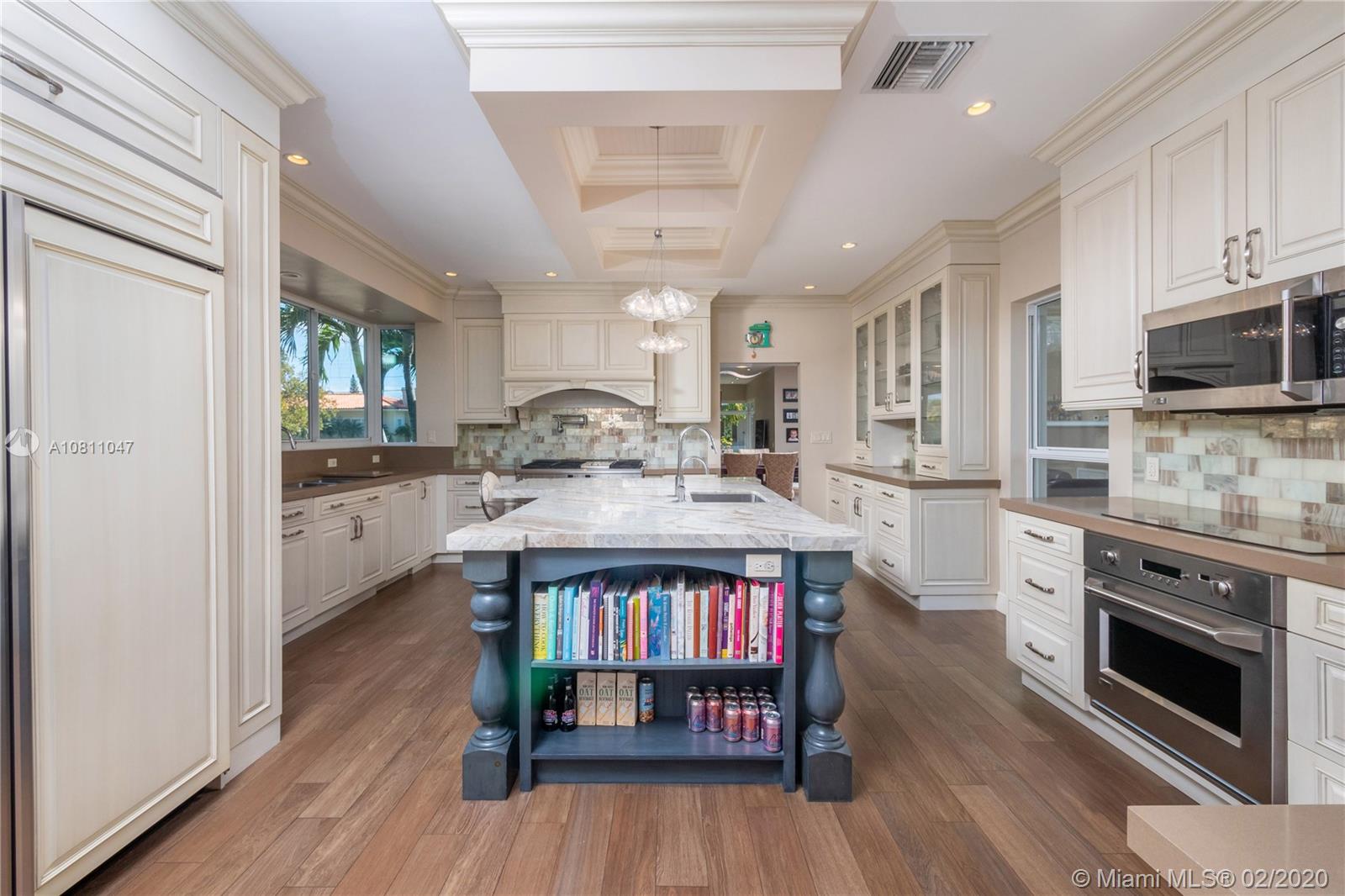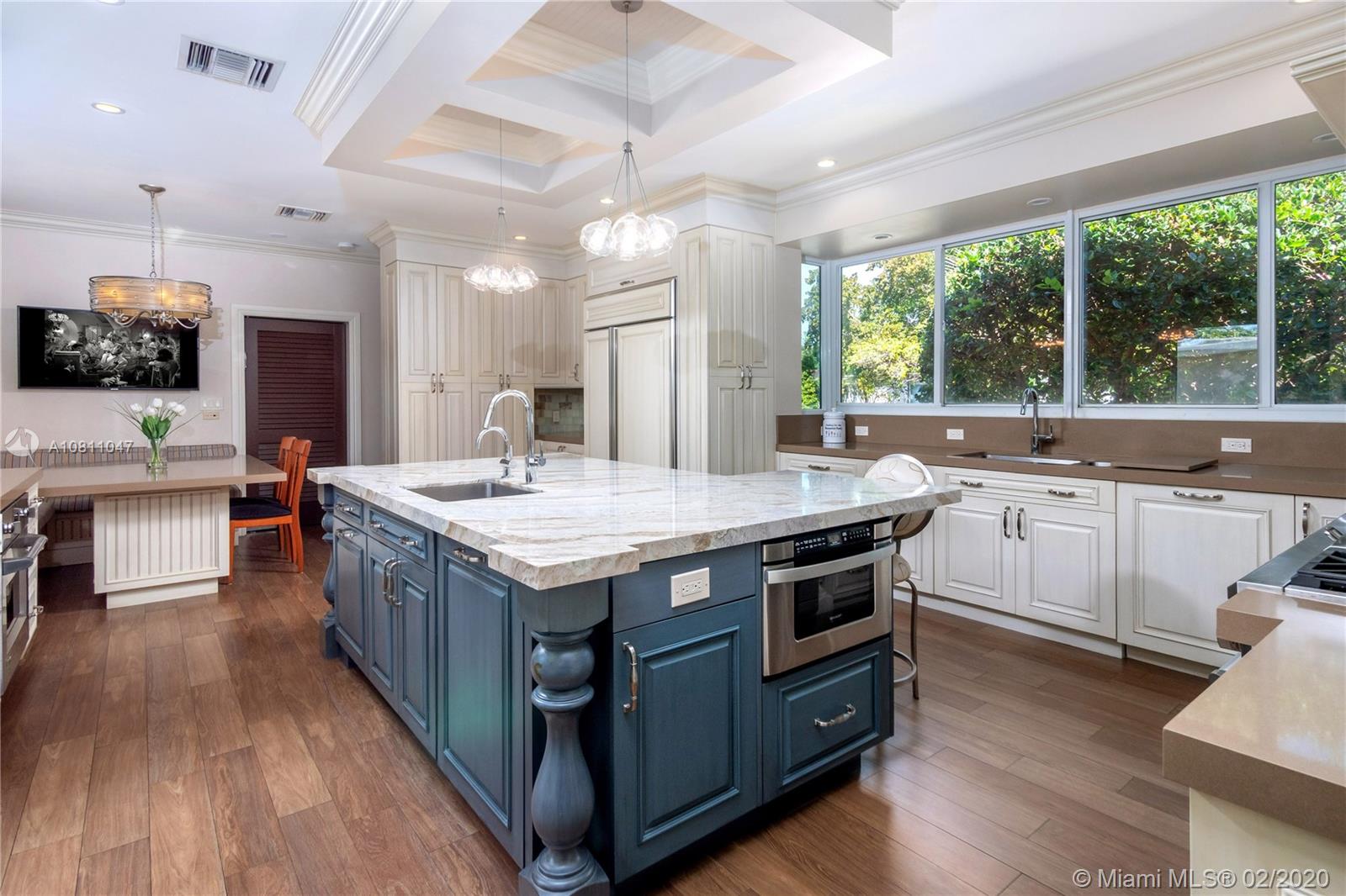 A true family home w/ abundance of natural light, oversized 10,600sqft corner lot. 5 bedrooms/4.5 Bath, split floor plan, incl. guest suite w/private entrance. Highly sought-after neighborhood! Foyer entry w/ custom closets & open-concept living/dining area. Newly constructed Kosher kitchen w/ custom hand painted cabinetry, Monogram stainless appliances, gas cooktop w/grill & double gas oven, addtnl induction cooktop w/electric oven, cooking island w/custom fabricated quartzite, caesarstone countertops, & built-in breakfast nook. Master Suite offers large walk-in closet,en-suite bath, double vanities, jacuzzi tub, shower. Modern tropical landscaping, new travertine semicircular driveway & patio water feature. Tranquil, private, & walking distance to houses of prayer & 41st street corridor.