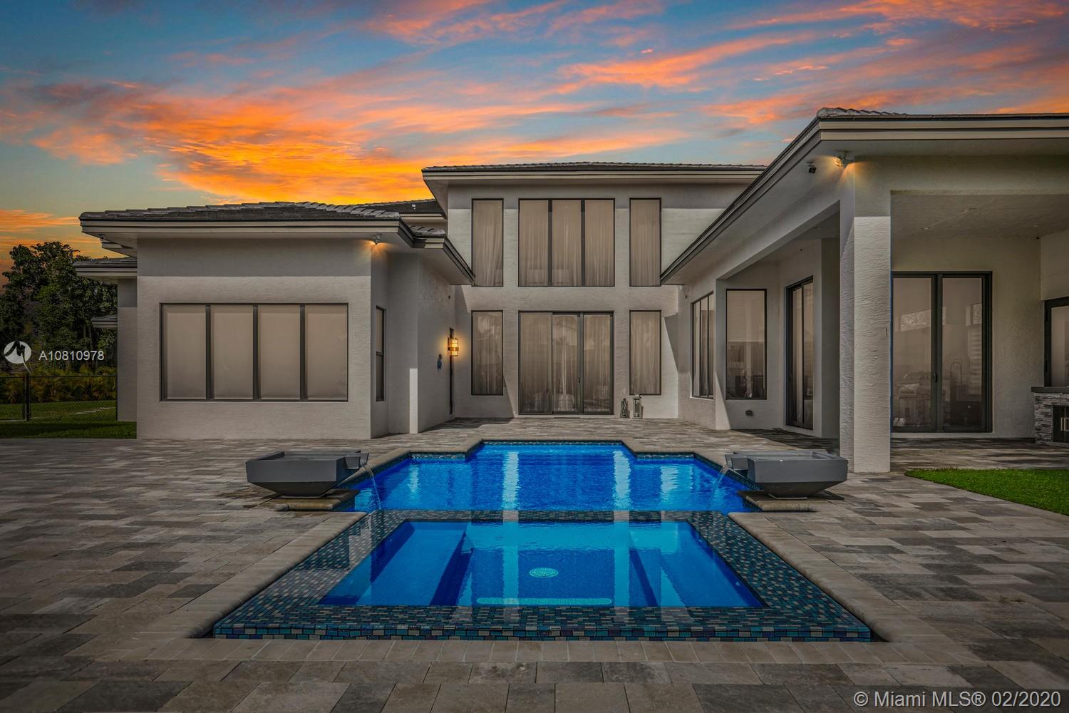 The newly constructed modern home is married with traditional touches, like stacked stone columns, that present a cozy environment. Luxurious features, such as a designer lighting and stunning white lacquer closet, offers elegance. A gourmet kitchen is punctuated by the open design and top-of-the-line appliances. Guest house with a master suite and kitchenette overlooking the basketball court and vast backyard. Custom pool, outdoor kitchen, and covered lanai area is perfect for entertaining.
