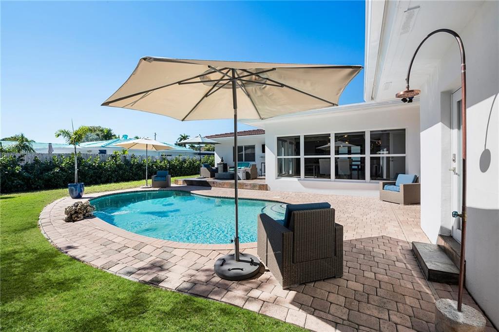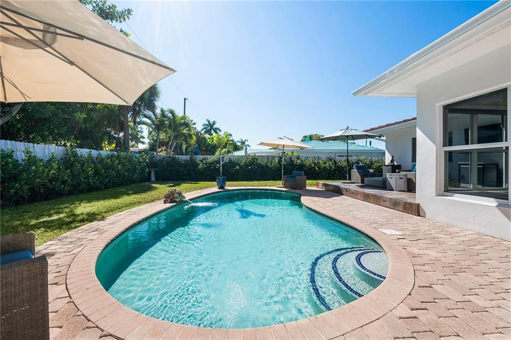 Beautifully remodeled with open floor plan, this stunning 4 bedroom 3 bath home is located in the highly sought after neighborhood of Dolphin Isles. Gourmet kitchen and wet bar with stunning quartz countertop and stainless steel appliances with gas range. Porcelain floors, tankless gas water heater, fireplace, and updated baths. A stroll to the beach and located in the Bayview School district. Enjoy outdoor entertaining with a free form pool, deck, and lush landscaping with privacy hedge-- perfect for entertaining! Impact windows and doors. Very close vicinity to Las Olas, Galleria Mall, shops, restaurants and entertainment!!