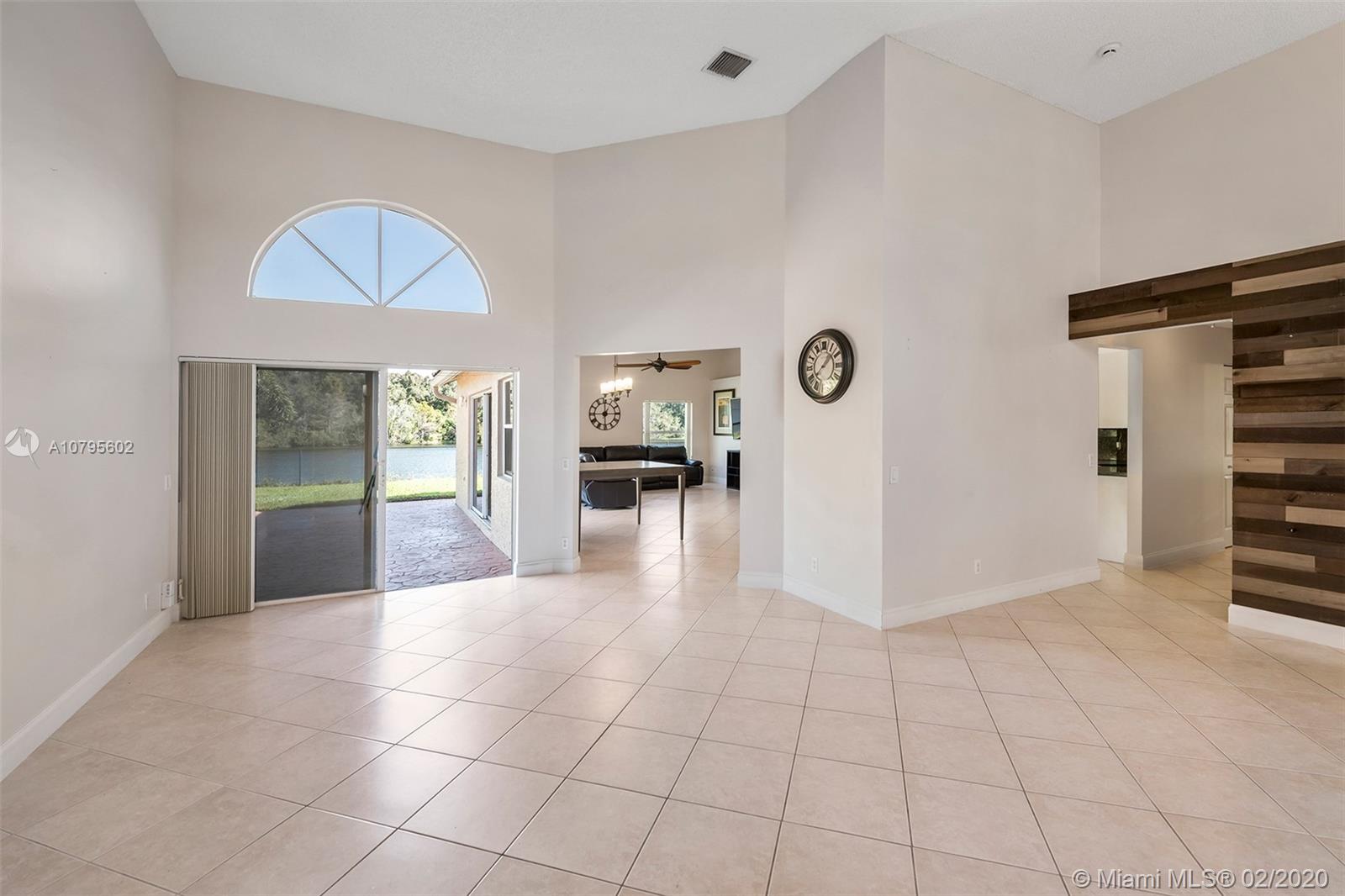 Spacious waterfront home in The Ridge on Nob Hill features 4BR (triple-split), 3BA, 3 car-garage, with tranquil and water and preserve views. Open-style floor plan w/ lots of natural lighting, formal living & dining areas, architectural niches, volume ceilings, upgraded kitchen w/ granite, stainless steel appliances, breakfast bar and area, open to Family Room. Master suite features 2 walk-in closets w/ built-ins, vaulted ceiling, sliding door access to private patio area, and an on-suite with spa-tub, dual sinks, and separate shower. Tile throughout, hurricane shutters, impact Cabana Bathroom door, fully fenced yard, community pool, walking trails, near Tree Tops Park, Westridge Open Space Preserve, Pine Island Ridge Natural Area, major highways and great schools.