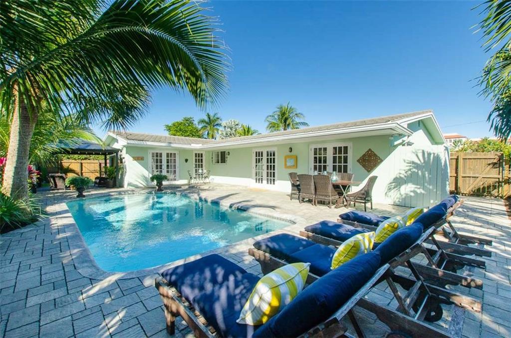 Wake up to the beautiful morning light and view your private resort like backyard. This immaculate East Boca 3/2 with a bonus room has many updates. Open floor plan with stainless steel appliances. White shaker cabinets and light wood floors. New pavers back and front. Renovated master bathroom. Impact windows with French doors leading out to your large salt water pool. Lots of room for outdoor entertaining with covered patio area for relaxing. One mile to the beach, close to Mizner and shops. Partial impact windows