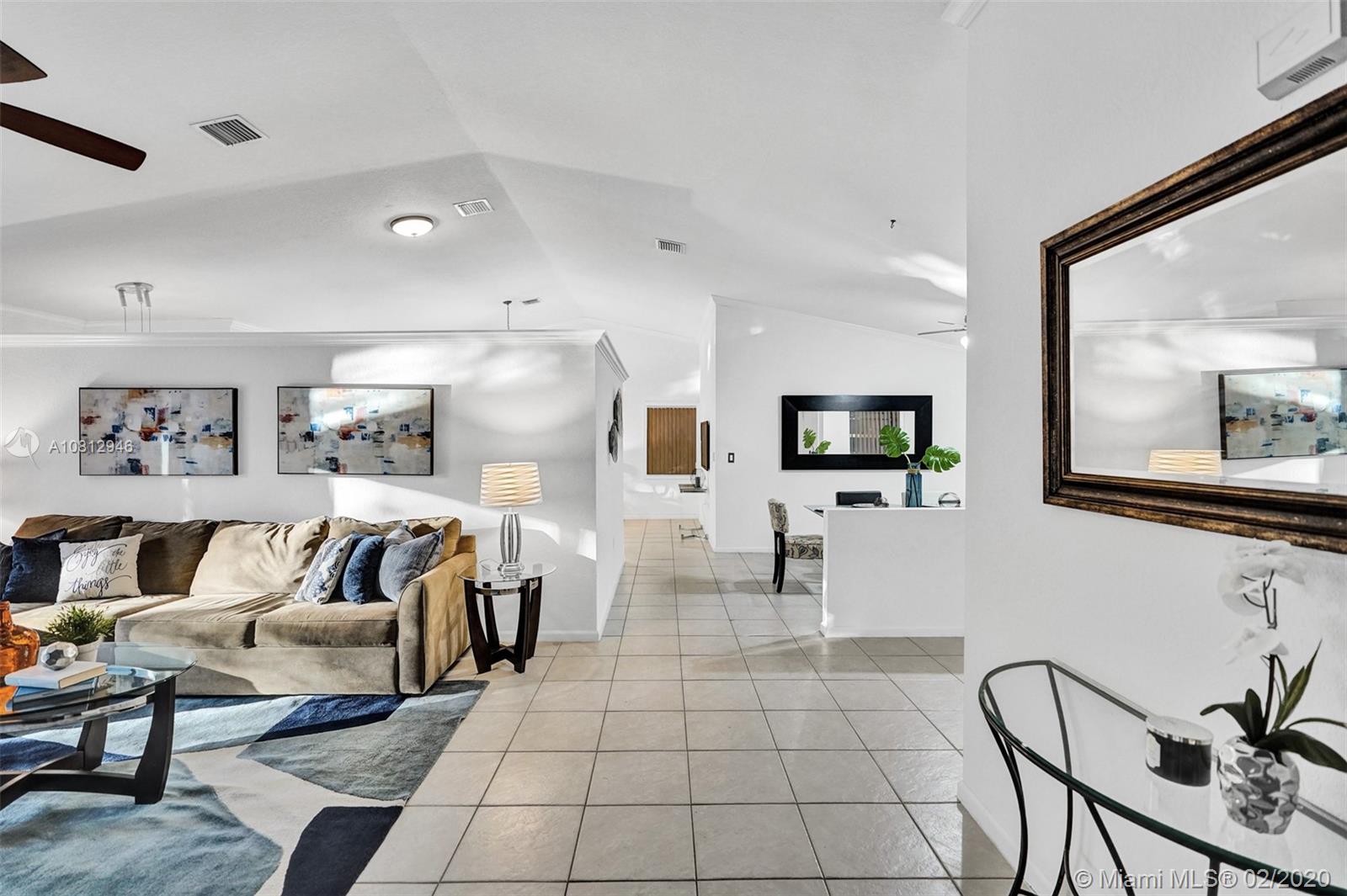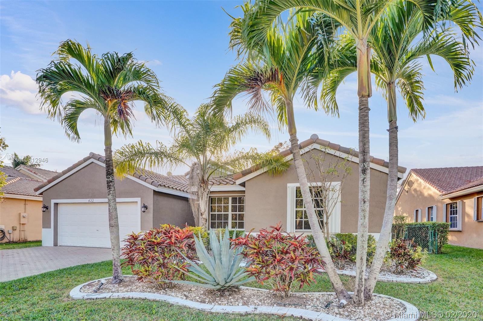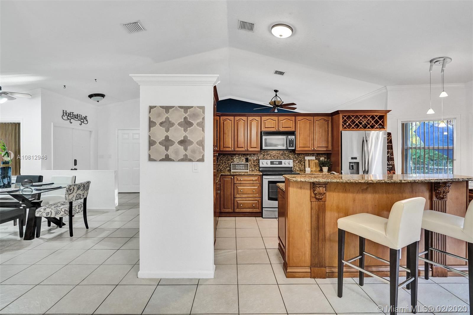 ROOF REPLACED in 2018. Beautiful pool home on a preserve (no neighbors in back) in elegant Alhambra's gated community. Split floor plan with expanded, upgraded kitchen and updated bathrooms. Neutral tile in common areas and laminate flooring in bedrooms. Gorgeous travertine patio out back with large free-form pool and attractive pavers in the front. Spacious lot - almost 8000 sf. Accordion shutters. Hurricane-rated garage door. Newer washing machine. Newer dishwasher. Newer A/C ducts.
