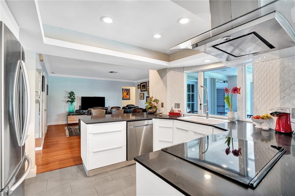4 bedroom 4 bath waterfront home in The Landings situated on an oversized corner lot. Updated kitchen features stainless steel appliances, white contemporary cabinetry and pantry. Big living space with separate family room. Wood flooring in main living areas and tile throughout bedrooms. Huge master suite with sitting area/office, walk-in closet and beautiful pool views. Private backyard features pool, lush landscaping, tranquil water views, and boatlift. Second driveway allows for ample parking.