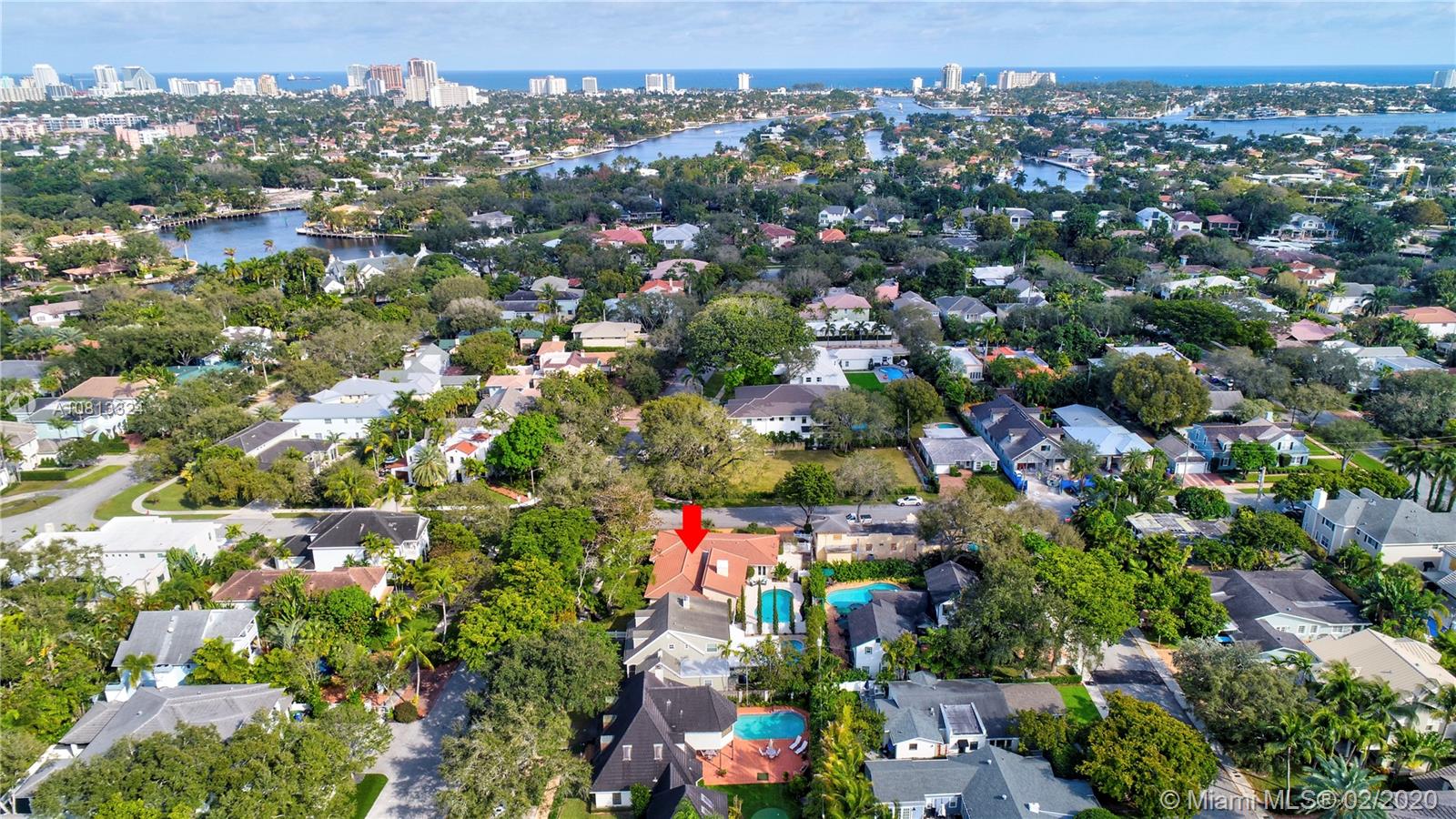 Spectacular non-conforming DOUBLE CORNER LOT, ONE STORY Split Floorplan Home in one of Fort Lauderdale's finest neighborhoods, Rio Vista! Lush Oak Canopy on extremely quiet street mins to Downtown. COMPLETELY UPDATED, including IMPACT WINDOWS, newer ROOF, beautiful master bathroom & new Irrigation System & Landscaping. Large private Master Wing w/ en-suite office / sitting room w/ wood floors & fireplace. Kitchen features quartz counters, top of the line Miele & Dacor Appliances & custom wood cabinets. Incredible Entertaining home w/ double french doors leading to expansive patio w/ party sized pool & side yard. Volume Ceilings, Bright Open Floorplan, flooded w/ light. Custom Closets & large oversized garage w/ additional built-ins. Fenced yard & Pool Baby Gate great for pets/playground.