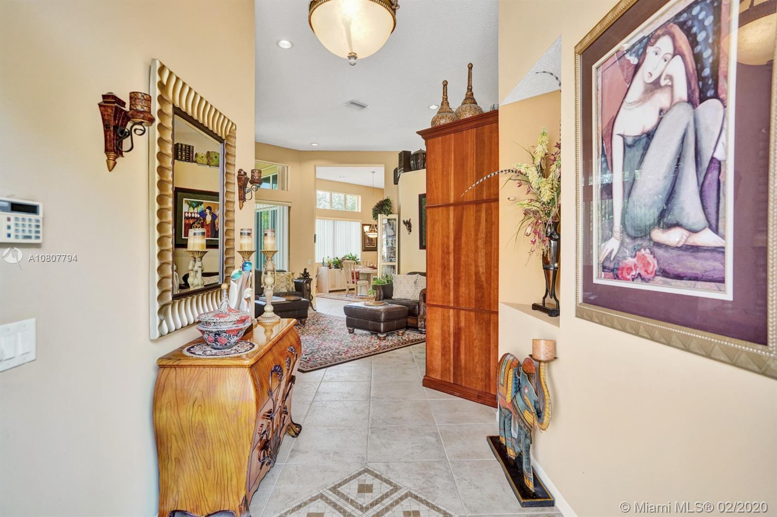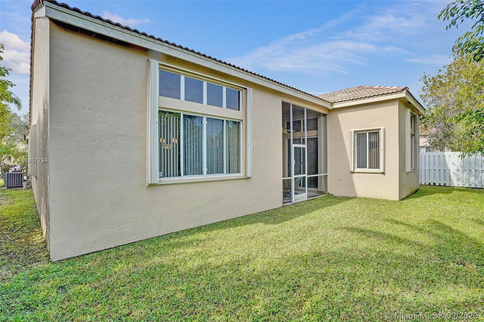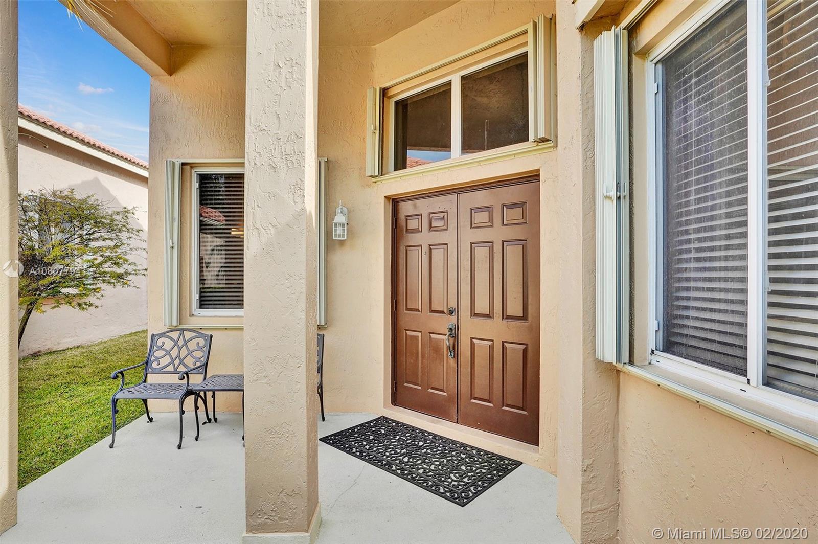 Pristine & beautifully maintained 3 Bed 2.5 Bath single story home w/covered patio (freshly pressure cleaned), located in desirable Camellia Island community. Home offers Spacious floor plan (see attached), with high ceilings & recessed lighting throughout. Open kitchen concept with breakfast bar & eat-in kitchen area meticulously maintained & clean. Master has large walk-in closets and spacious master bathroom including shower and tub. Other features include full accordion shutters, Brand new hot water heater, updated washer/dryer, updated AC, & more. Low quarterly HOA includes guard gate, securing community, Child play area, Basketball court, sand volleyball court. Close to Weston Town Center with restaurants, shopping & more. A+ schools! Seller is leaving home warranty as a bonus.