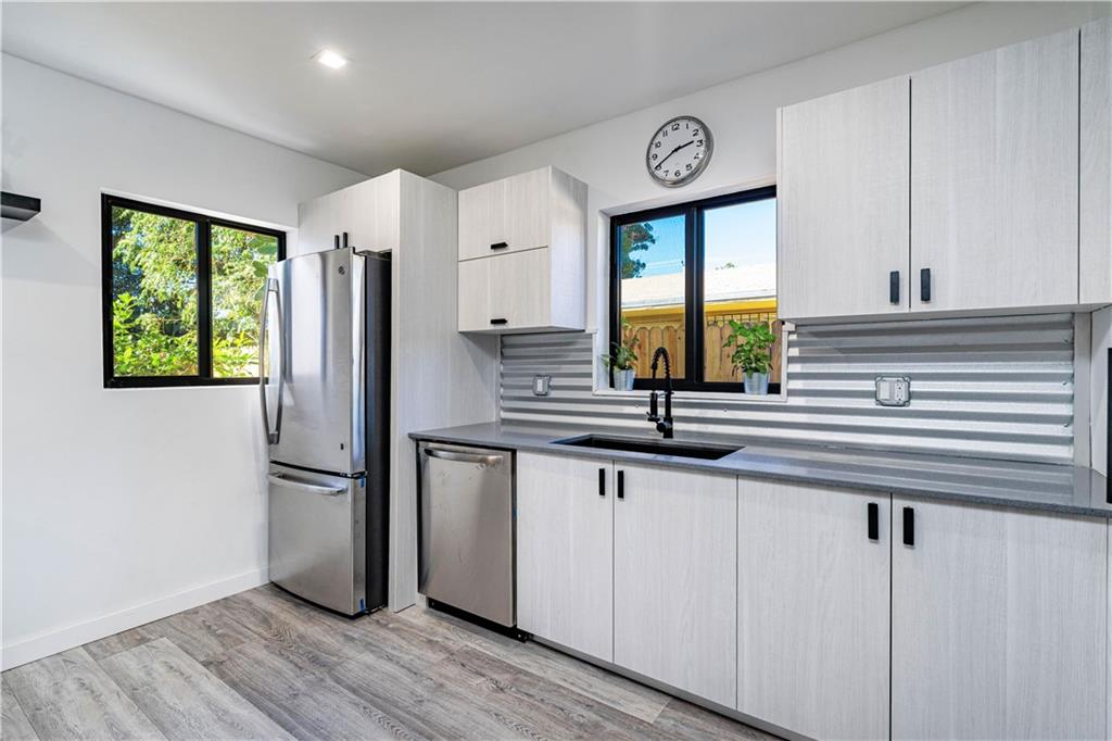 PROFESSIONALLY DESIGNED LARGE 2/2. INDUSTRIAL OPEN CONCEPT. HOME FULLY REMODELED WITH A NEW EUROPEAN KITCHEN CABINETS, QUARTZ COUNTERTOPS & NEW SS APPLIANCES. WATERPROOF AND PET FRIENDLY LAMINATE WOOD FLOORS THROUGHOUT THE HOUSE. NEW IMPACT WINDOWS, DOORS & SLIDING GLASS DOORS. LAUNDRY ROOM INSIDE WITH NEW WASHER AND DRYER. ROOF & CENTRAL A/C ARE ONLY 5 YEARS OLD. NEW BEDROOM DOORS, LARGE CLOSETS IN BOTH BEDROOMS PLUS LINEN CLOSET. BRAND NEW BATHROOM & REMODEL 2ND BATH. FRONT PORCH & BACK PATIO. HOUSE FRESHLY PAINTED INSIDE AND OUTSIDE. NEW ELECTRICAL PANEL. TANKLESS WATER HEATER. LED LIGHTING & DIMMERS IN BEDROOMS, KITCHEN AND LIVING ROOM. PLENTY OF PARKING SPACE PLUS THE CARPORT. LARGE FENCED BACK YARD. GREAT LOCATION CLOSE TO SHOPPING, RESTAURANTS, WILTON DRIVE & DOWNTOWN FT LAUDERDALE