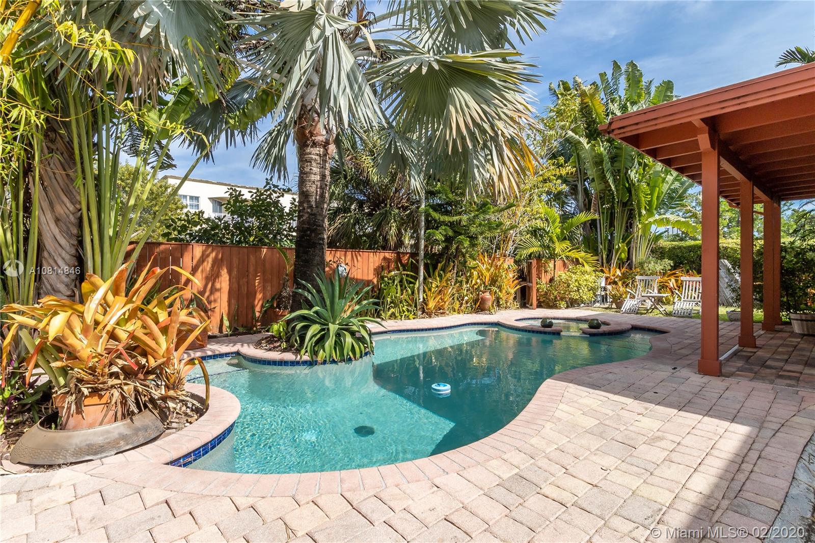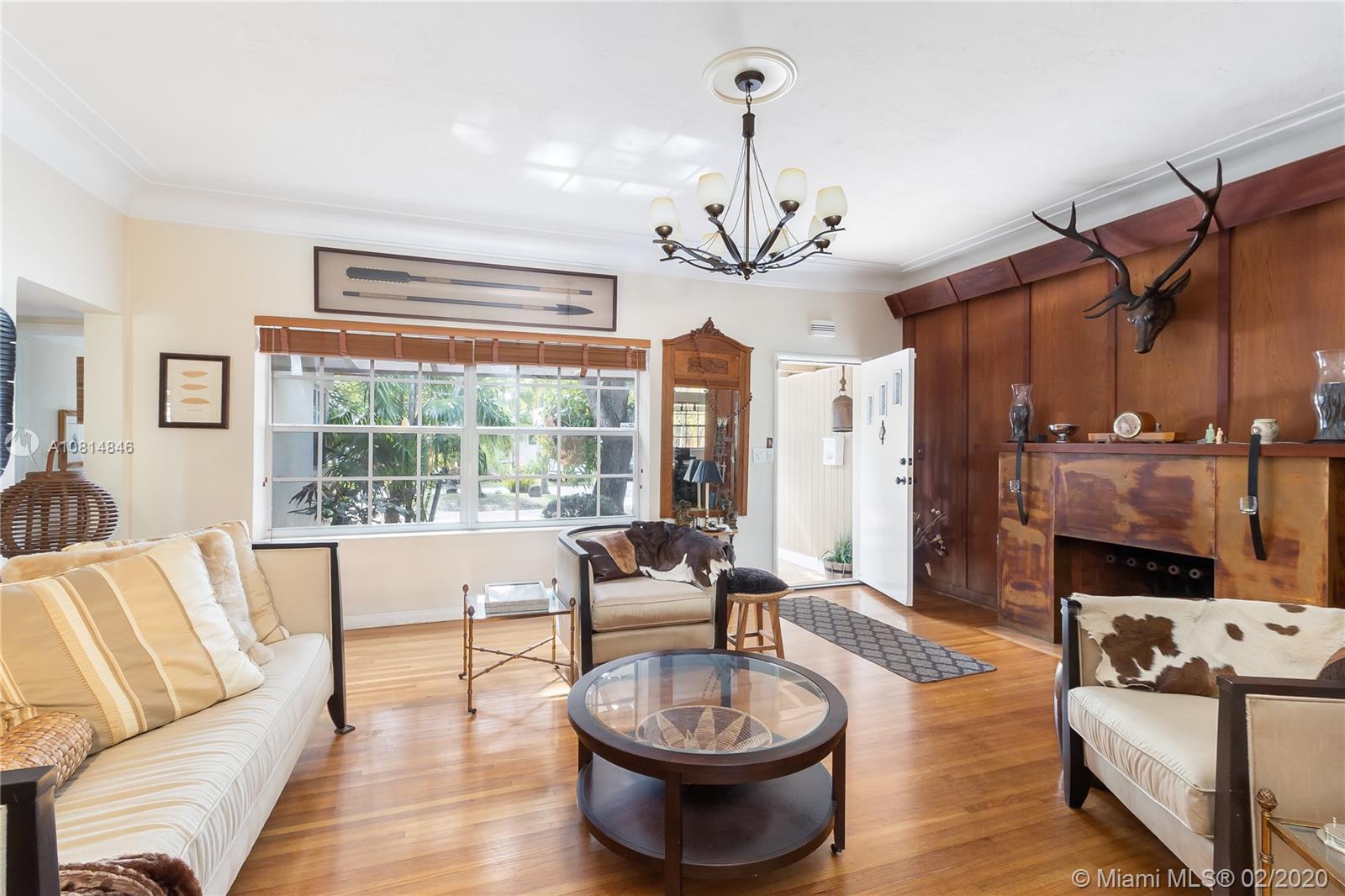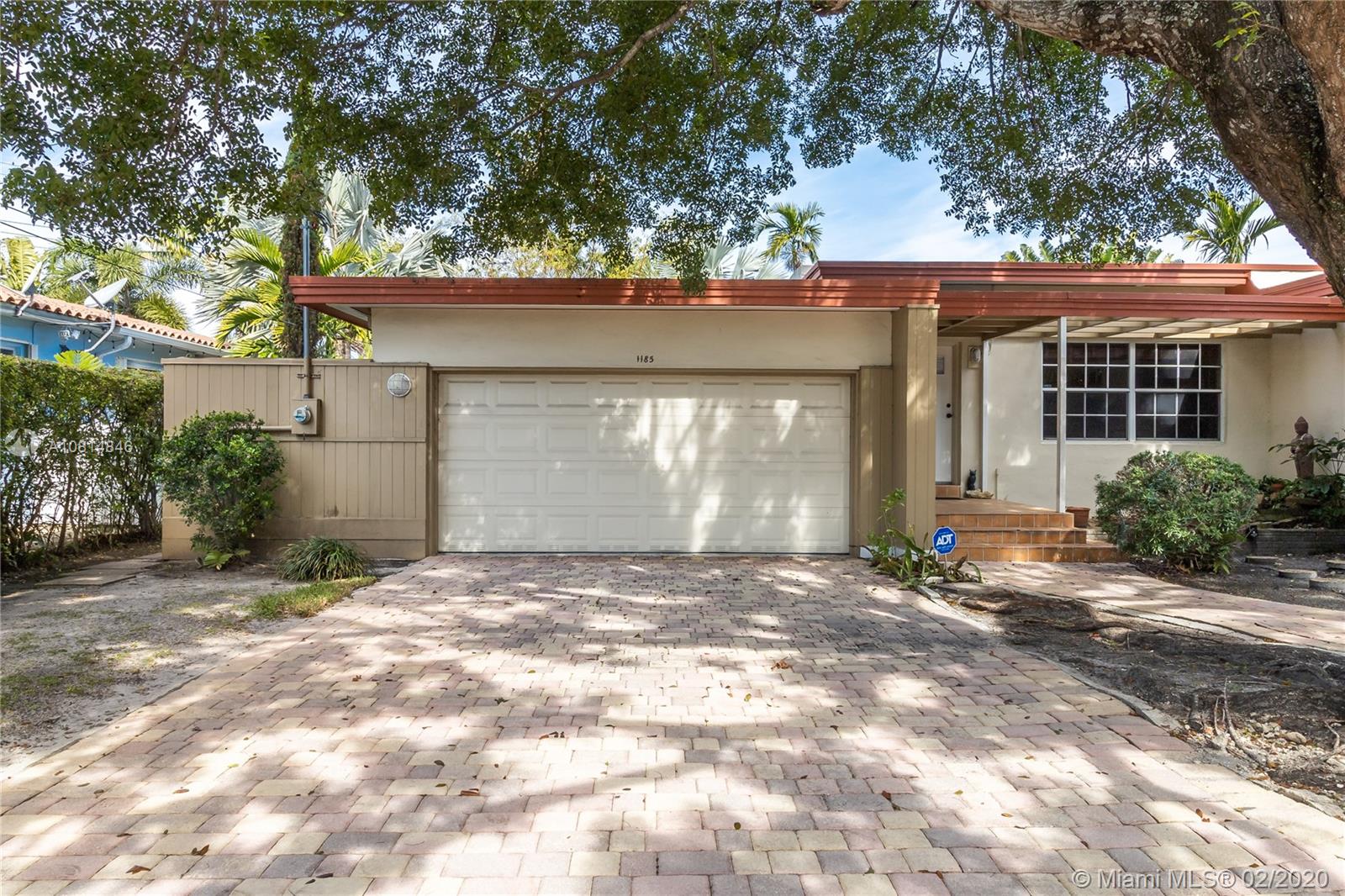 Miami Shores, mid-century 2/2 with a pool and 2 car garage. 75' on the canal with a dock and no fixed bridges and ocean access. Uniquely sited on the coral ridge, this home is at a high elevation with on a corner of the lot being in a flood zone. The house itself is in zone x500. The living room, which features a beautiful fireplace and original wood floors, leads directly to a spacious den that open out to a lovely covered patio area which adjoins the lush pool/spa area, then down a flight of stairs to your own 75' dock. This is the best of all worlds; a house with low risk of flooding located on a canal with easy ocean access-a boater dream. Come have a look!