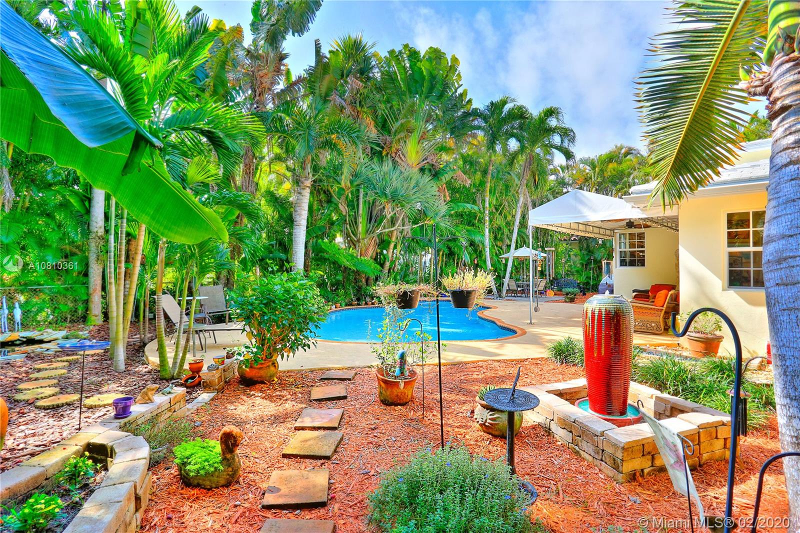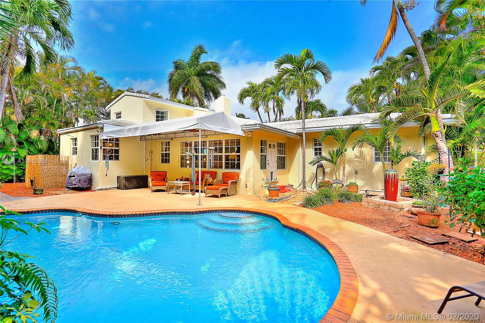 In the heart of Coral Gables lies this beautiful two-story three-bedroom, two-full bathroom home with a pool on a luscious 10,500 sq ft lot surrounded by palm trees designed by the first female architect in greater Miami, Marion Manley. Special features: original hardwood floors, updated kitchen with s/s appliances and granite countertops, separate laundry room, dining room, all impact windows, one-car garage and a working fireplace in the living room. Two bedrooms and a modern updated bathroom on the first level are split from the rest of the home. The spiral staircase takes you to a private bedroom with plenty of windows and a second bathroom. Florida room feels it is part of its lovely spacious backyard. Lots of light, a patio, fishpond, gardens, all great for relaxing and entertaining.
