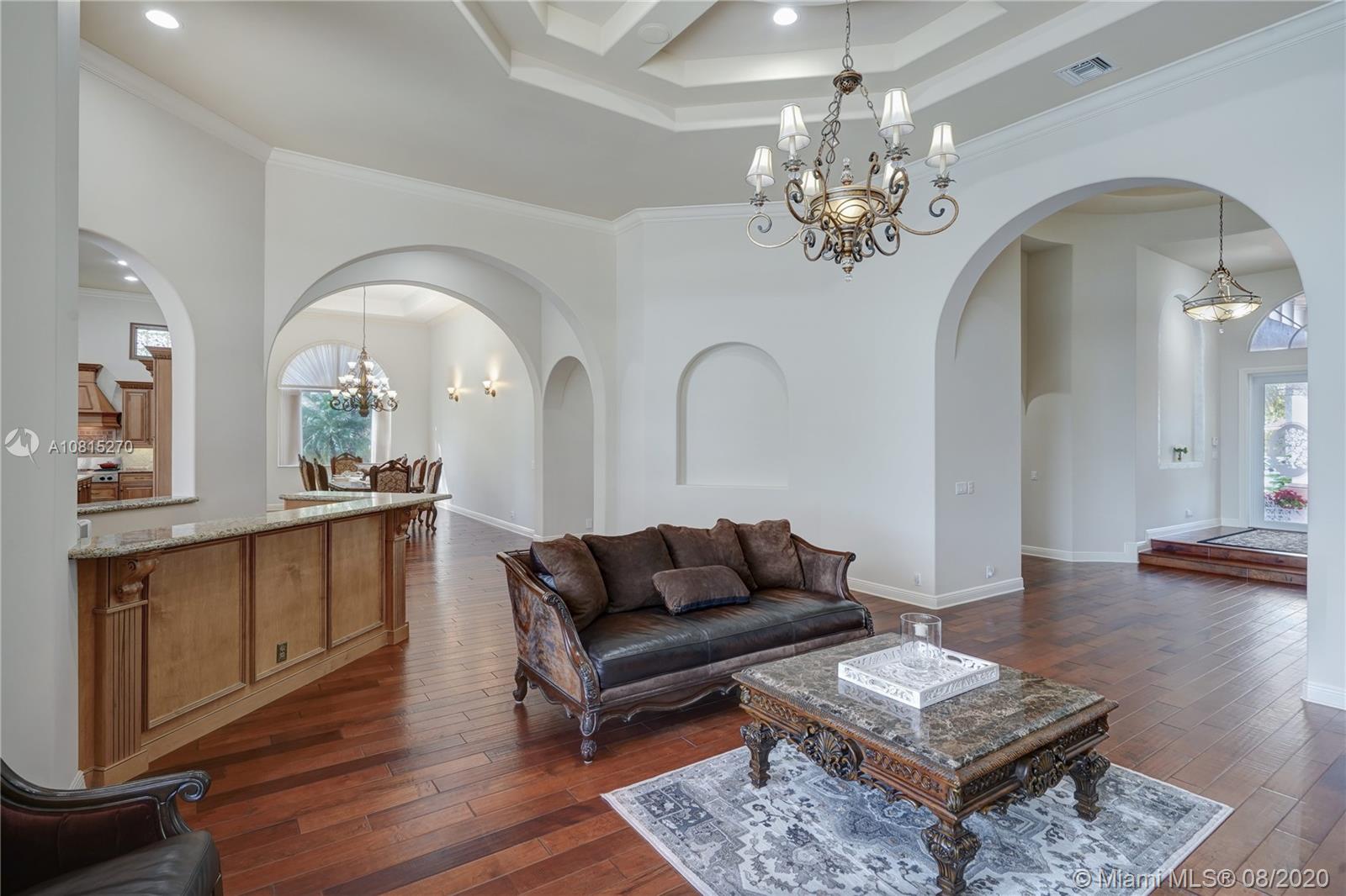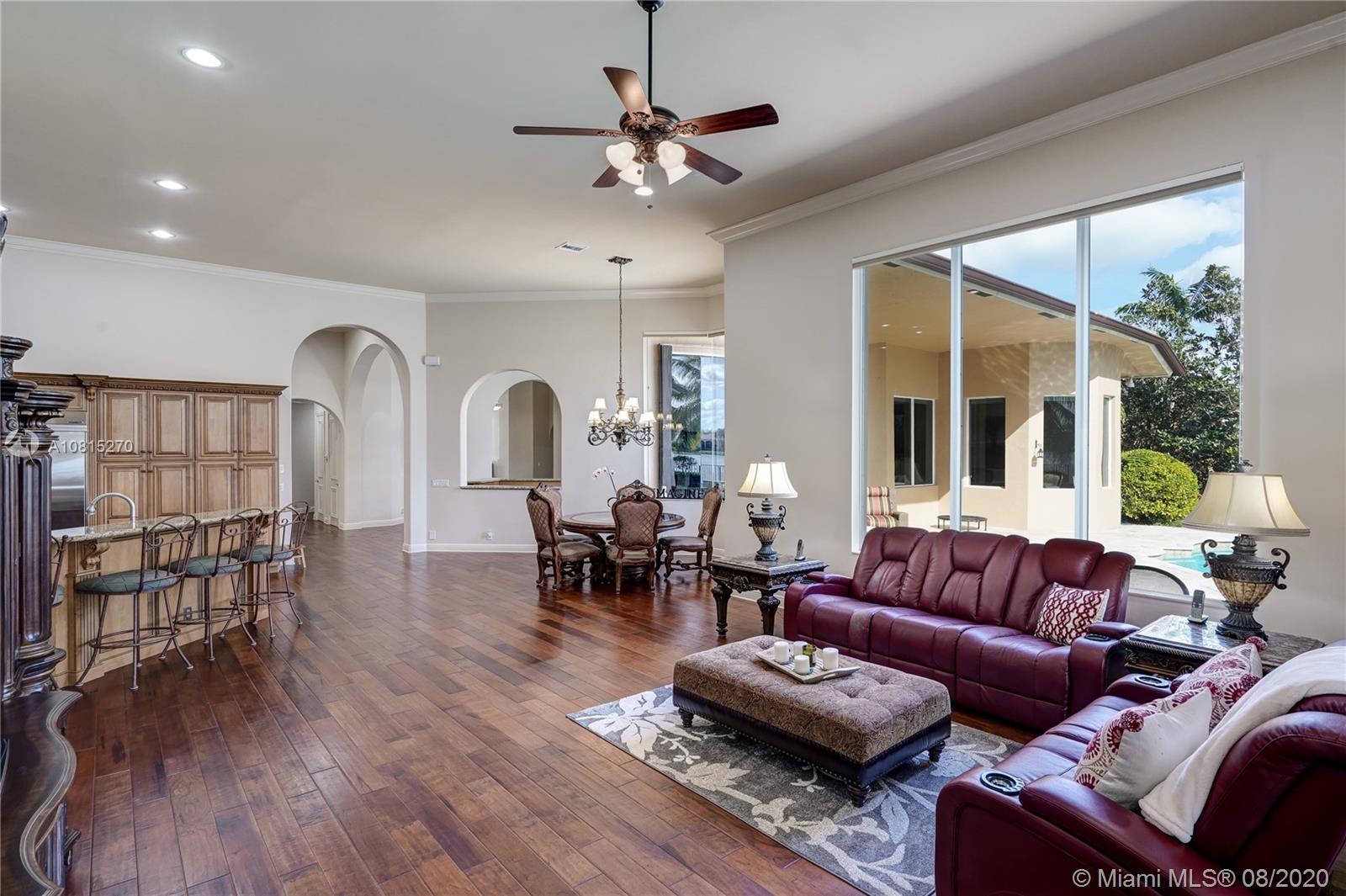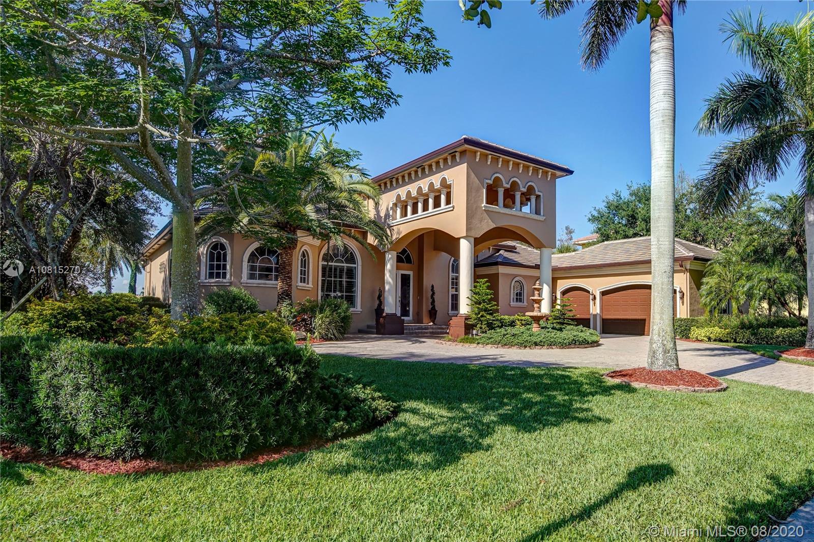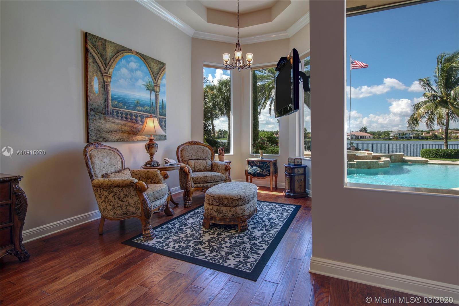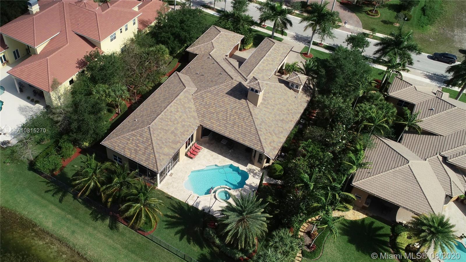 Elegant lakefront residence located in the exclusive community of Windmill Reserve! This custom home has it all! Grand porte cochere entrance with circular driveway, 5 bedrooms, 5 1/2 baths PLUS office and home theater, fantastic open floor plan with wood and marble floors, gorgeous views from every room, formal living room with gas fireplace, wet bar and wine cooler, impressive formal dining room, gourmet kitchen with gas stove and top-of-the-line appliances, all together with a spacious master wing with sitting area and luxurious bath. Enjoy the serene outdoor area with screened-in patio, newly refinished resort style pool with spa, and fenced private backyard - all with expansive lake views! Hurricane impact windows throughout and accordion shutters on bay windows. New roof!