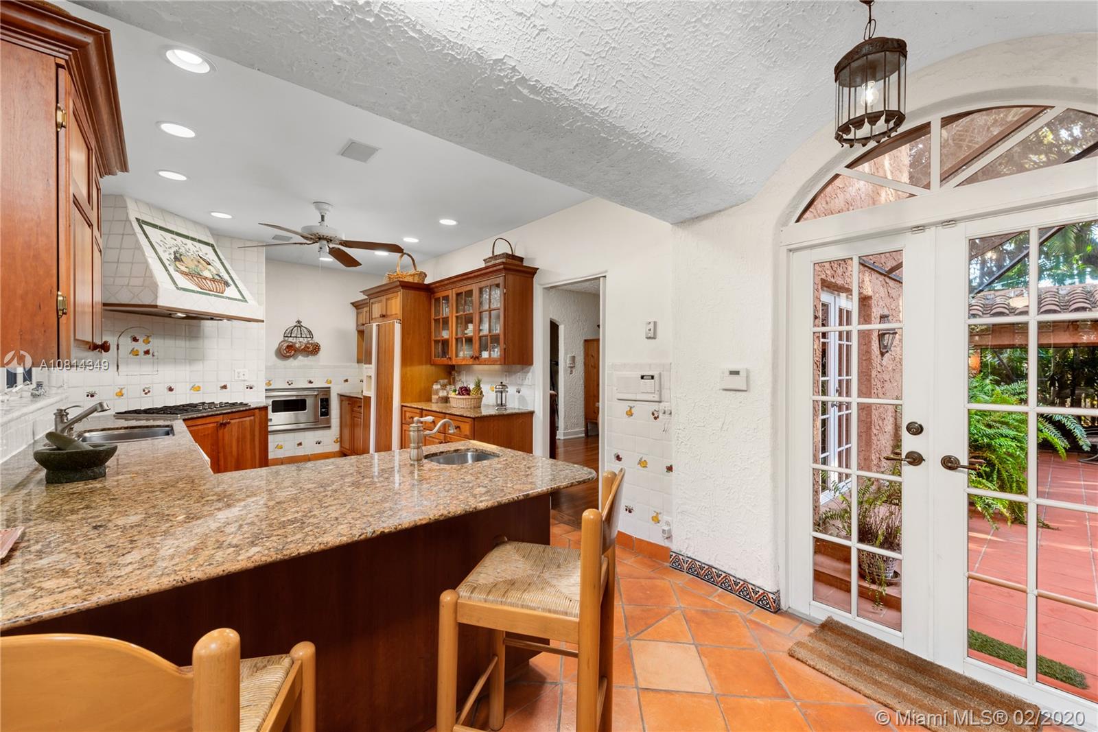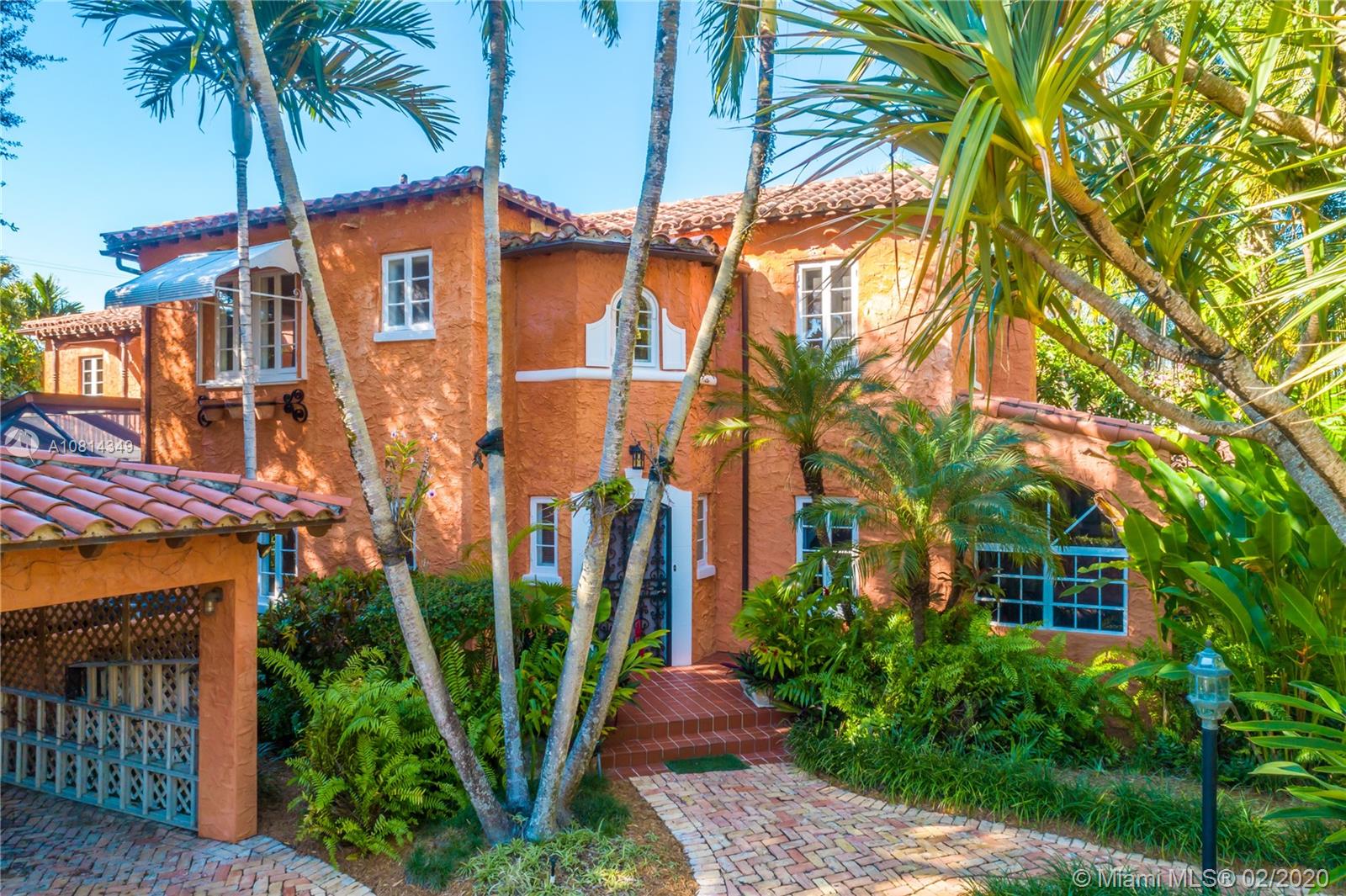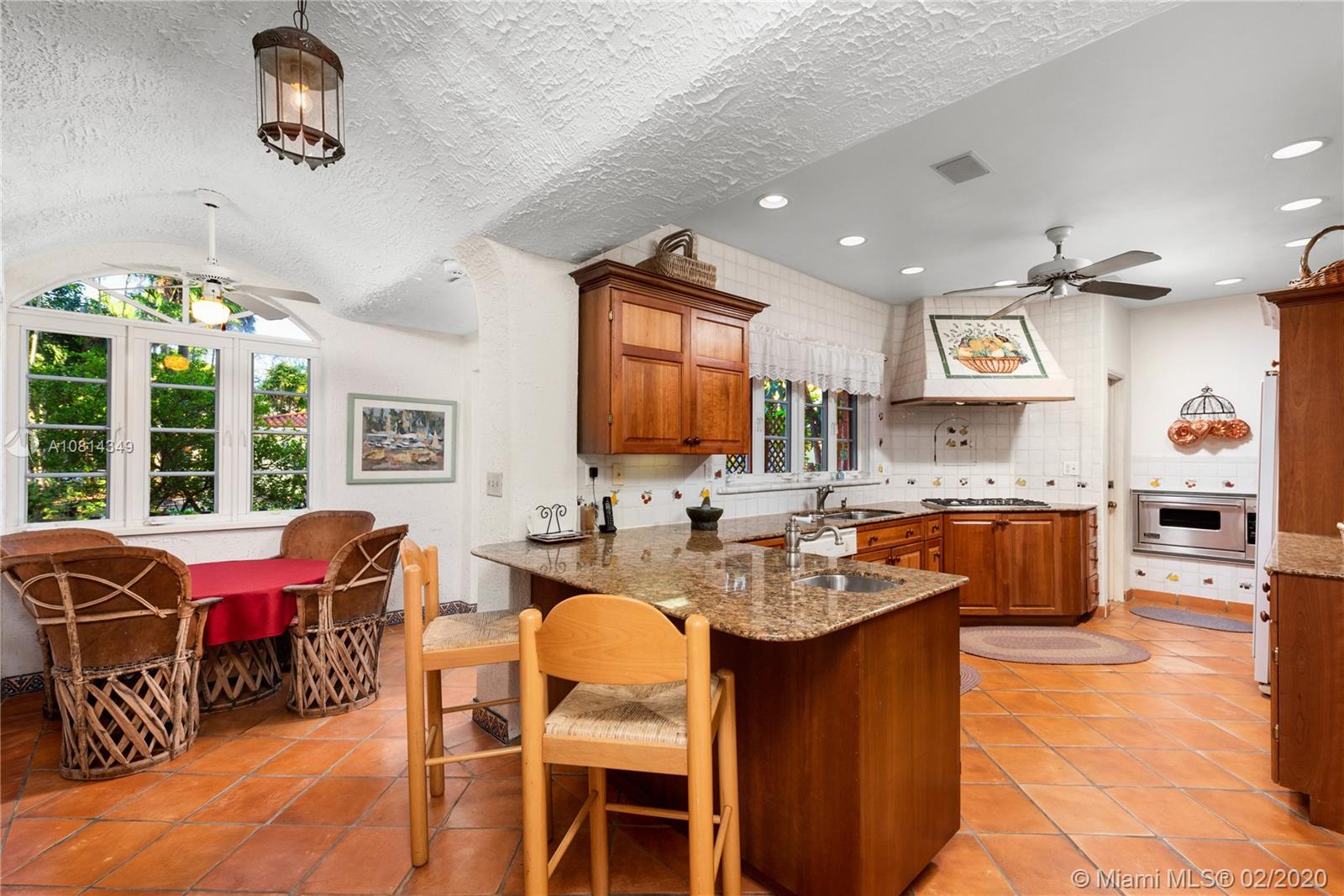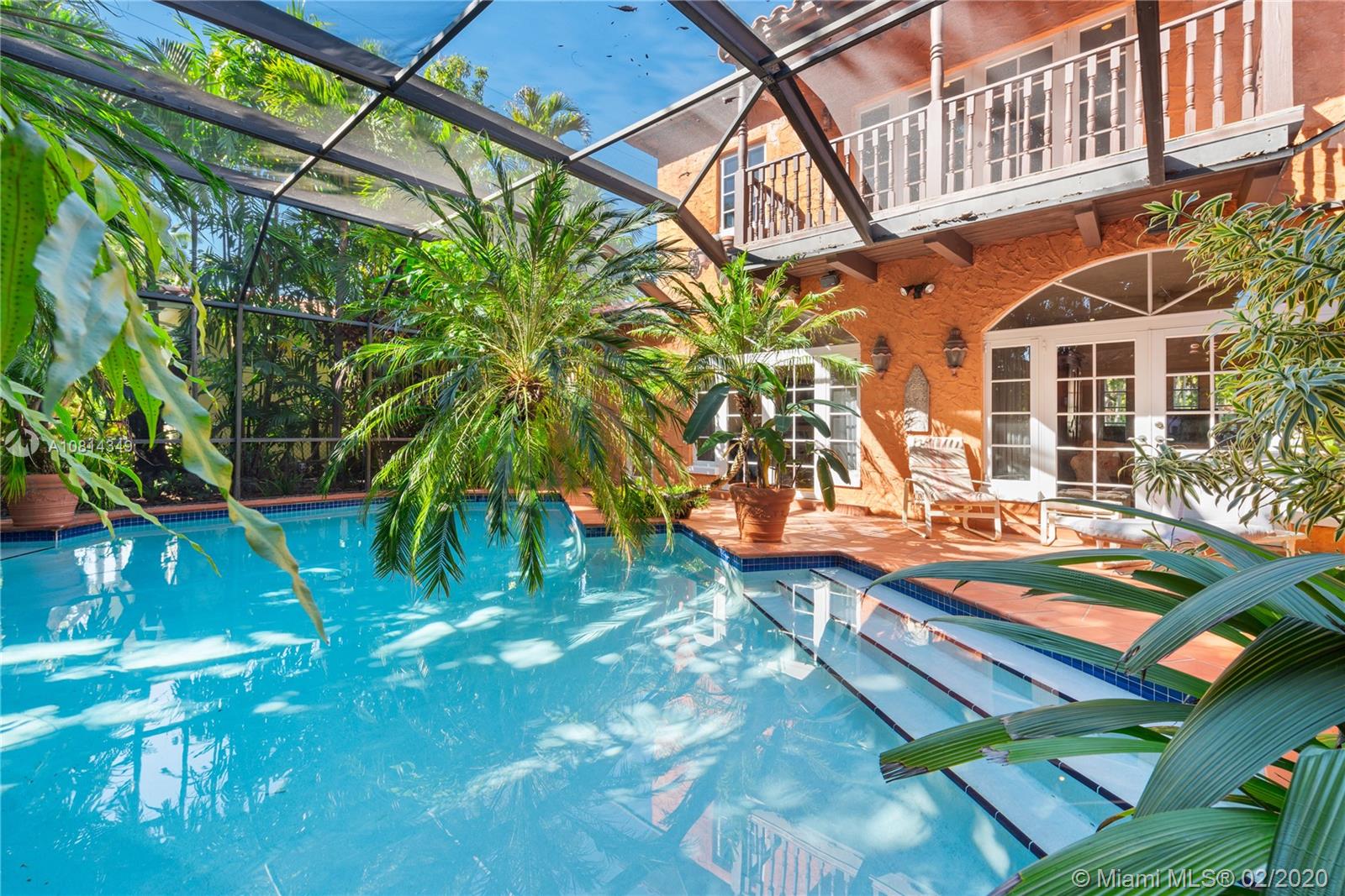 Historic 1926 Old Spanish residence in desirable Italian Village. Beautifully remodeled, this 4 bed/4.5 bath home preserves original Mediterranean style in every detail. From a storybook front garden, the grand foyer leads into the living rm with coral rock fireplace & adjoining sunroom overlooking 1st of 2 fountains. Gourmet kitchen includes high-end appliances, granite counters and custom cherry cabinetry. Entertainer’s dream w/ French doors from dining rm, family rm, and guest bedrm to large screened pool. Spacious upstairs has 3 beds/3 baths. Impressive master bedrm includes library, laundry rm, balcony & walk-in closets. The house is fully walled with automatic iron pedestrian & driveway gates, lush landscaping, 2 fountains, Old Chicago brick, carport, auto sprinkler and utility room.