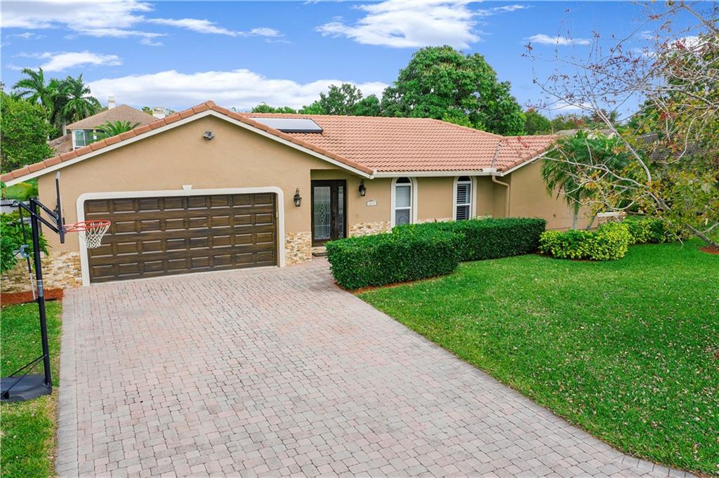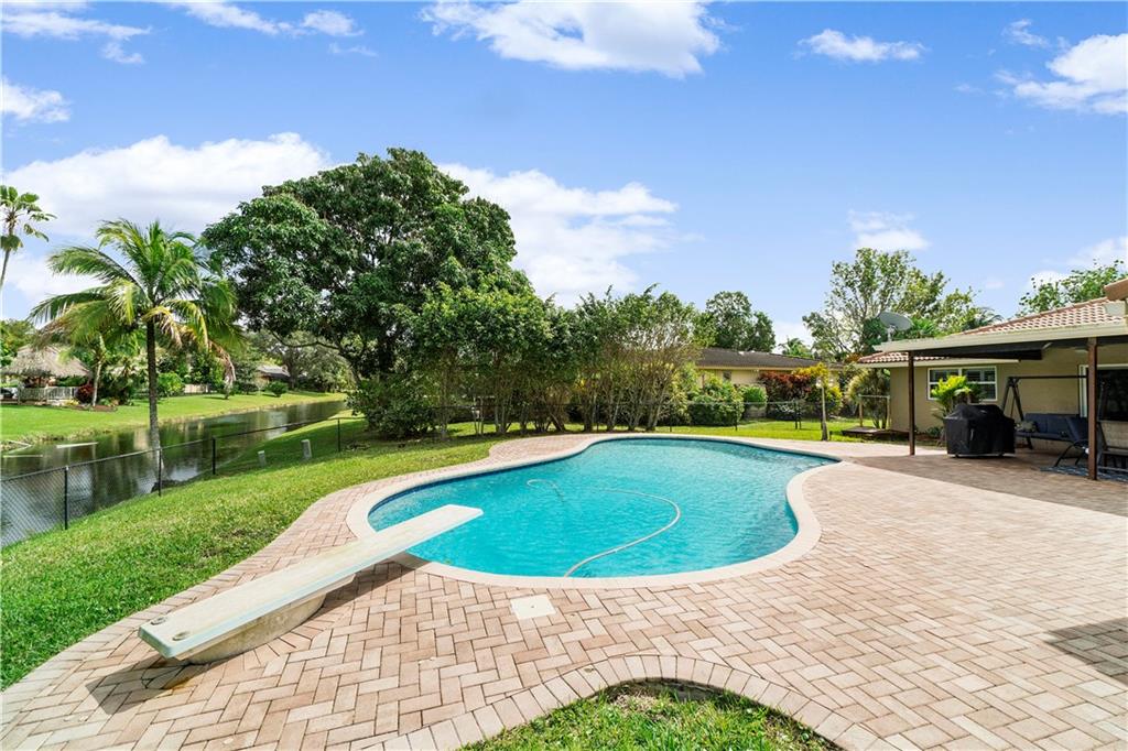 ***NO HOA*** HURRICANE IMPACT WINDOWS/DOORS THROUGHOUT! This perfect 4 bedroom turn-key waterfront home on a huge oversized lot is fully updated with a newer roof, impact garage door on a fully fenced lot. The pool is a rare 9 feet deep 30,000 gallon heated salt water pool with a diving board. Other updates include: wood kitchen cabinets with pullouts, stone countertops and stainless steel appliances, newer ac, washer/dryer, paver driveway and oversized paver pool deck, interior flooring, exterior and interior paint, updated master bathroom and the cabana bathroom with a jet tub, custom fitted closets in all bedrooms, plantation shutters and much more.