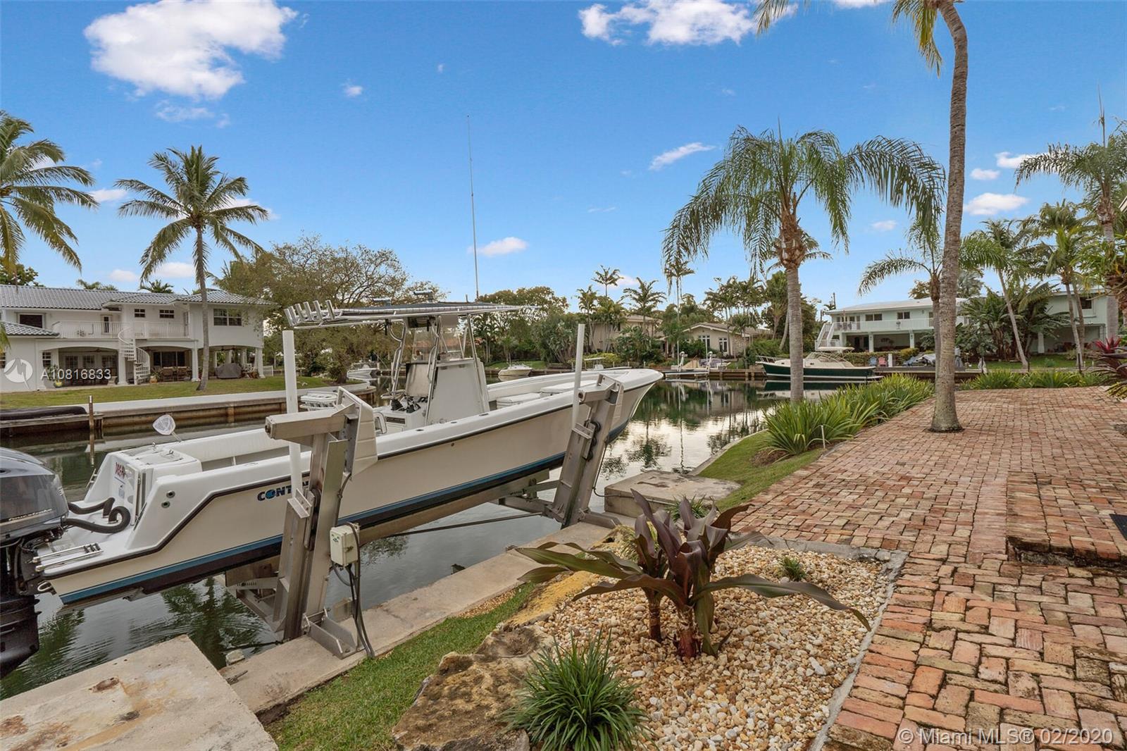 Gables By The Sea point lot waterfront home with Ocean access. Four bedrooms, three full baths. Close to 200 feet of water frontage. New dock with composite decking. New 14,000 lbs lift. New roof in 2016. Wrap around patio with amazing view of the water on both sides. 3 bedrooms & 3 full baths on the main floor. Large bedroom with 180 degree water views on the top floor which is used as an office and hobby room. Complete wind storm protection. Oversized 2 car garage with storage. Formal dining room. Eat in kitchen. Three zoned A/C. Nice size pool with Chicago bricked patio. This home is located at the end of a Cul-De-Sac in guard gated community. Living spaces are 12+ feet above sea level.