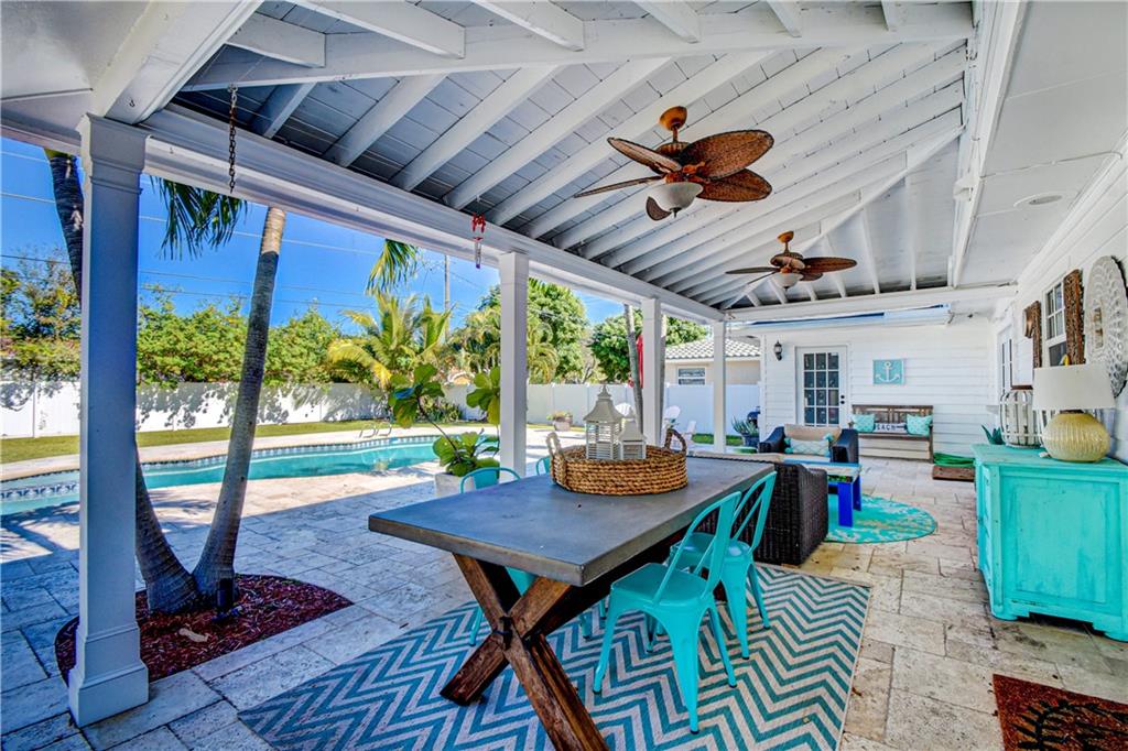 Completely updated 5 bedroom 3.5 bath pool home with a 2 car garage located one block to Pine Breeze Park and in the Addison Mizner school district. Spacious floor plan with a large living room, beautiful family room with wood beam ceiling and fireplace. Hurricane impact windows thru out and a gorgeous backyard perfect for outdoor living. All 3.5 bathrooms were just completely redone and second story has new wood flooring. Large master suite with walk in closet. The back yard features a large patio, pool, tiki hut, and an oversized backyard. One bedroom and full bath located on first floor.