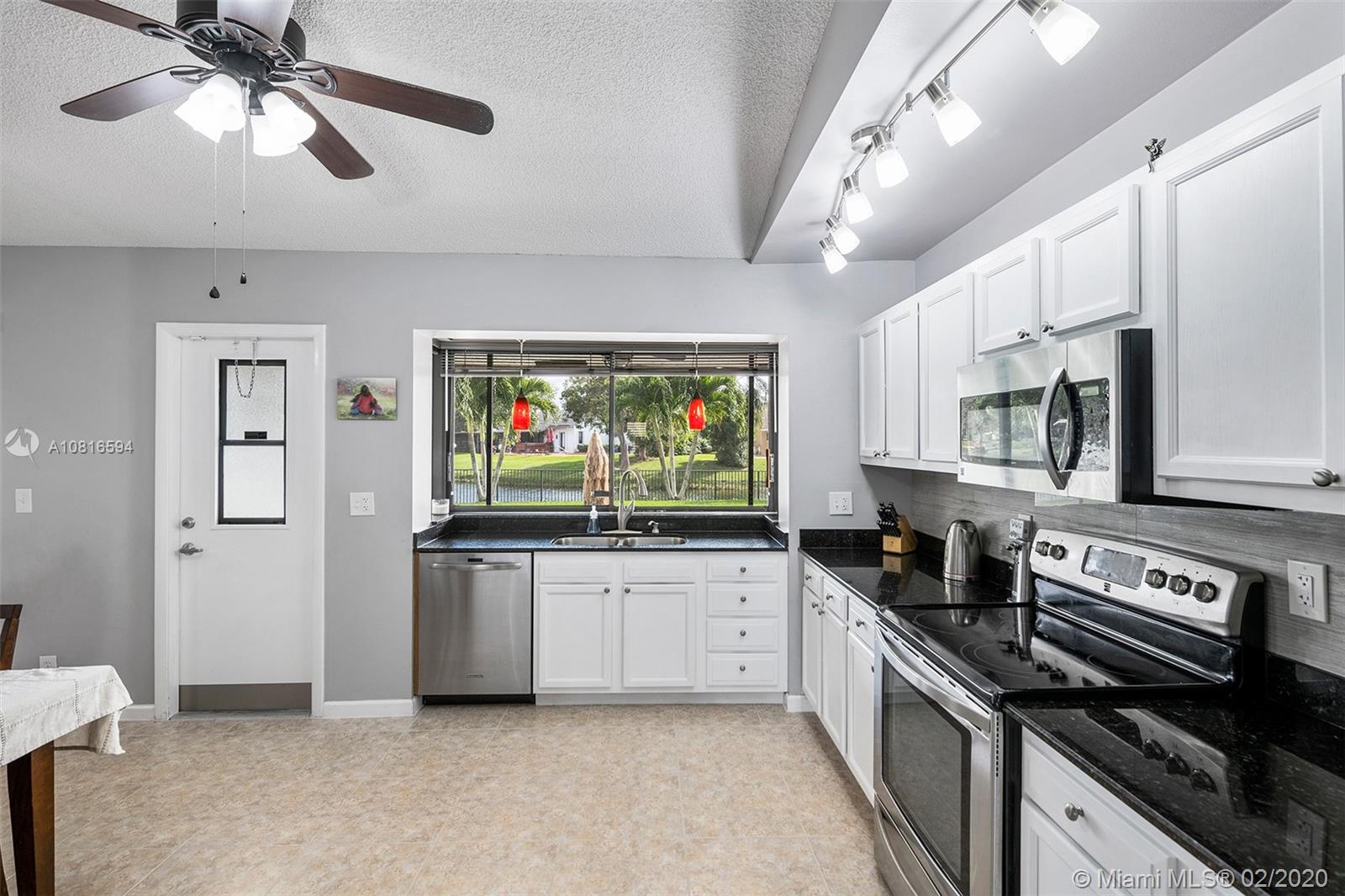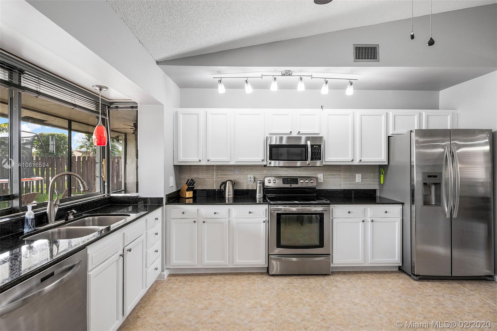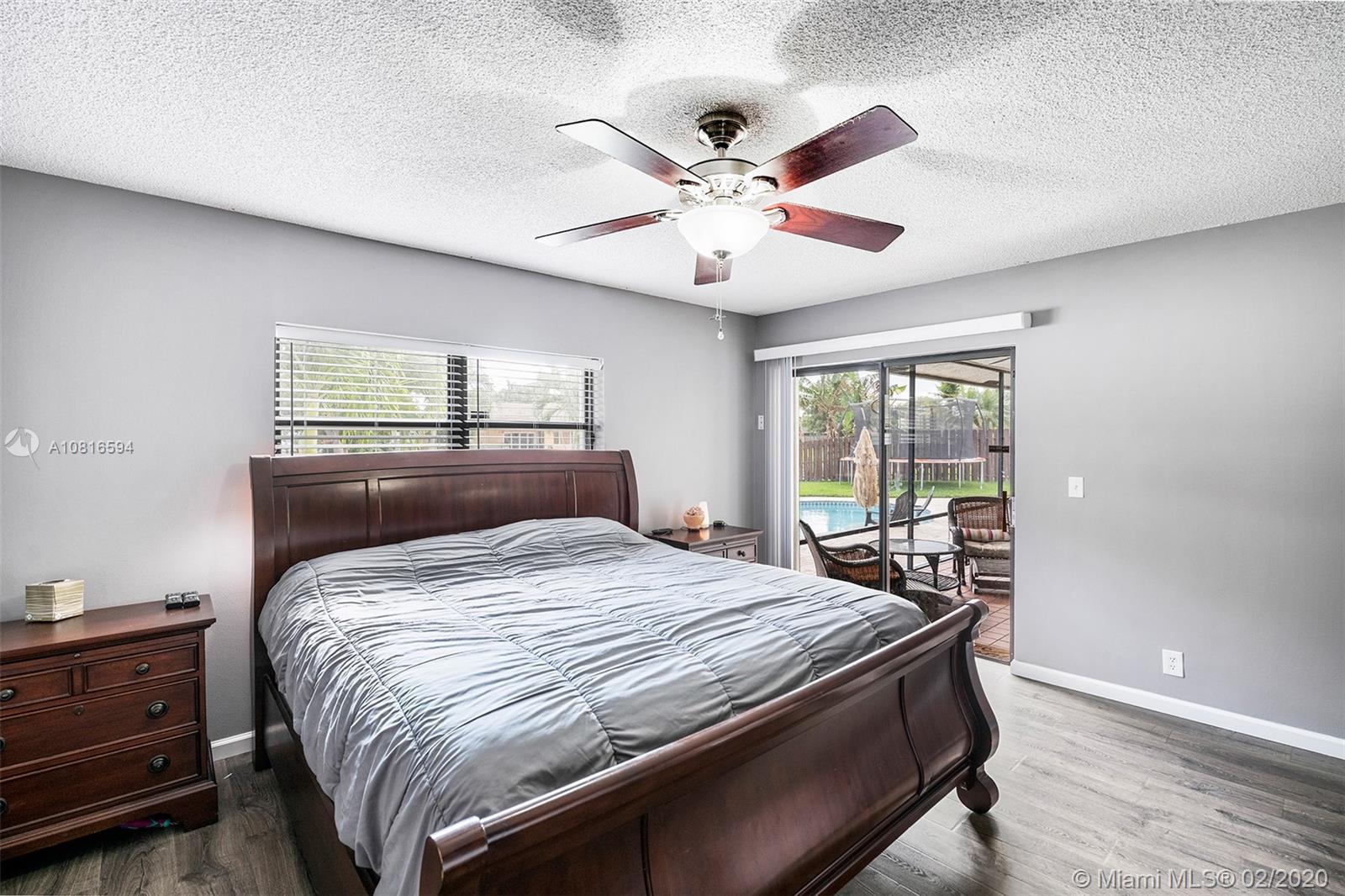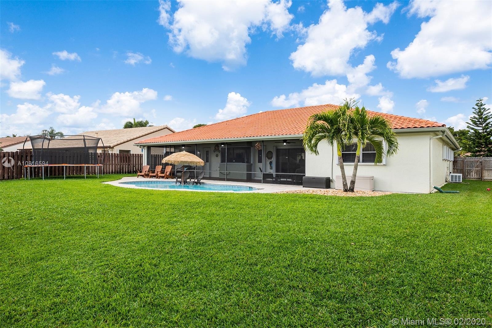 Bring the family home, look no further! Triple split 4 bedroom 3.5 bath pool home in Davie’s quiet & friendly Falcon’s Lea neighborhood. Spacious living areas with vaulted ceilings. Neutral tile in living areas, engineered wood in all the bedrooms. Freshly painted throughout with new interior doors. Granite counters & SS appliances in kitchen with open pass through to screened patio. Lovely open, wide views of the lake with fully fenced tropical yard and salt water pool (2015). Accordion shutters & storm rated garage door. Dual A/C 2015/2008. Updated secondary bathrooms. Large master suite with huge walk-in closet, dual sinks and large walk-in shower. Great location!