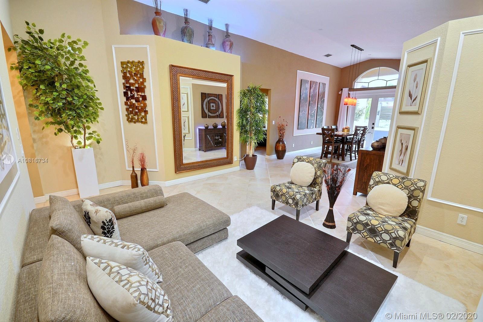 ABSOLUTELY GORGEOUS 4 BED, 3 FULL BATH HOME IN THE HIGHLY DESIRABLE GATED COMMUNITY OF VIZCAYA. WELCOMING FOYER LEADS INTO THE SPACIOUS GREAT ROOM COMPLETE WITH RECESSED LIGHTING AND VAULTED CEILINGS. FORMAL DINING OFFERS ACCESS TO THE PRIVATE BACKYARD COMPLETE WITH THE MOST BEAUTIFUL PERGOLA AND PATIO. SPACIOUS KITCHEN OFFERS UPDATED CABINETRY, STAINLESS STEEL APPLIANCES, COUNTER SEATING AND WINE STORAGE. HUGE MASTER SUITE WITH TRAY CEILING DETAIL. MASTER BATH WITH DOUBLE VANITY AND SEPARATE TUB AND SHOWER. MANNED GATED COMMUNITY OFFERS A LOVELY POOL AND GYM.