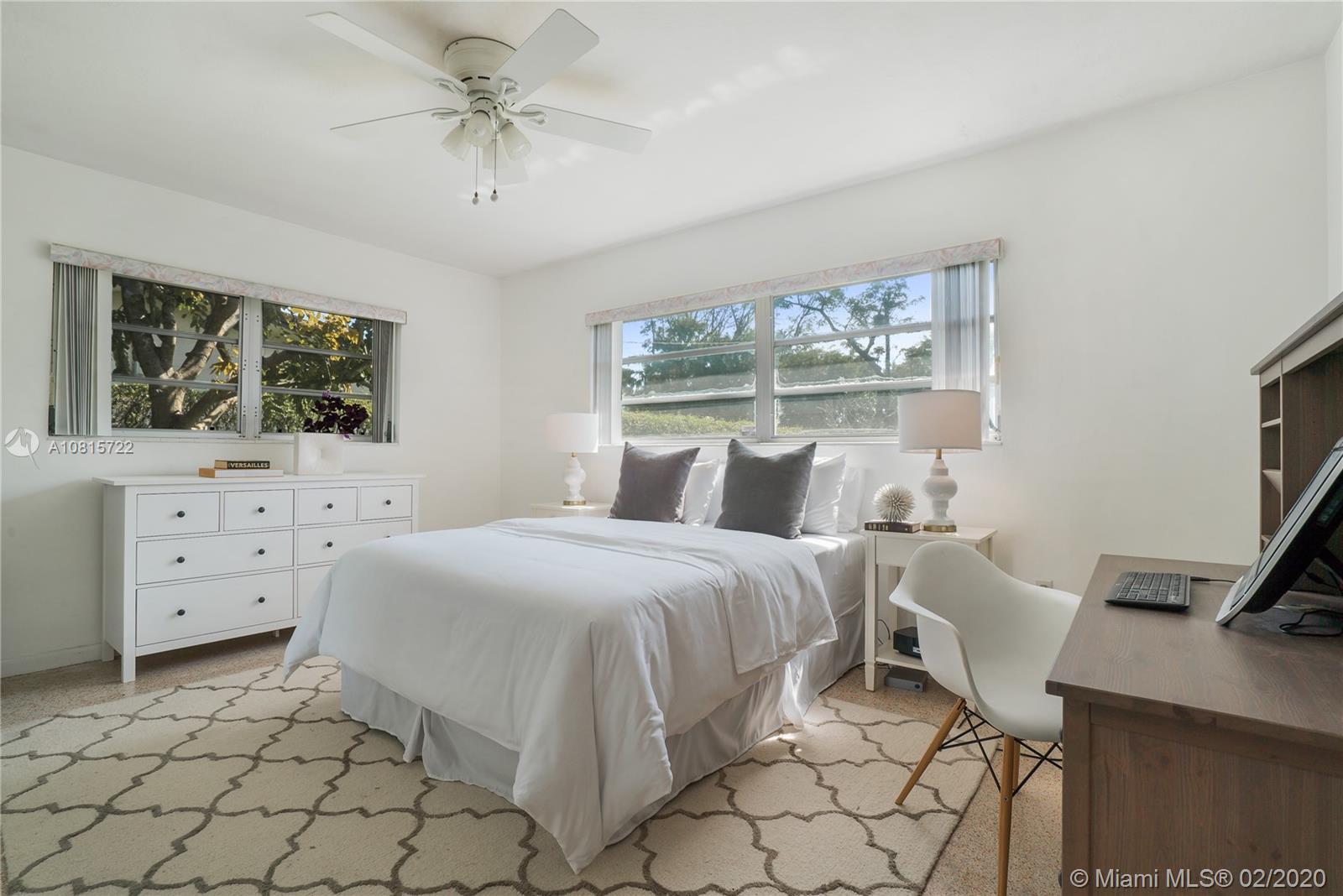 Charming 3/2 pool home with spacious 2-car garage. It is located on a quiet street yet close to a bus stop, schools, shops, restaurants and several parks. The living and the kitchen/family rooms open to a covered outside area and screened in pool deck for great entertainment flow. This house has many updates but waiting for new owner to put personal touch on master bathroom. Living areas have laminate floors, new tile in kitchen and terrazzo floors in bedroom wing (some damage from carpet removal).