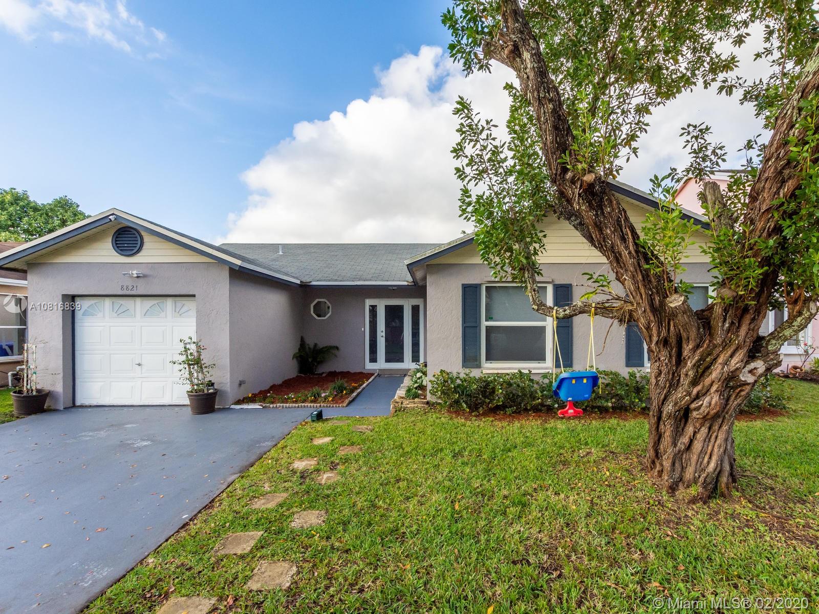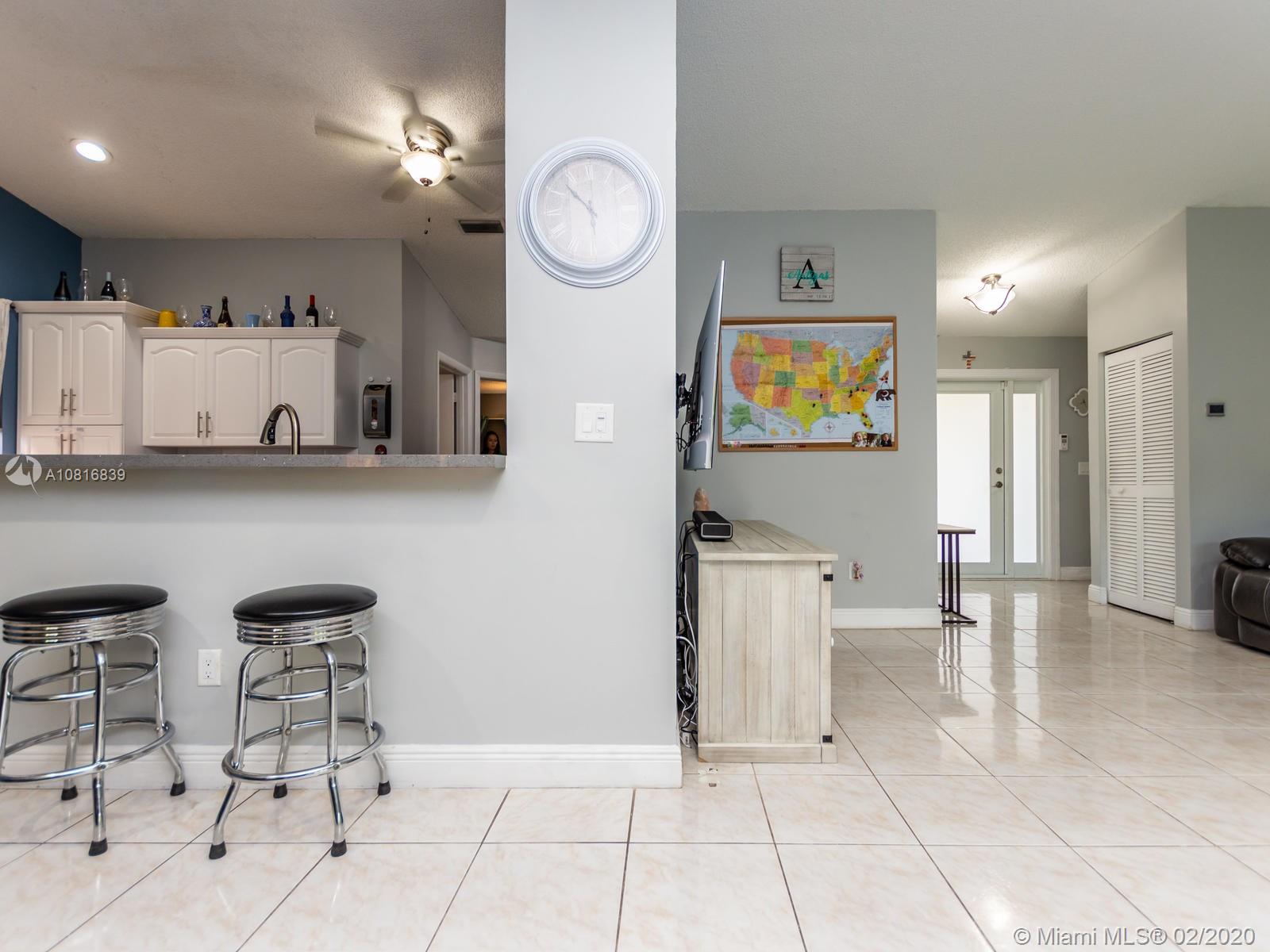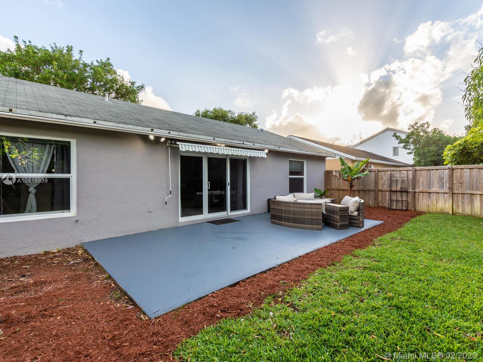 3/2 in a quiet community, with many upgrades! Remodeled kitchen with beautiful quartz countertops and new stainless steel appliances, hurricane impact windows and doors, new A/C with Honeywell SMART Thermostat, large laundry room with new washer and dryer, bathroom sinks and cabinets updated, and converted garage with A/C that could be used as an office, gym, workshop, or game room. Tankless water heater and attic is insulated. Outside there is 10 ft retractable awning, new fence, and wooden swing set that will stay with the home. New sprinkler system and well pump, as well as fruit trees; aachee, mango, and banana, and pineapple. Room for a pool!