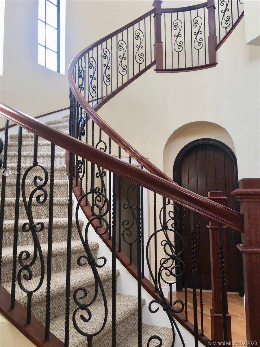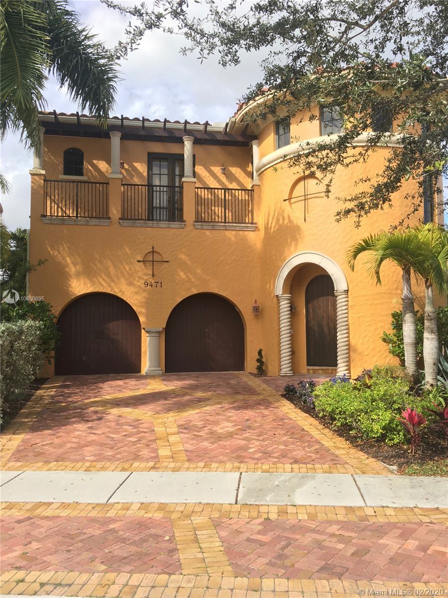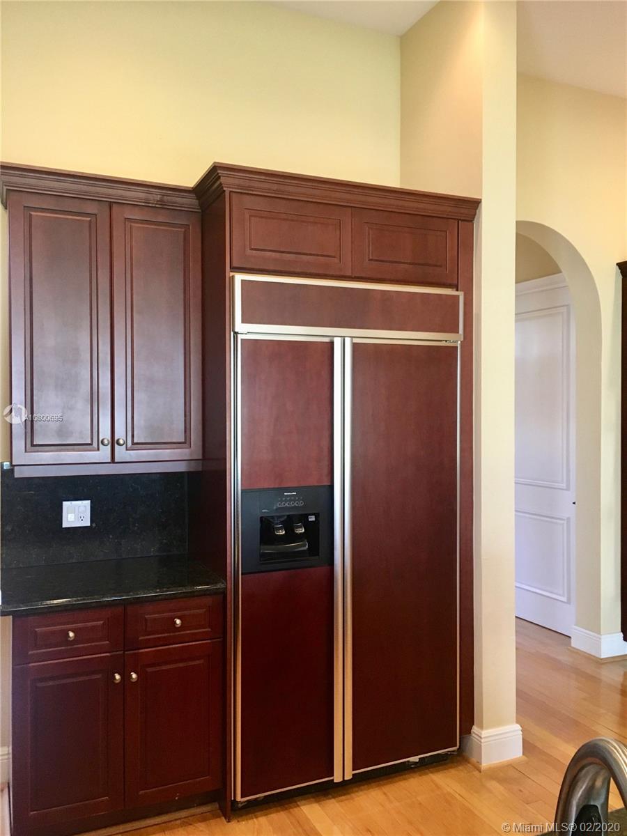 This stately Italian Provincial style home sits on a beautifully treed golf course lot.The rarely available model includes an extended ground floor mstr suite w/ French doors lining the entire back of the home, ground floor genuine Maple hard wood, builder's select Kitchenaid appliance package with 42" cherry wood cabinets, custom panel refrigerator, built in stove pot filler and lush granite counters.Luxurious mstr bath has marble flooring and shower walls, separate sink areas, his and her shower heads and Jacuzzi tub. Custom wrought iron and mahogany balustrade leads upstairs to two addt'l bedrooms-one with French doors leading onto a private balcony.Freshly painted interior w/2 new smart thermostats for maximum energy efficiency. Hurricane impact glass and doors throughout.
