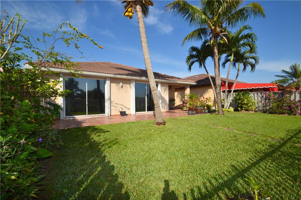 Beautiful canal front home with circular driveway in the quiet Spanish Lakes Neighborhood... featuring three bedrooms, 2 baths, family room and covered patio. Meticulously well maintained and cared for. Garage converted but can easily be converted back. Low HOA fees. Very centrally located close to major highways and shopping areas.