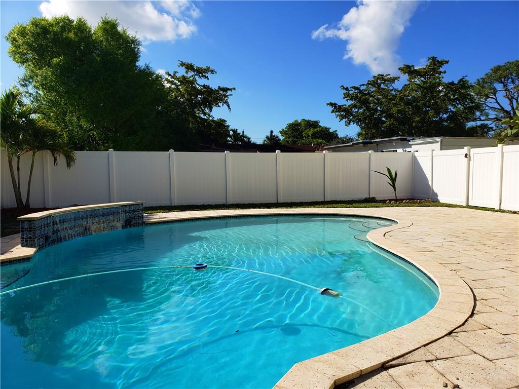 3/3 pool home on end street directly in front of park on over 1/4 acre and 1816 sqf of living space. Hurricane accordion shutters, roof redone in 2018, recently painted exterior & drive way, plenty of parking, no hoa. Pool features water fall and paved deck and is saltwater ready. Back yard fully fenced with new vinyl fence and extra shed for storage. Interior has 3 bedrooms & 3 full bathrooms fully tiled, all rooms are spacious. wood floors in living room, separate large entertainment / living room with high ceilings. spacious kitchen, nook & dining areas. Full size washer & dryer. Home being on an end street does not have traffic flowing thru giving you plenty of additional parking. Park is 10 ft across the home.