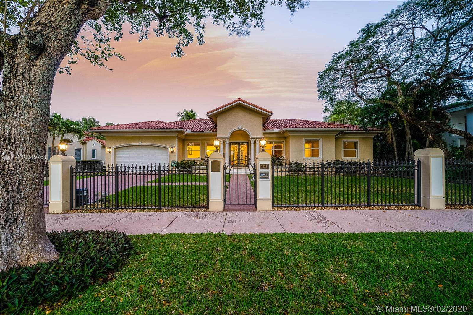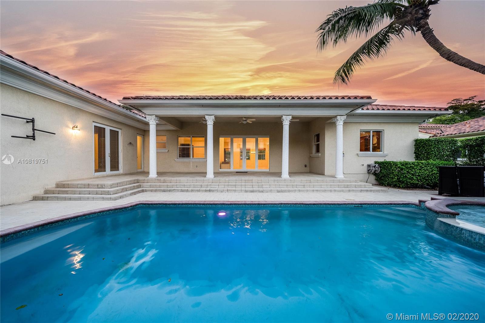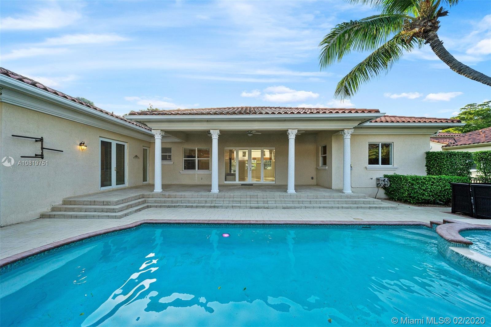 Gated & fenced, 4 bdrm + office/den, 4 bath Mediterranean beauty on a quiet street in prestigious, North Coral Gables. Built in 2005. Wonderful natural light, high ceilings, recessed lighting & crown molding. Marble flooring in living areas, wood flooring in bdrms. Grand living rm and dining rm. Fantastic family rm open to kitchen, overlooking the pool & backyard. Lovely kitchen has granite countertops, wood cabinetry, gas stove, double oven, eat in snack bar. Impact windows and doors. Indoor laundry room. 2 car garage. Great backyard with covered patio, pool/spa, whole home generator and grassy space. Close to Granada Golf Course, downtown Coral Gables and a short drive to the airport. Visit https://my.matterport.com/show/?m=bnLeHdZBg1Y&brand=0 to view the virtual floor plan & tour.