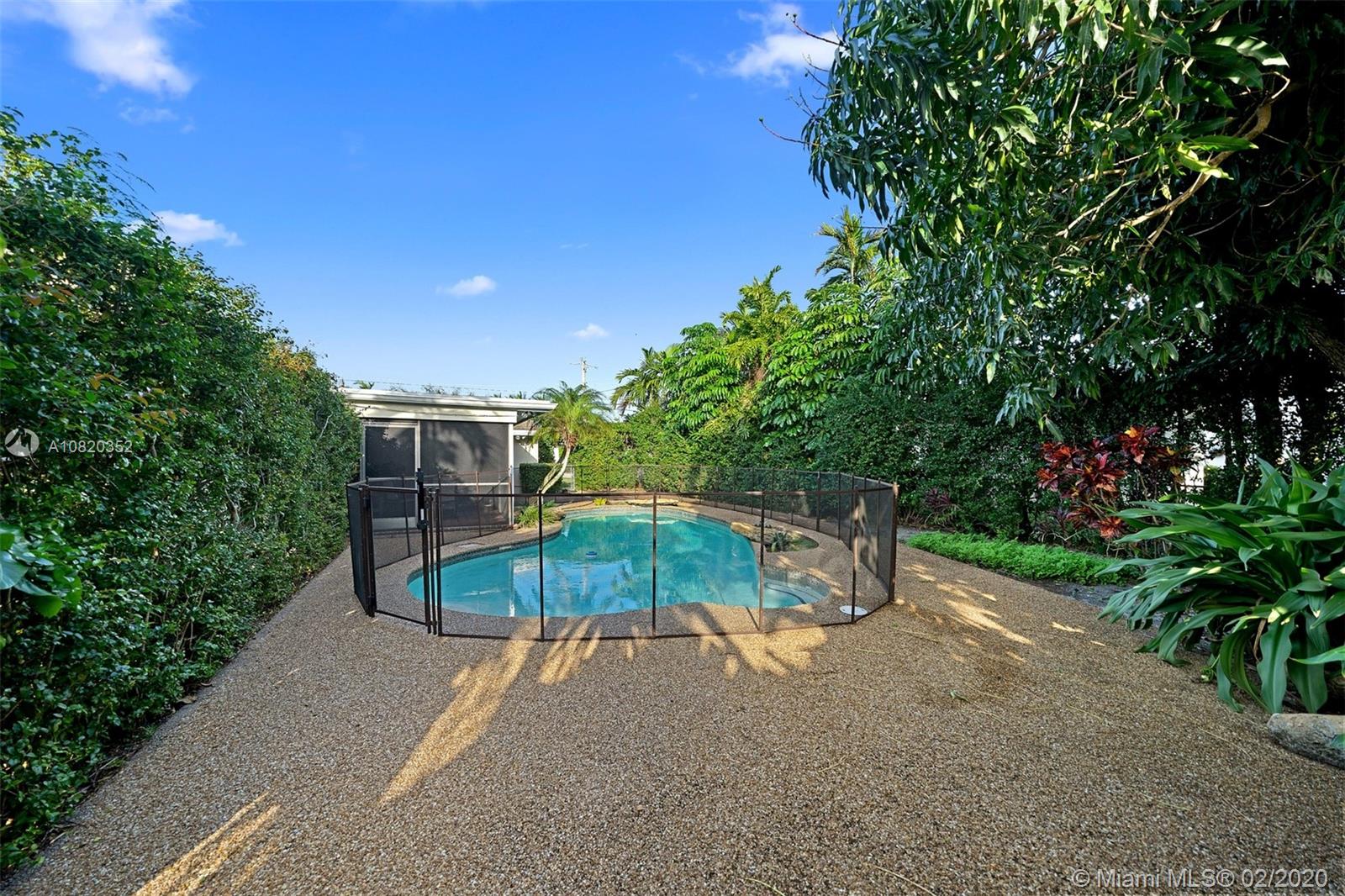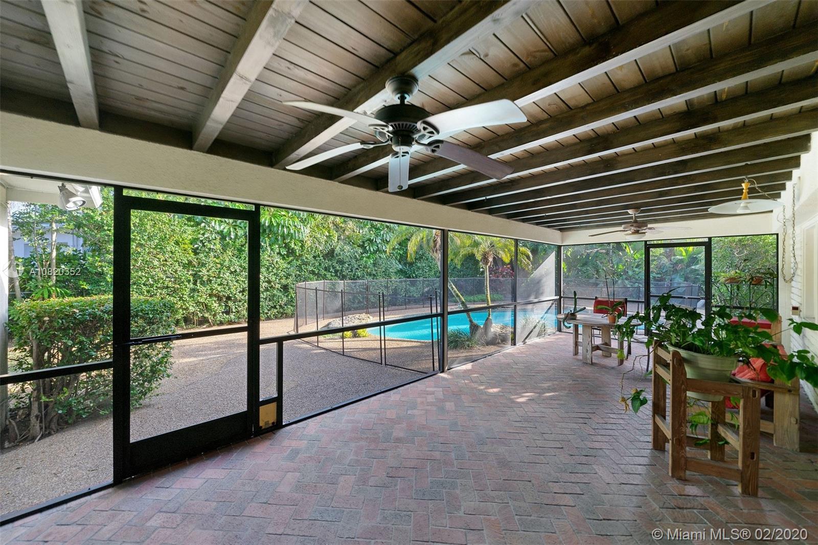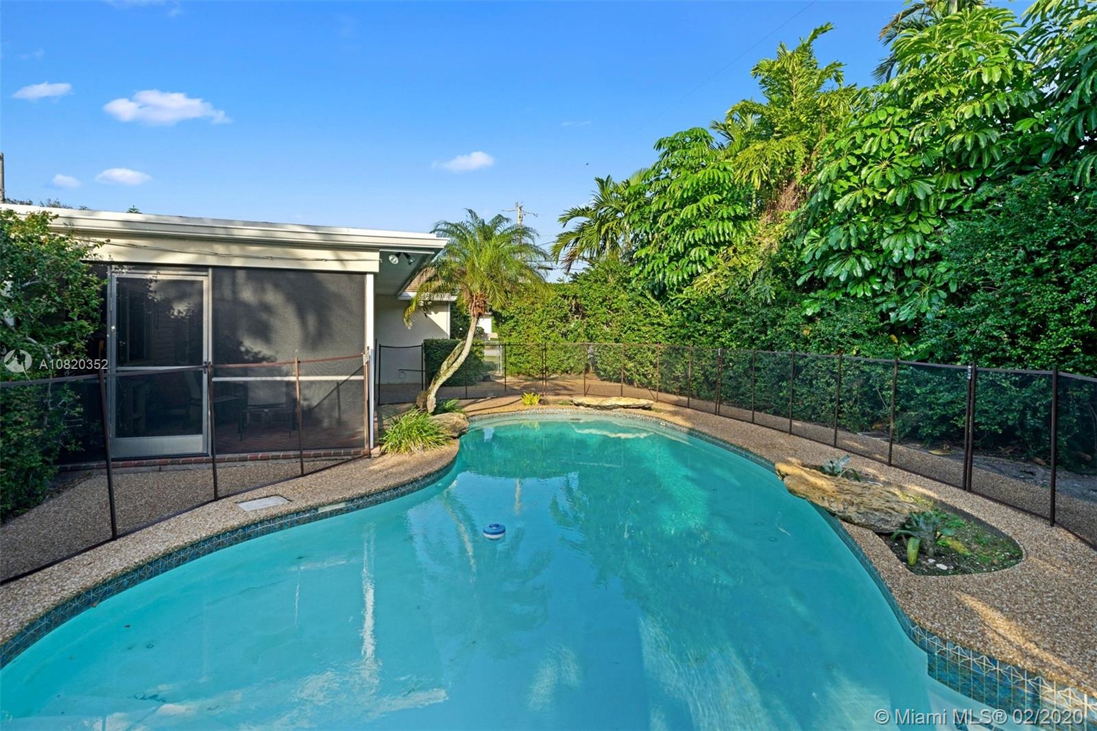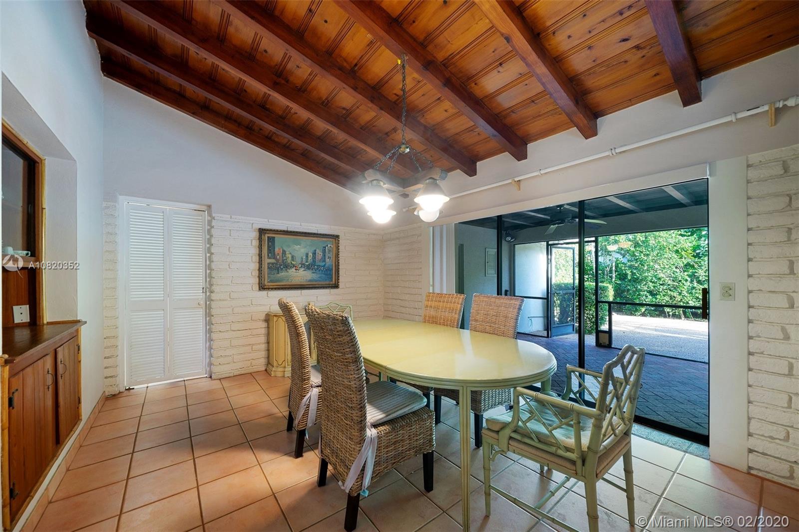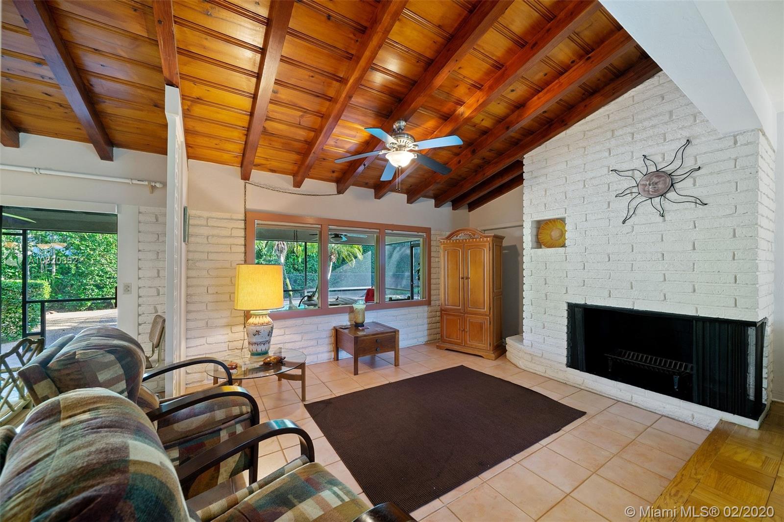 Beloved 4 bedroom/ 2-bathroom mid-century modern home in the City of Coral Gables. Formal living room. Large Florida room with vaulted, exposed wood beam ceiling, fireplace and brick detail is the perfect place for dining and casual gatherings. The kitchen is well maintained with great potential, plenty of cabinet space plus breakfast nook. Excellent, 12,000 square foot corner lot. Spacious screened porch overlooks freeform pool set amidst tropical plantings and private hedge. Fenced backyard. 2 ½ car side entry garage. A few blocks from the University of Miami.